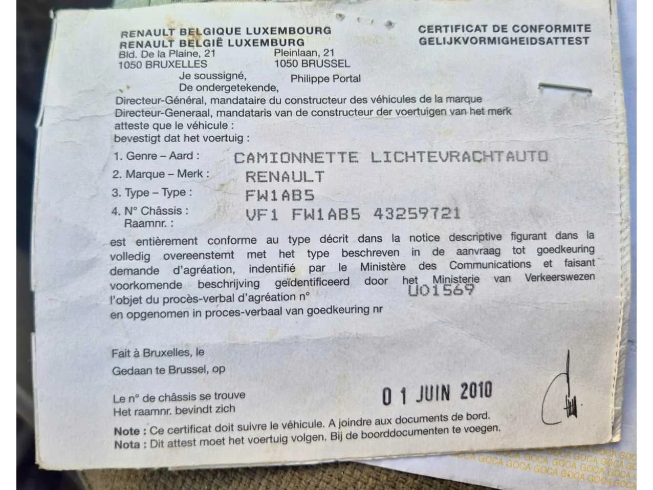 Opgelet, deze auto zal niet worden gekeurd voor verkoop (van toepassing op Belgische particuliere kopers). Nee Merk: Renault Model: Kangoo Bouwjaar: 2010 Chassisnummer: VF1FW1AB543259721 Afgelezen kilometerstand: 254762km Cilinderinhoud: 1461cc Vermogen (kW): 50kW Brandstof: Diesel Nationaliteit documenten: Belgisch Emissieklasse: Euro4