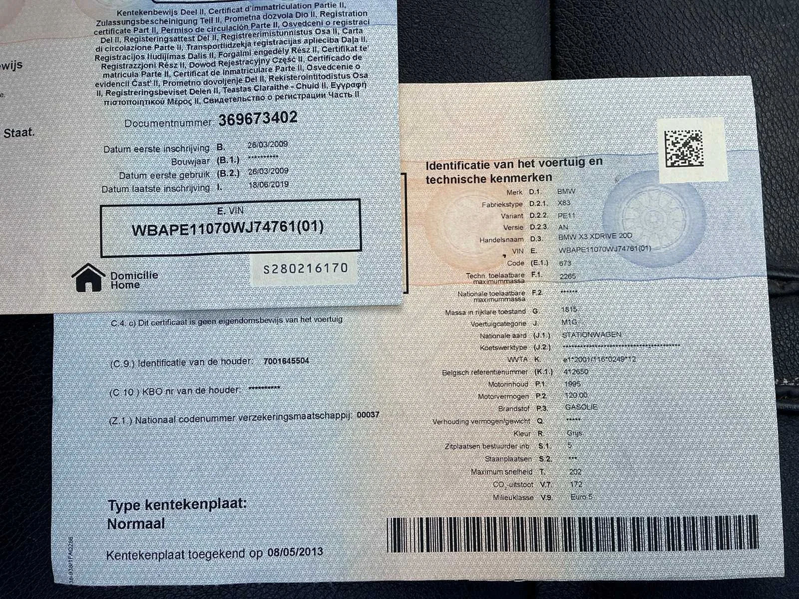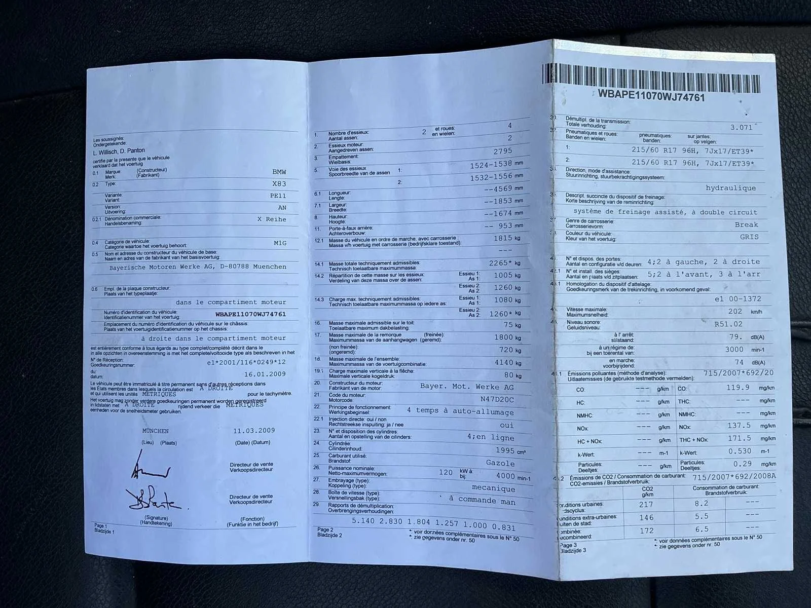 Opgelet, deze auto zal niet worden gekeurd voor verkoop (van toepassing op Belgische particuliere kopers). Nee Merk: BMW Type: X3 Xdrive 20D Bouwjaar: 2009 Afgelezen kilometerstand: 249532km Cilinderinhoud: 1995cc Vermogen (kW): 120kW Brandstof: diesel Chassisnummer: WBAPE11070WJ74761 Transmissie: Handgeschakeld Emissieklasse: Euro5 Nationaliteit documenten: Belgisch Start en rijdt: Met booster startinformatie : Met booster Vavato voert geen technische keuring uit.: true Inschrijvingsbewijs - deel 1 : Aanwezig Inschrijvingsbewijs - deel 2: Aanwezig