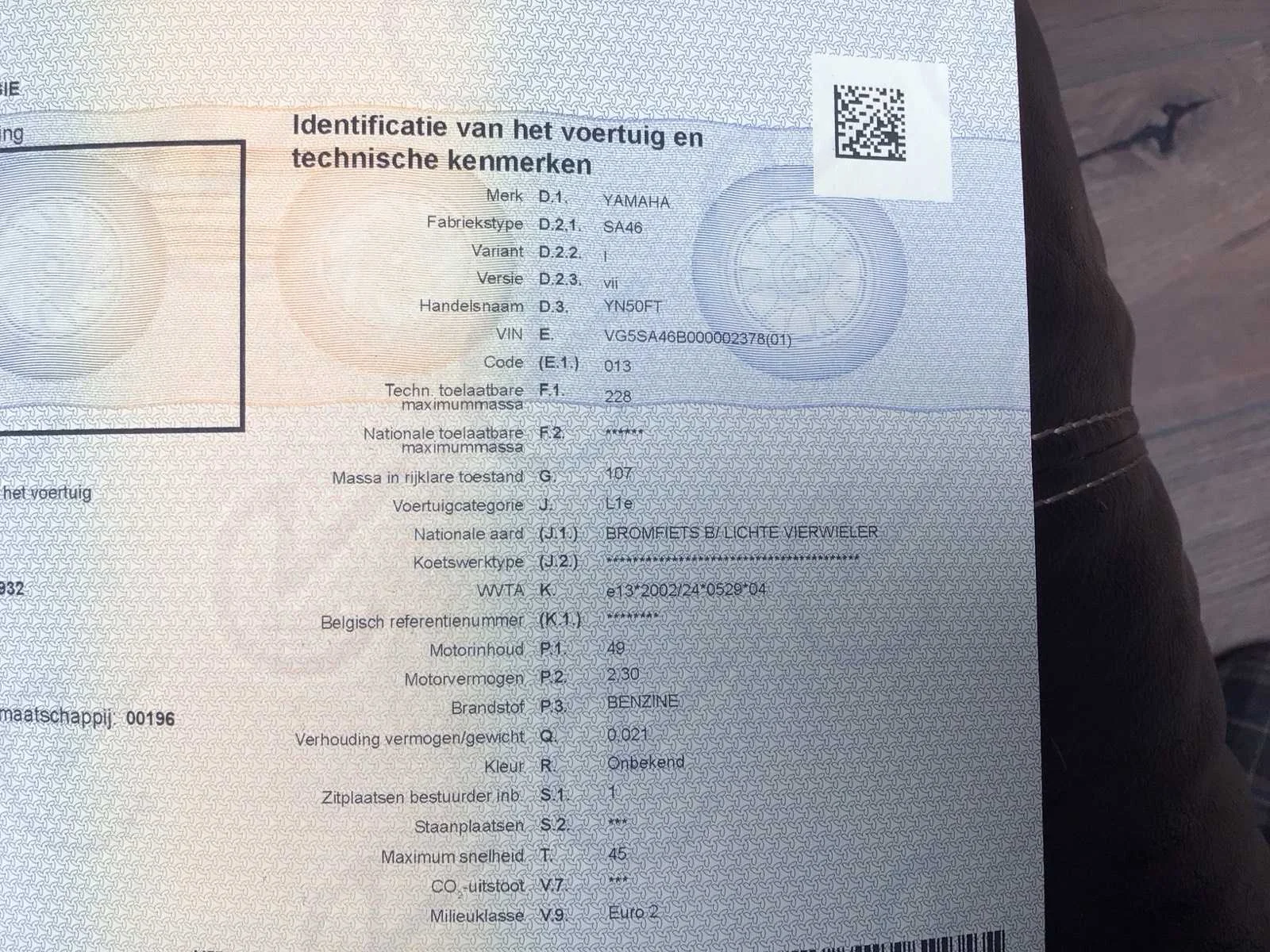 Nieuwe batterij Non Merk: Yamaha Model: YN50FT Type: SA46 Snelheid: 45km/h Bouwjaar: 2016 Brandstof: Benzine Kleur: Wit Afgelezen kilometerstand: 16998km