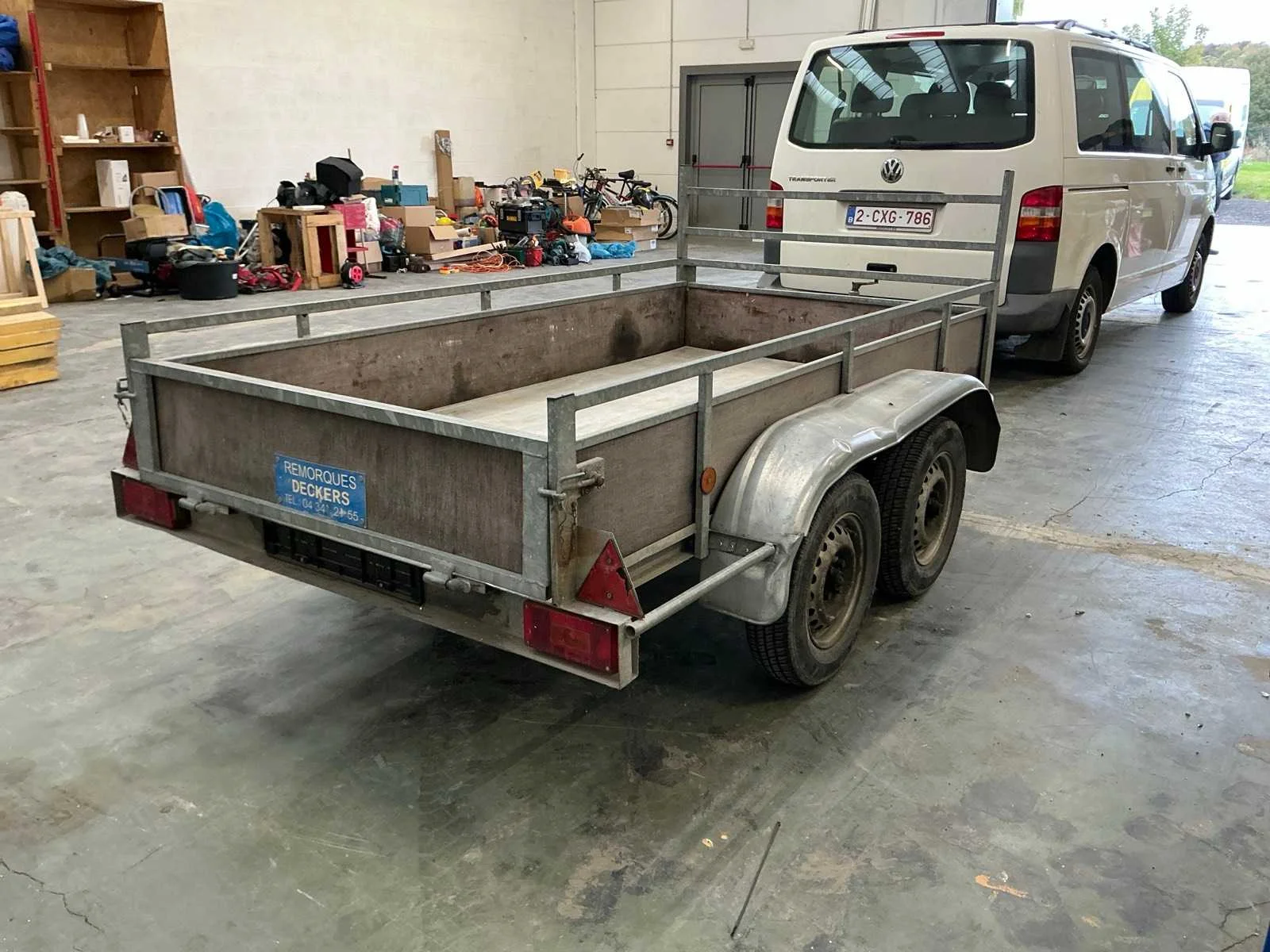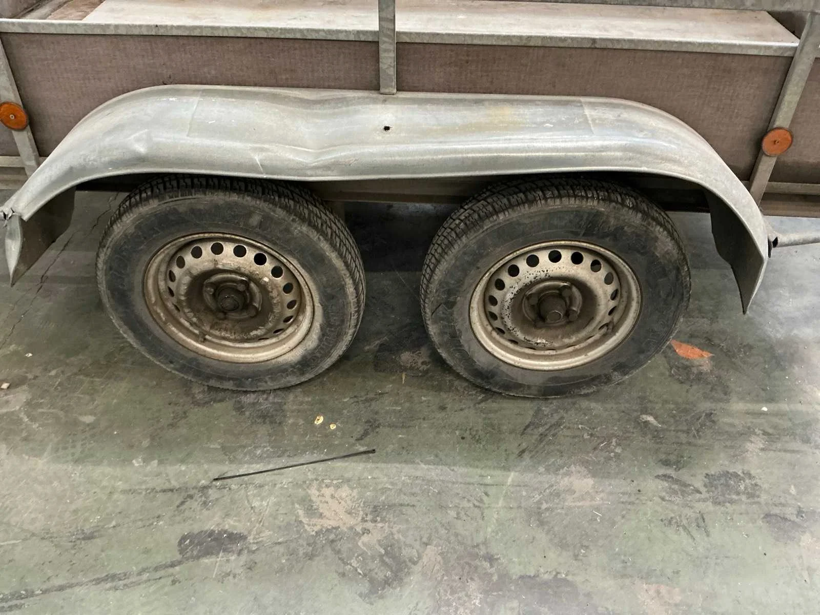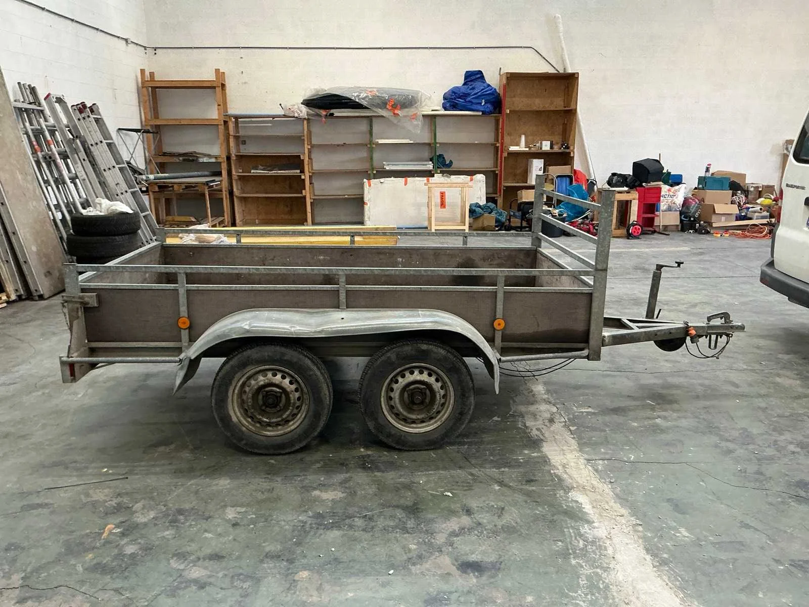 Geen naamplaatje. Geen informatie beschikbaar. Schade rondom. Non Type: Double essieux Chassisnummer niet afleesbaar: waar Aantal assen: 2 Laadvermogen: 750kg Lengte: 250cm Breedte: 120cm