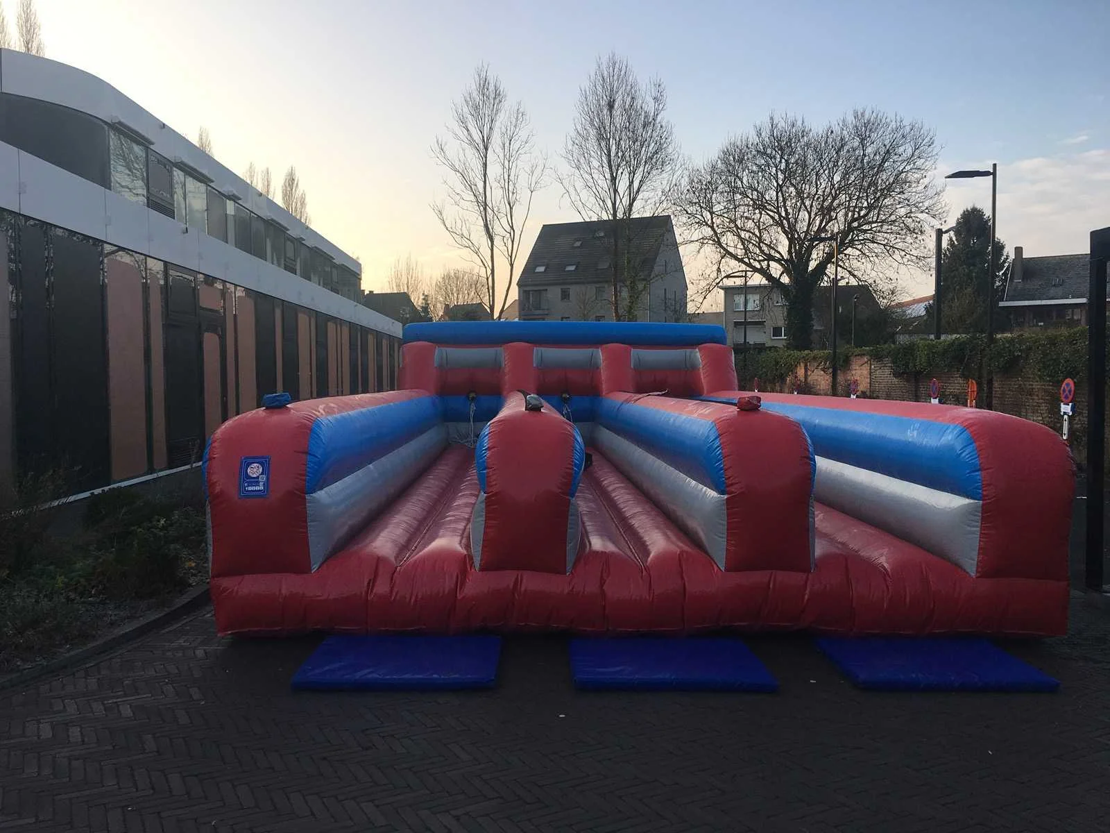 3-lane bungee run in goede, gebruikte staat upgrades: -3 strong bungee cords - 3 veiligheidsriemen/harnas met riem exclusief blazer No Merk: Airquee Model: bungeerun Gewicht: 250kg Lengte: 11000cm Breedte: 4000cm