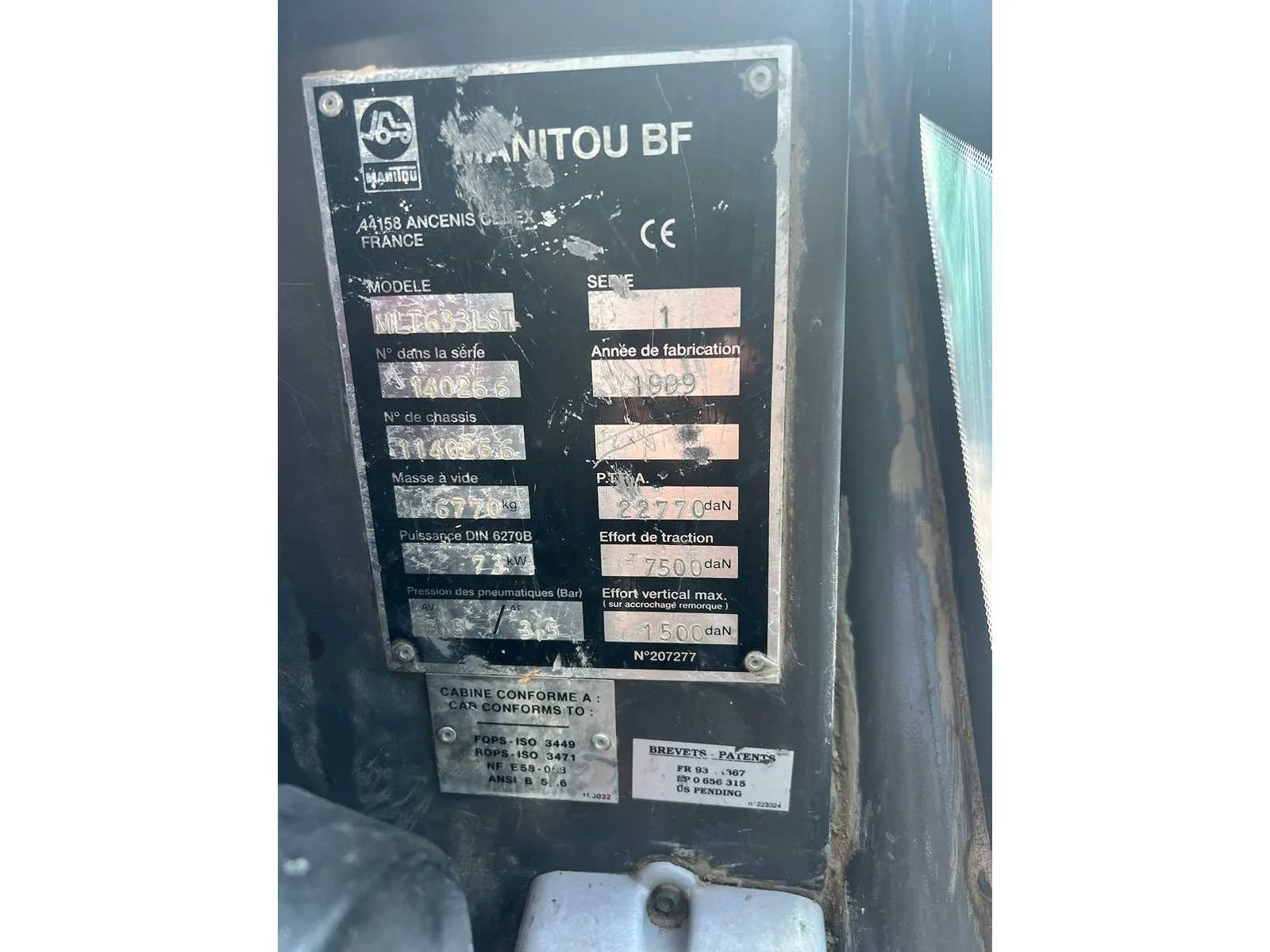 Bandenmaat 460/70R24IND - Geen boorddocumenten aanwezig Nee Merk: Manitou Type: MLT633LST Bouwjaar: 1999 Serienummer: 140266 Motorvermogen (kW): 73kW Cabine: true Luchtbanden: true Afgelezen urenstand: 9799 Eigen gewicht: 6770kg Totale afmeting L: 4400mm Totale afmeting Breedte: 2500mm Totale afmeting Hoogte: 2500mm