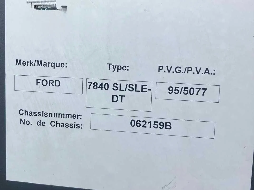 Nee Merk: Ford Type: 7840 SL Chassisnummer: 062159B