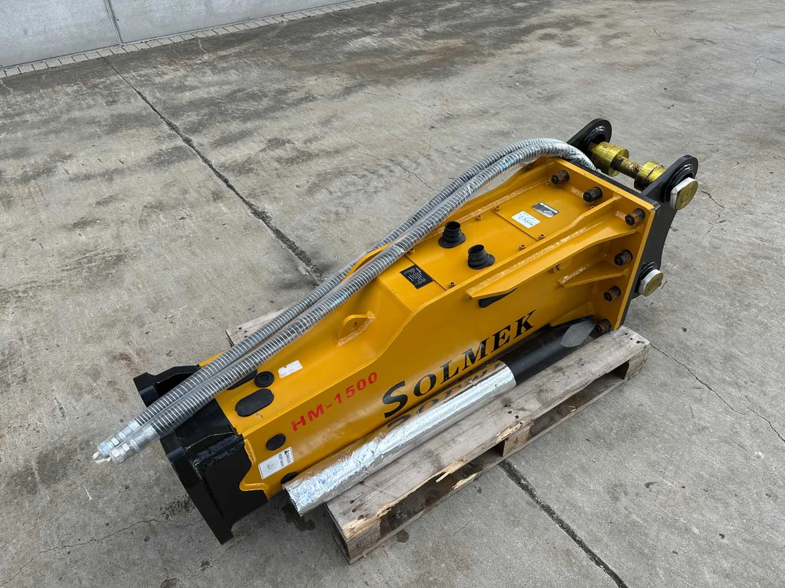 2 beitels Hydraulische leidingen Nieuw Nee Merk: SOLMEK Type: HM-1500 Bouwjaar: 2025 Serienummer: 202584681 Eigen gewicht: 1100kg Totale afmeting L: 2450mm Totale afmeting Breedte: 450mm Totale afmeting Hoogte: 450mm
