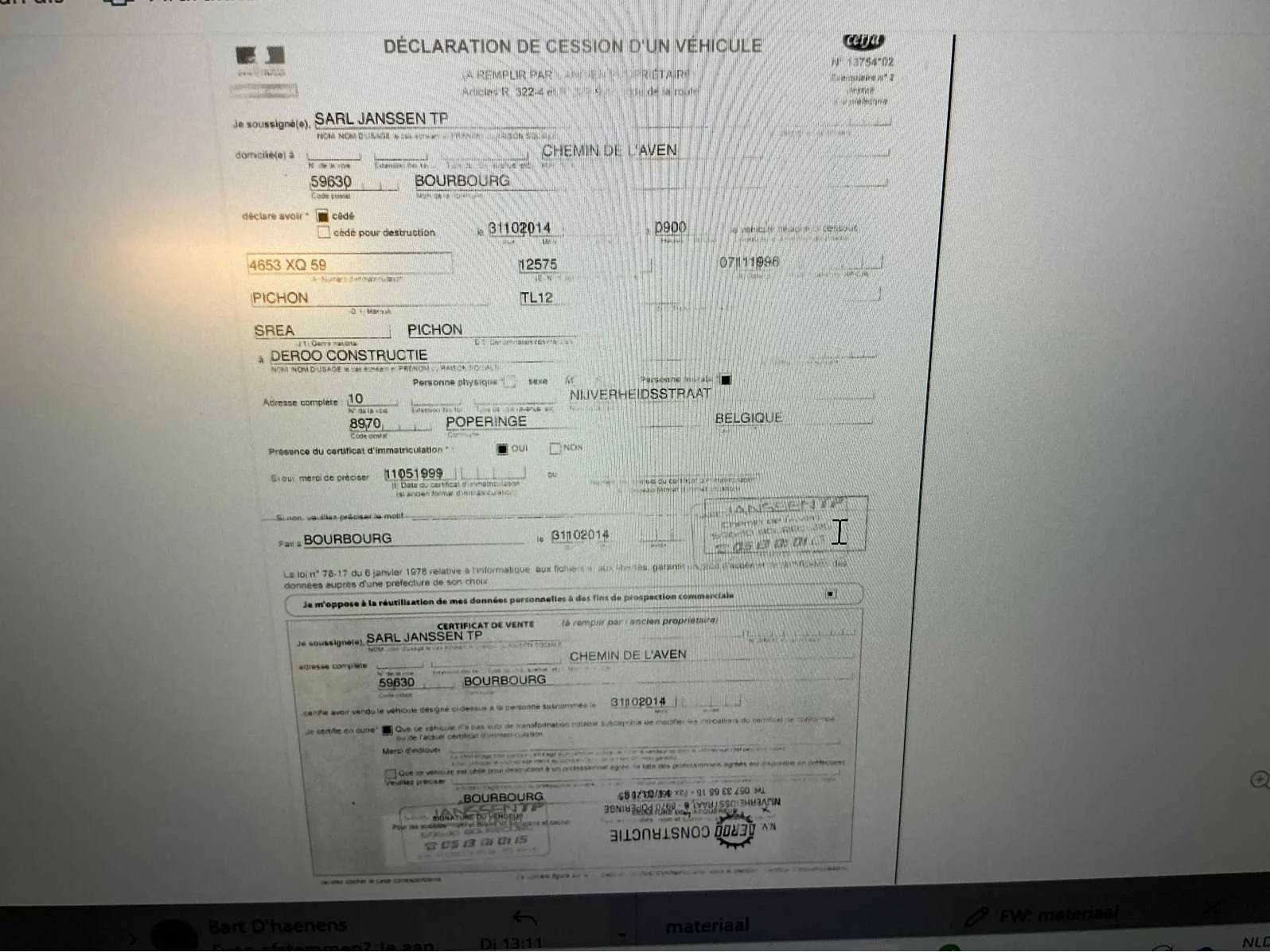 Nee Merk: Pichon Type: JC12 Bouwjaar: 1996 Serienummer: 8747