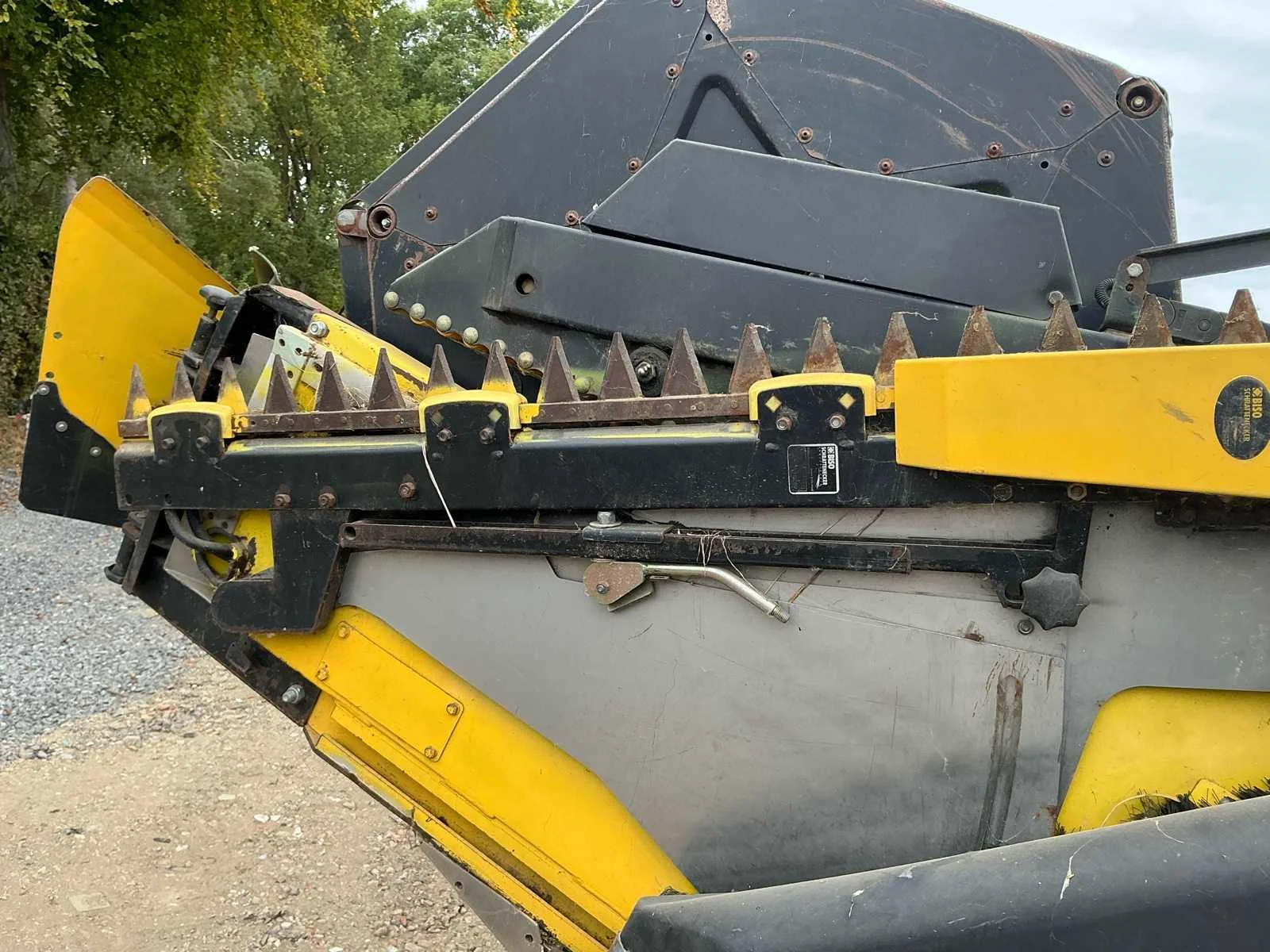 De Biso Crop Ranger VX 750 is een maaibord van 7,5 meter breed, gebouwd voor graanoogst. De uitrusting is compatibel met een maaidorser van het merk New Holland, model CX en CR. Het bord heeft een variabele snijbalk die tot 70 cm naar voren of achteren kan worden verplaatst, wat efficiënt werkt bij verschillende gewassen. Het kan snel worden omgebouwd voor koolzaad door zijkniven en verdelers. De maaidorser komt met een transportwagen. Robuust gebouwd, geschikt voor gebruik met diverse maaidorsers. De messen zijn onlangs gereviseerd. Non Merk: Biso Type: VX 750 Bouwjaar: 2011 Serienummer: 211BH1573 Spoorbreedte: 7500mm