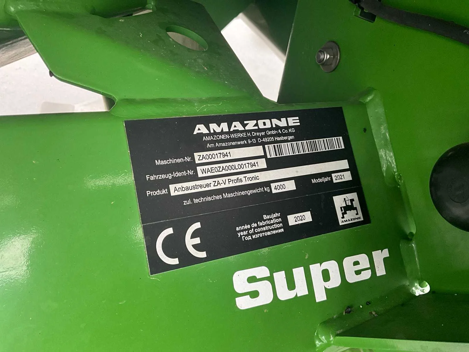 Non Merk: Amazone Type: Anbaustreuer ZA-V Profis Tronic Bouwjaar: 2020 Serienummer: WAE0ZA000L0017941