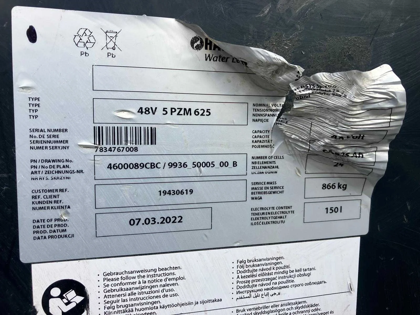 Batterij: 48V 5 PzM 625 tractiebatterij Capaciteit: 625 Ah Massa: 866 kg Cellen: 24 Opmerking: Zonder lader Nee Merk: Still Type: RX20.16 Bouwjaar: 2022 Serienummer: 516220L00304 Brandstof: Elektrisch Mast: duplex Soort band: no marking Aantal wielen: 3 Afgelezen urenstand: 5440 Free-lift: true Side-shift: true Duplex mast: true Eigen gewicht: 3100kg Hefvermogen: 1600kg Lepellengte: 1100mm Min. hefhoogte: 0mm Max. hefhoogte: 3160mm Hefhoogte: 3160mm Vol rubber banden: true Minimale doorrijhoogte: 0mm Totale afmeting L: 2000mm Totale afmeting Breedte: 1100mm Totale afmeting Hoogte: 2150mm