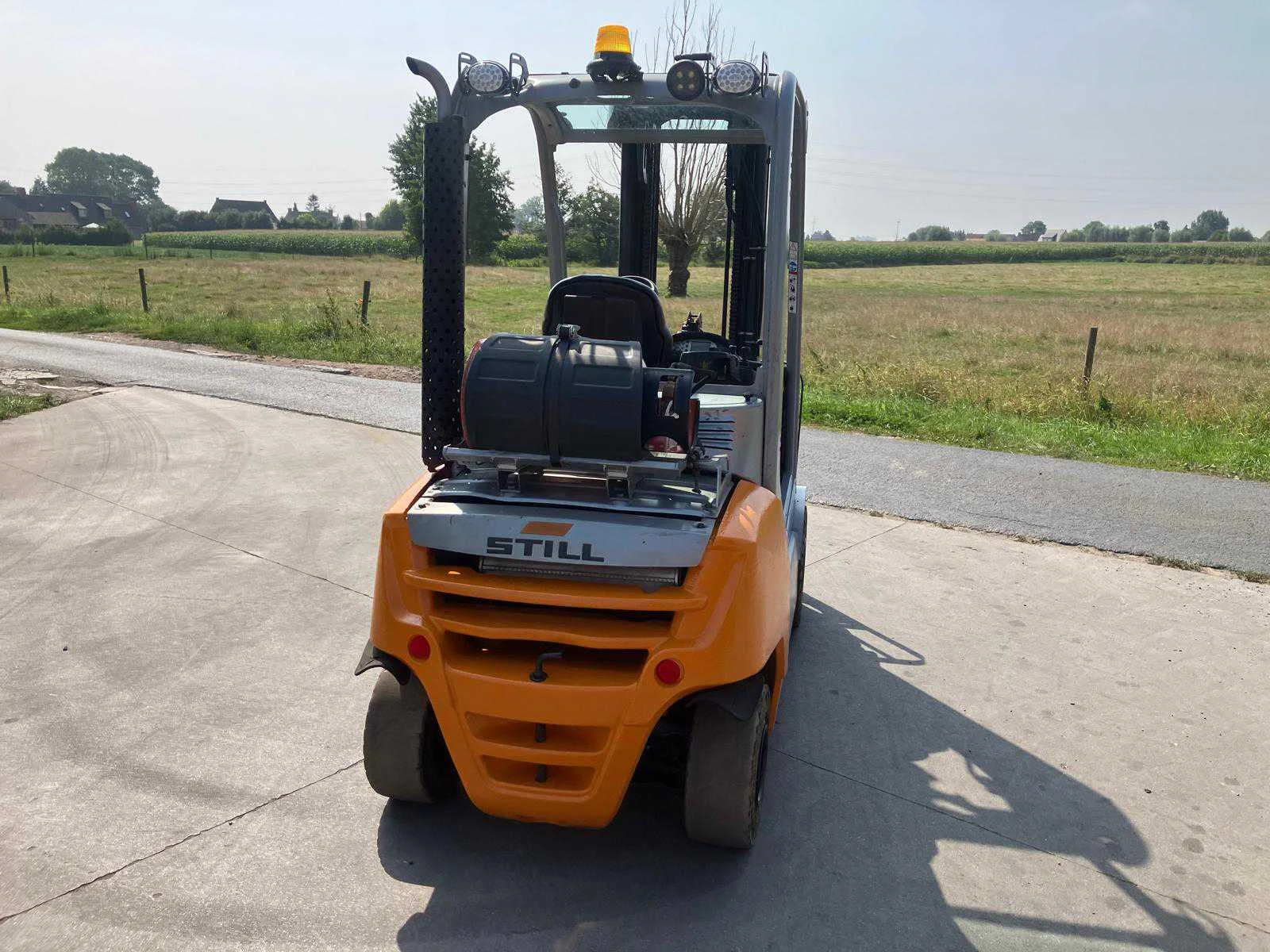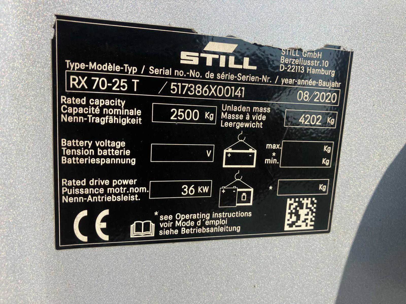 Voorzien van: vernieuwde aandrijfriem Nee Merk: Still Type: RX70-25T Bouwjaar: 2020 Serienummer: 517386X00141 Brandstof: LPG Mast: Triple Soort band: Volrubber banden Aantal wielen: 4 Afgelezen urenstand: 8463 Side-shift: true Eigen gewicht: 4202kg Hefvermogen: 2500kg Max. hefhoogte: 5000mm Vol rubber banden: true Totale afmeting Hoogte: 2300mm LPG: true