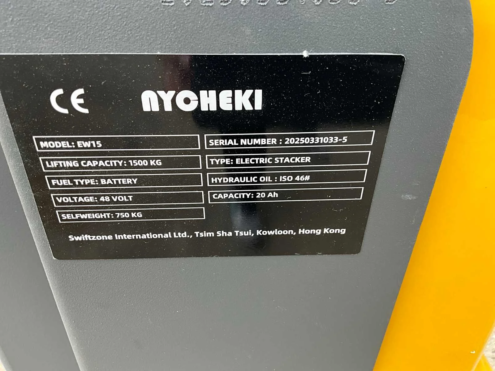 Inclusief lader op 220V - Compacte en wendbare stapelaar - Geschikt voor binnengebruik - CE-gemarkeerd - mooi afgewerkt toestel - ongebruikt - Uitgerust met bedieningshendel aan de zijkant - verkoper kan laden met heftruck Nee Merk: Nycheki Type: EW15 Bouwjaar: 2025 Hefvermogen: 1500kg Hefhoogte: 3500mm Afgelezen urenstand: 0 Eigen gewicht: 750kg