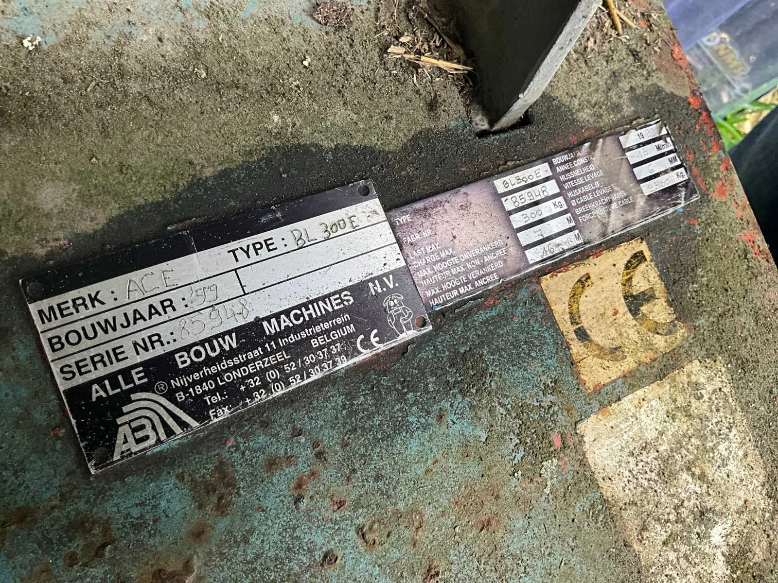 Momofase 8m hoogte Nee Merk: ACE Type: BL300E Bouwjaar: 1999 Serienummer: 85948 Aansluiting: 220380V