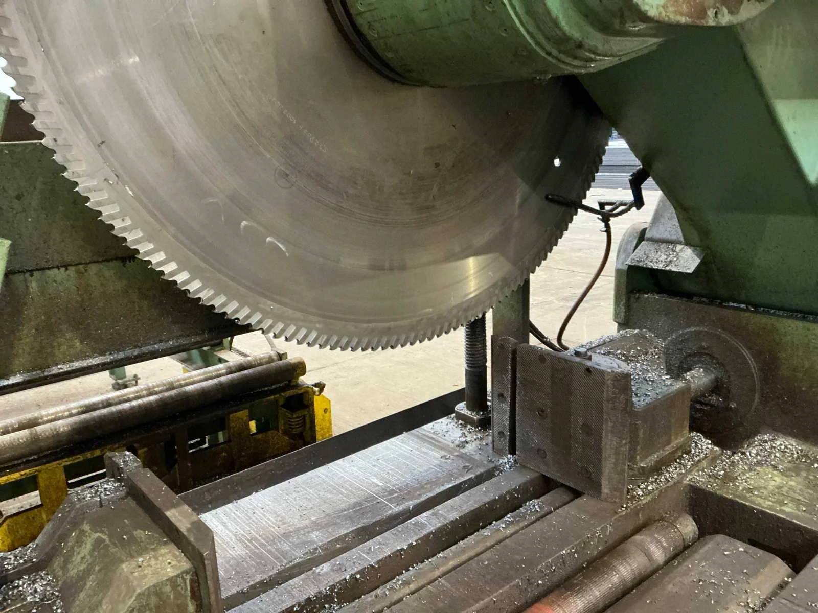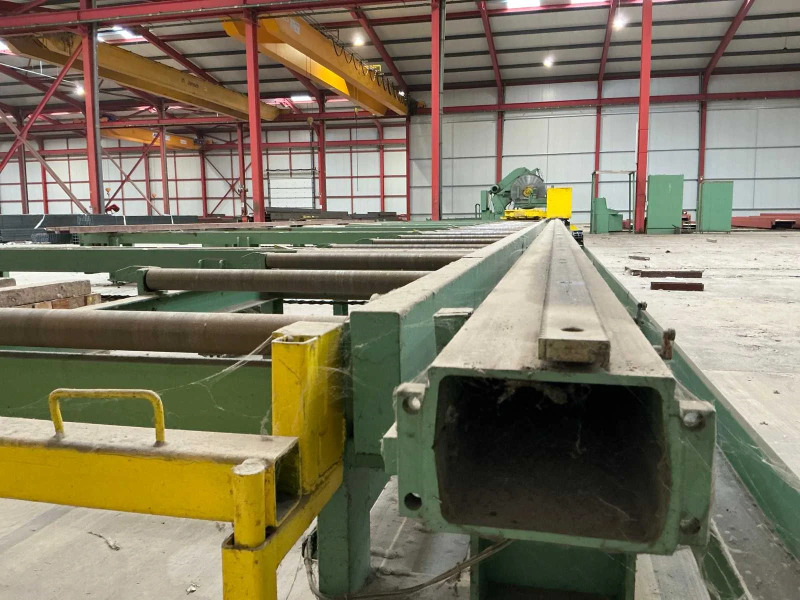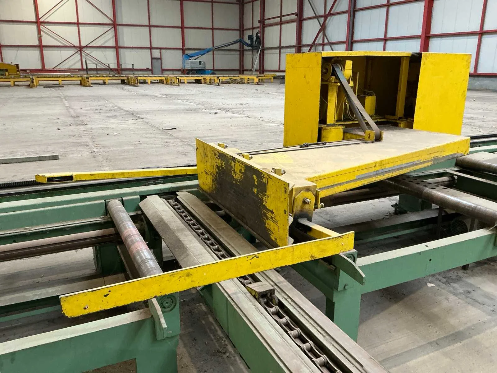 Cirkelzaagmachine in perfect werkende staat. Meetwagen in perfect werkende staat. 1 reserve zaagblad. Plus minus 50 meter rolbanen. Maximum staalbalk HEM 1000. Automatisch aanvoer en afvoer. Rolbaan 5 meter breed. 45 graden verstekzaag. Gedeeltelijk gedemonteerd. Rolbrug aanwezig. Nee Merk: Kaltenbach Type: HDM 1310 Bouwjaar: 1991 Zaagblad Ø: 1400mm Verstekhoek max.: 45° Machinegewicht: 7500kg