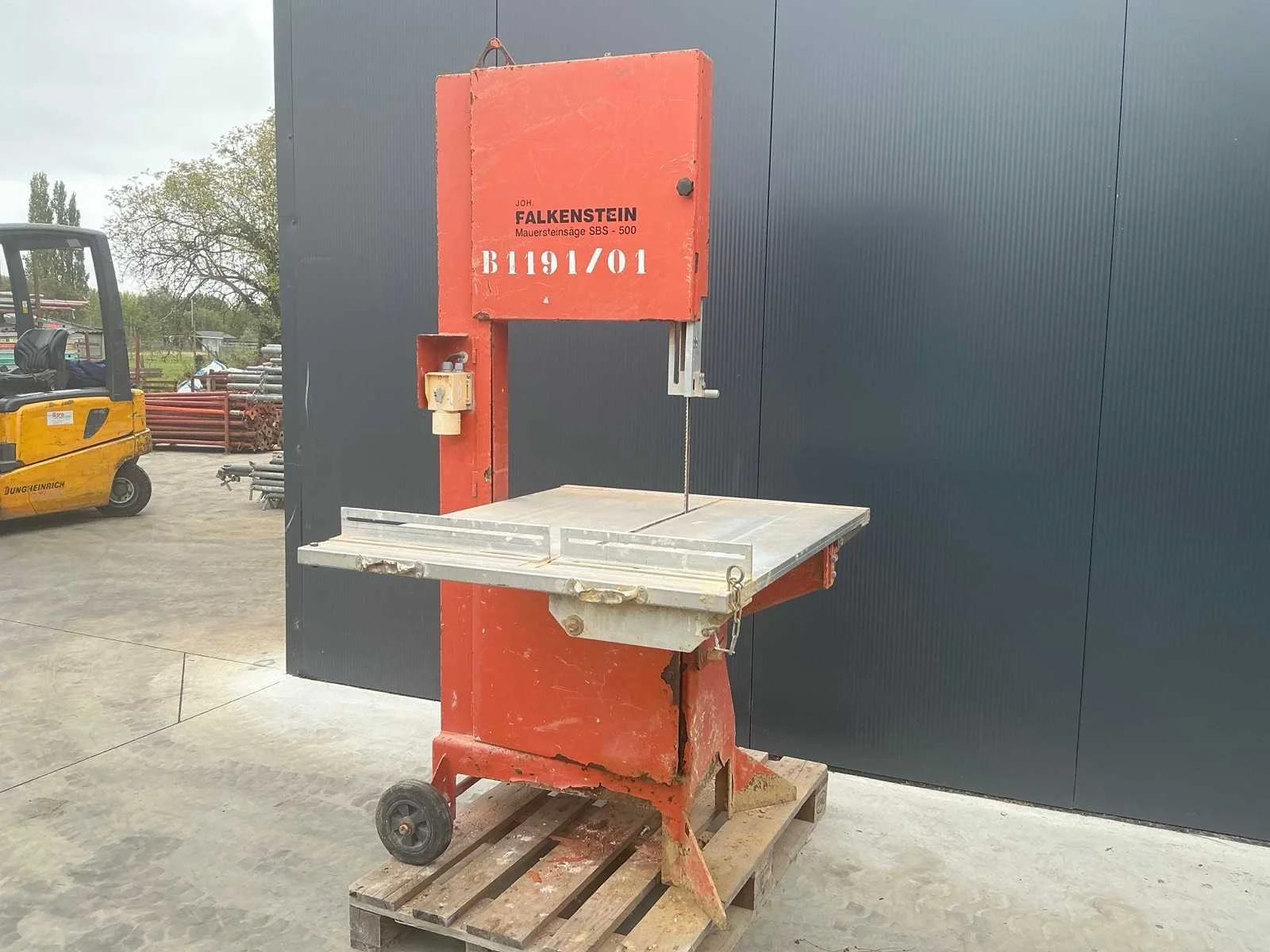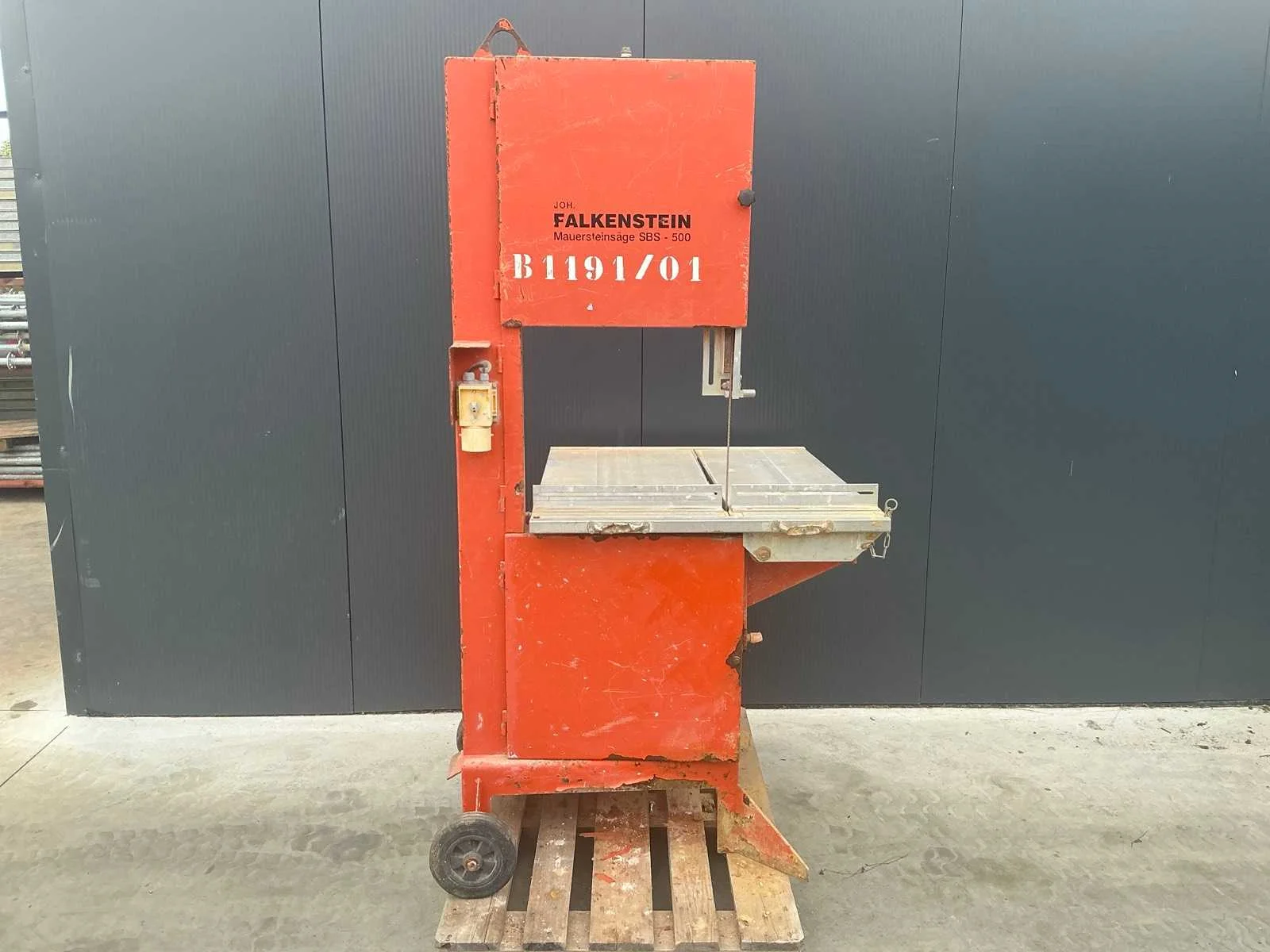 In toepassing bij het snijden van snelbouwstenen en ytong blokken. Nee Merk: Falkenstein Type: SBS 500 Serienummer: 1885 Leveringsvoorwaarden: Heftruck aanwezig