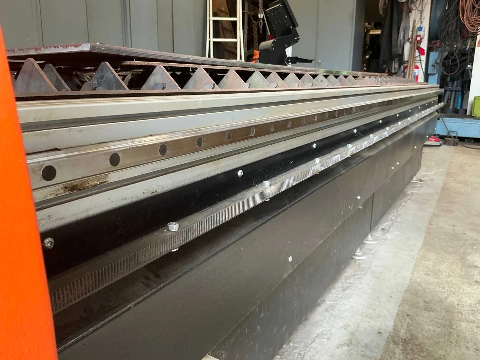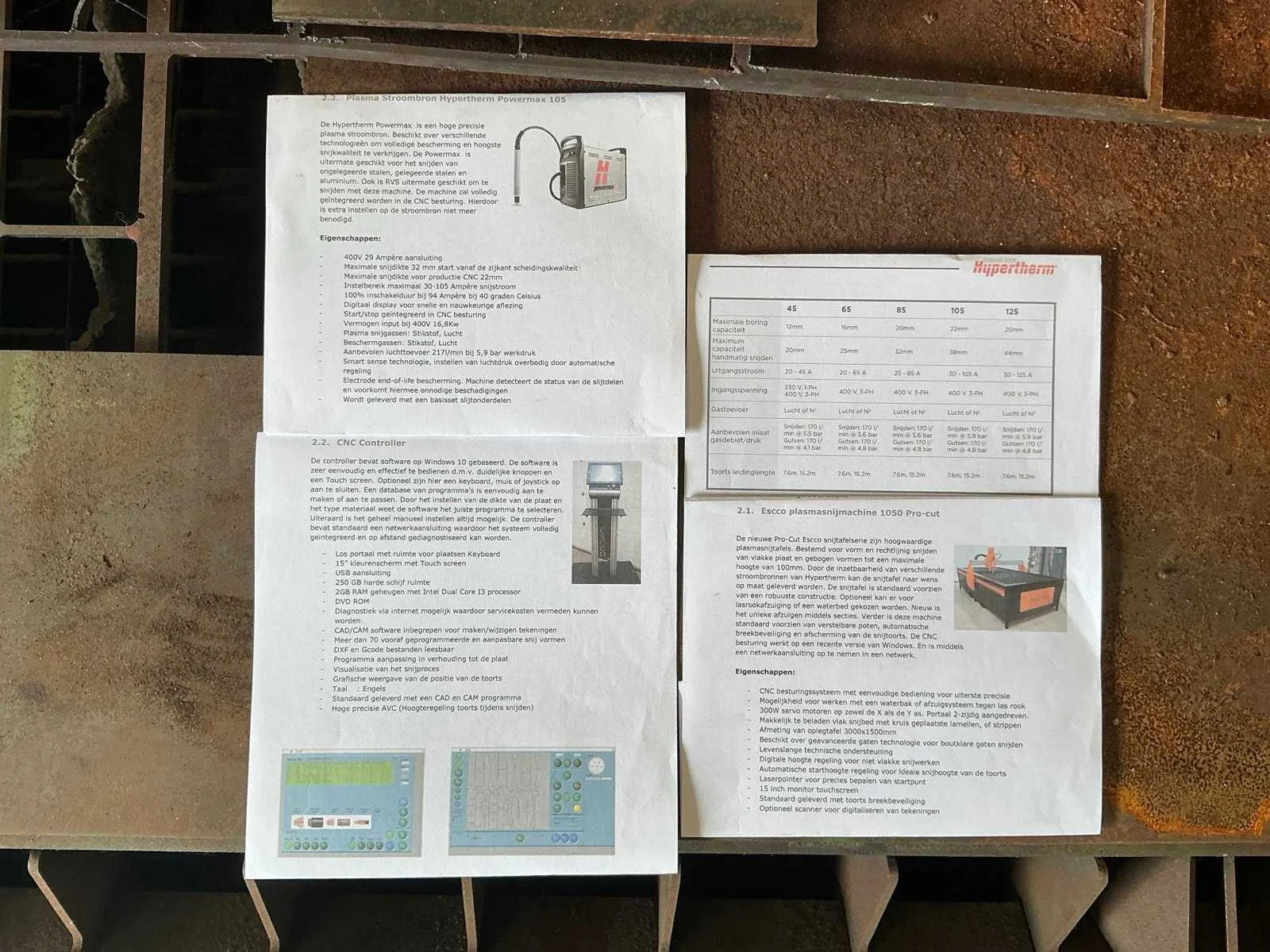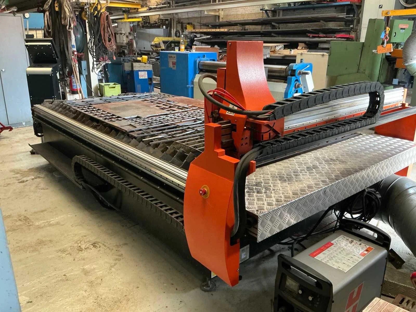 Zelf te demonteren heftruck aanwezig indien gevraagd exclusief afzuiging Nee Merk: ESCCO Type: Procut 1050BB Bouwjaar: 2018 Serienummer: 847 Snijbereik: 20mm Tafel afmeting l: 3000mm Tafel afmeting b: 1500mm Merk en type plasma-unit: Hypertherm Powermax 105 Max. snijdikte: 22mm Aansluiting: 380V Machinegewicht: 800kg Afmeting l: 3495mm Afmeting b: 2100mm Afmeting h: 1450mm