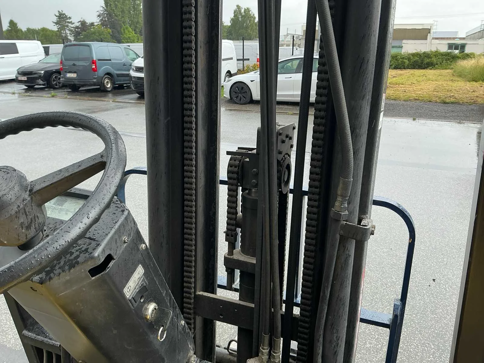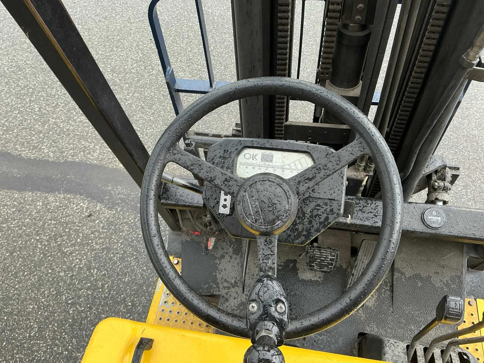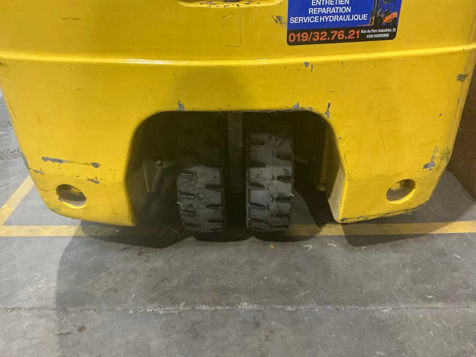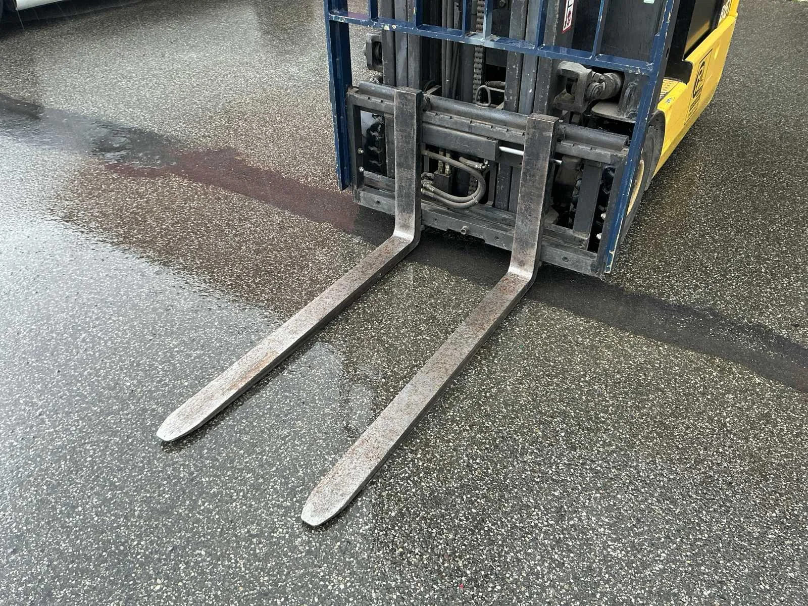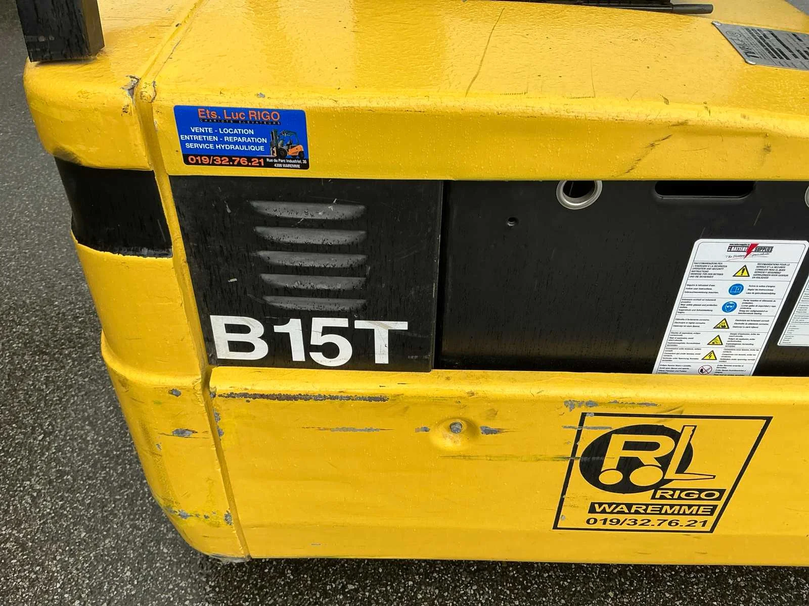 In gebruikte staat maar functioneel Non Merk: Daewoo Type: B15T-2 Bouwjaar: 1999 Serienummer: CG 00146 Brandstof: Elektrisch Soort band: Volrubber banden Aantal wielen: 4 Afgelezen urenstand: 8505 Hydraulisch verstelbare lepels: true Eigen gewicht: 3050kg Hefvermogen: 1350kg Lepellengte: 700mm Max. hefhoogte: 4500mm Vol rubber banden: true Minimale doorrijhoogte: 2050mm Totale afmeting L: 3090mm Totale afmeting Breedte: 1093mm