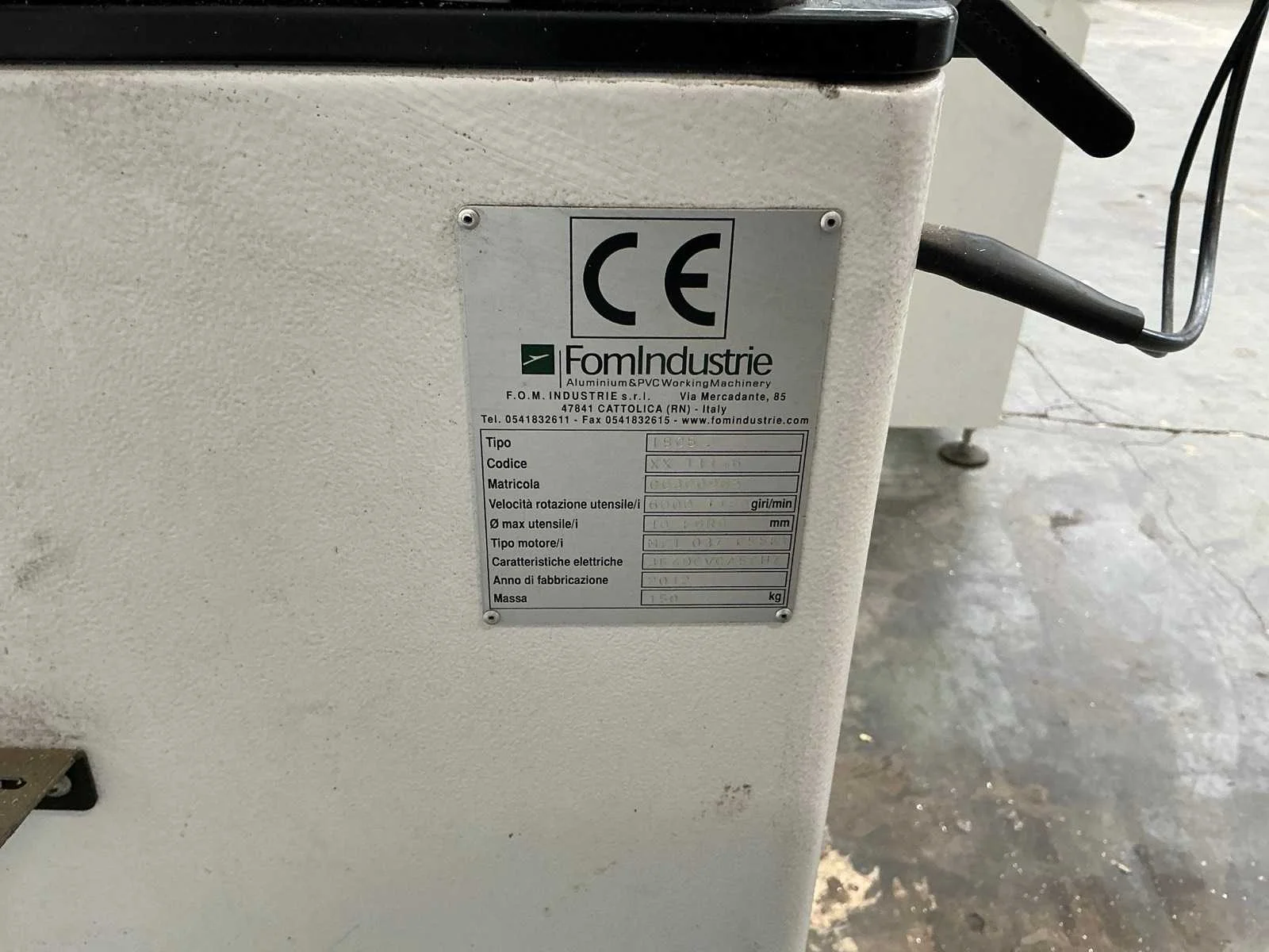 De machine verkeert in goede staat. FOM Industrie ISOS vingerfreesmachine (2012) Machine voor het bewerken van de uiteinden van aluminium of PVC profielen. Max. gereedschapsdiameter 110 mm In goede gebruikte staat, compleet en functioneel Non Merk: Fom industrie Type: IS05 Bouwjaar: 2012 Serienummer: G0302983 Snelheid van n =: 6000rpm Vermogen: 0.55W Aansluiting: 400V Machinegewicht: 150kg