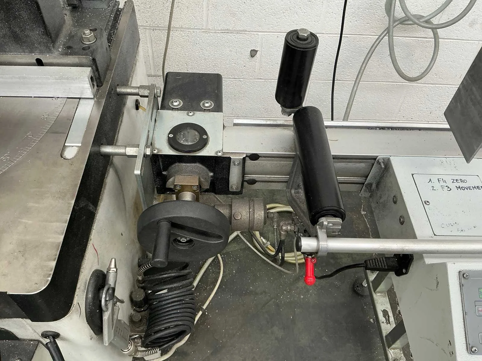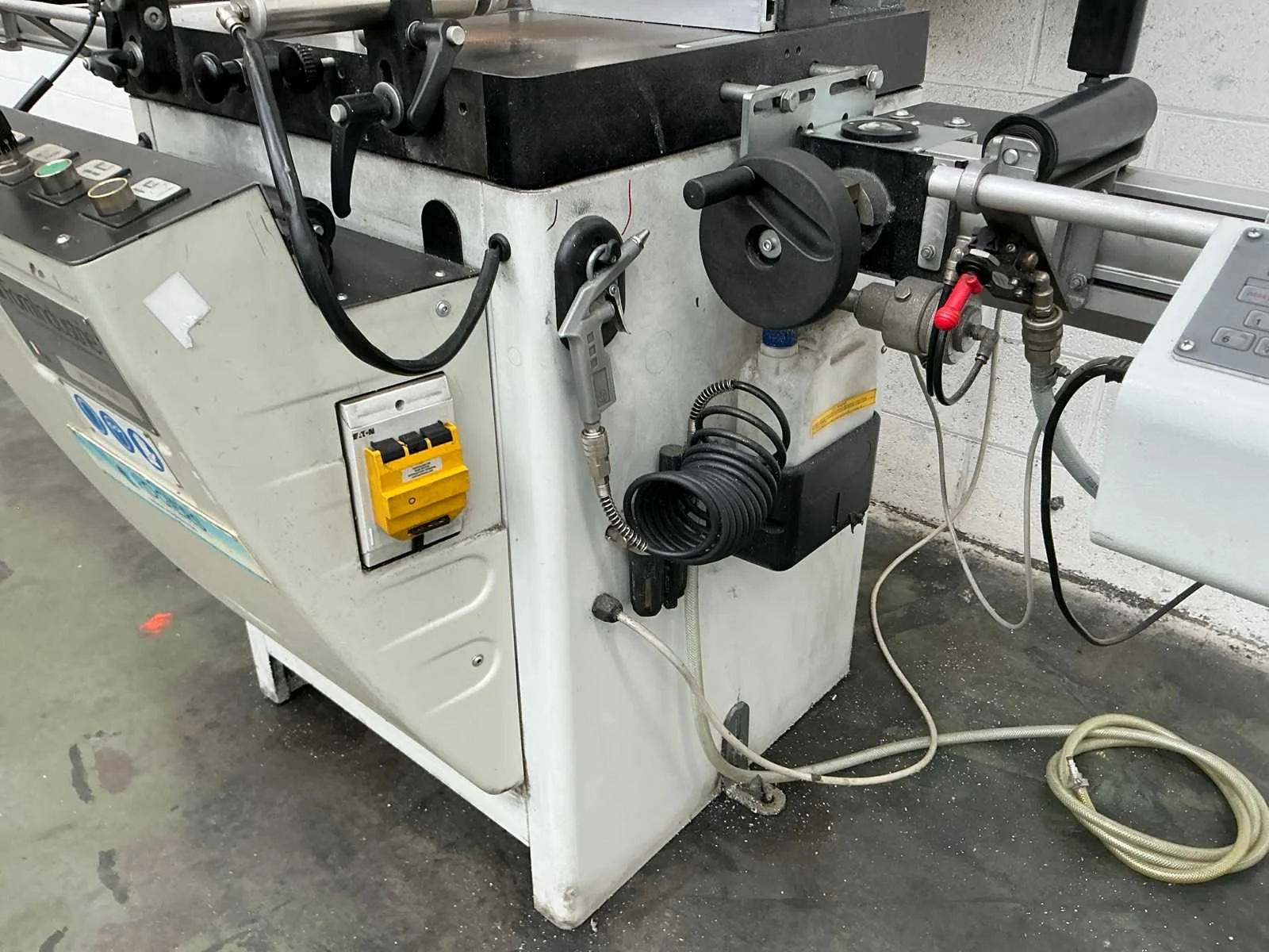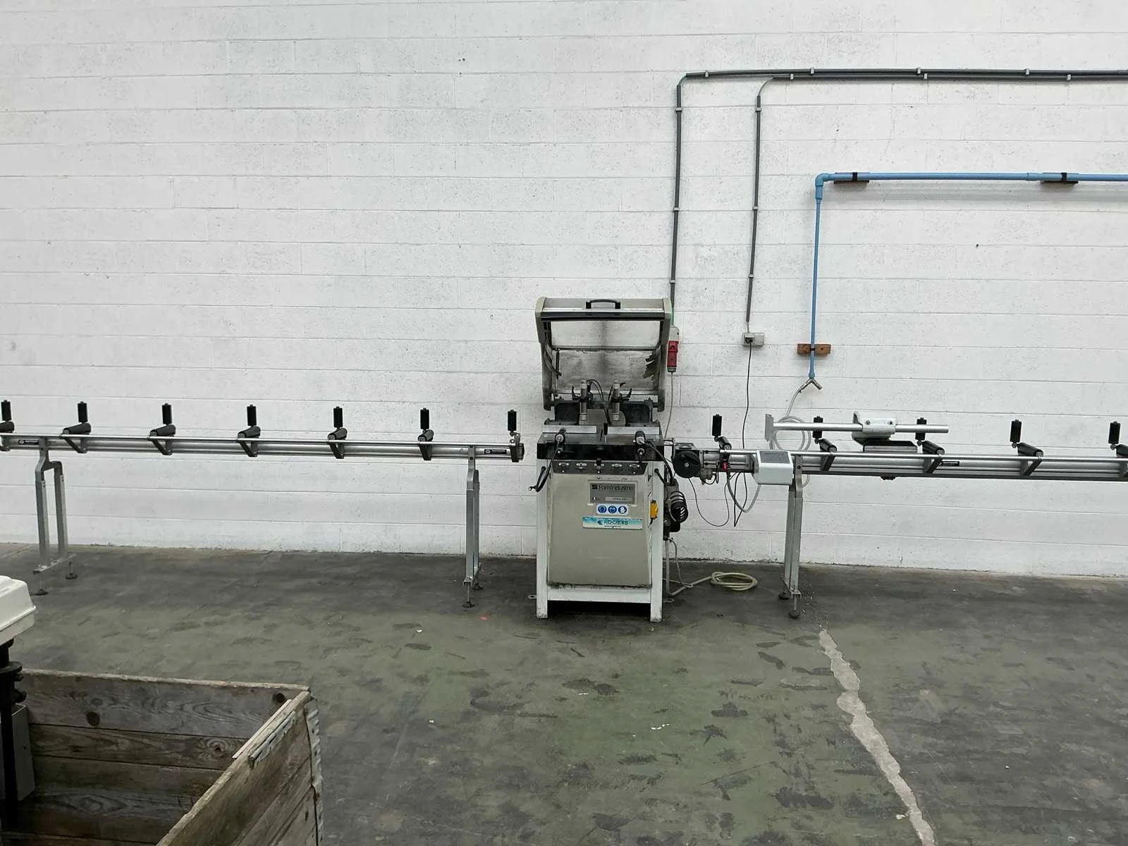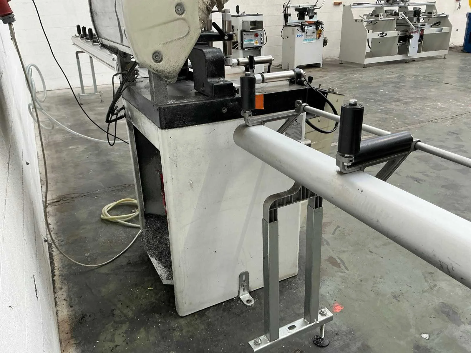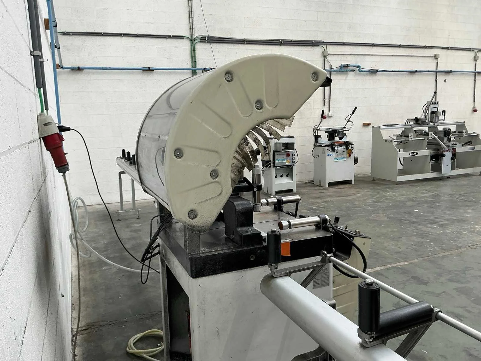 Machine ontworpen voor het nauwkeurig snijden van aluminium en PVC profielen. Uitgerust met een Ø400 mm blad (snelheid 3800 tpm), 1,8 kW motor Pneumatische klemming en hoekverstelling voor rechte en versteksneden. In goede gebruikte staat, compleet en functioneel. Non Merk: Fom Industrie Type: Panda 400 Bouwjaar: 2012 Serienummer: D070448 Aansluiting: 400V Eigen gewicht: 240kg