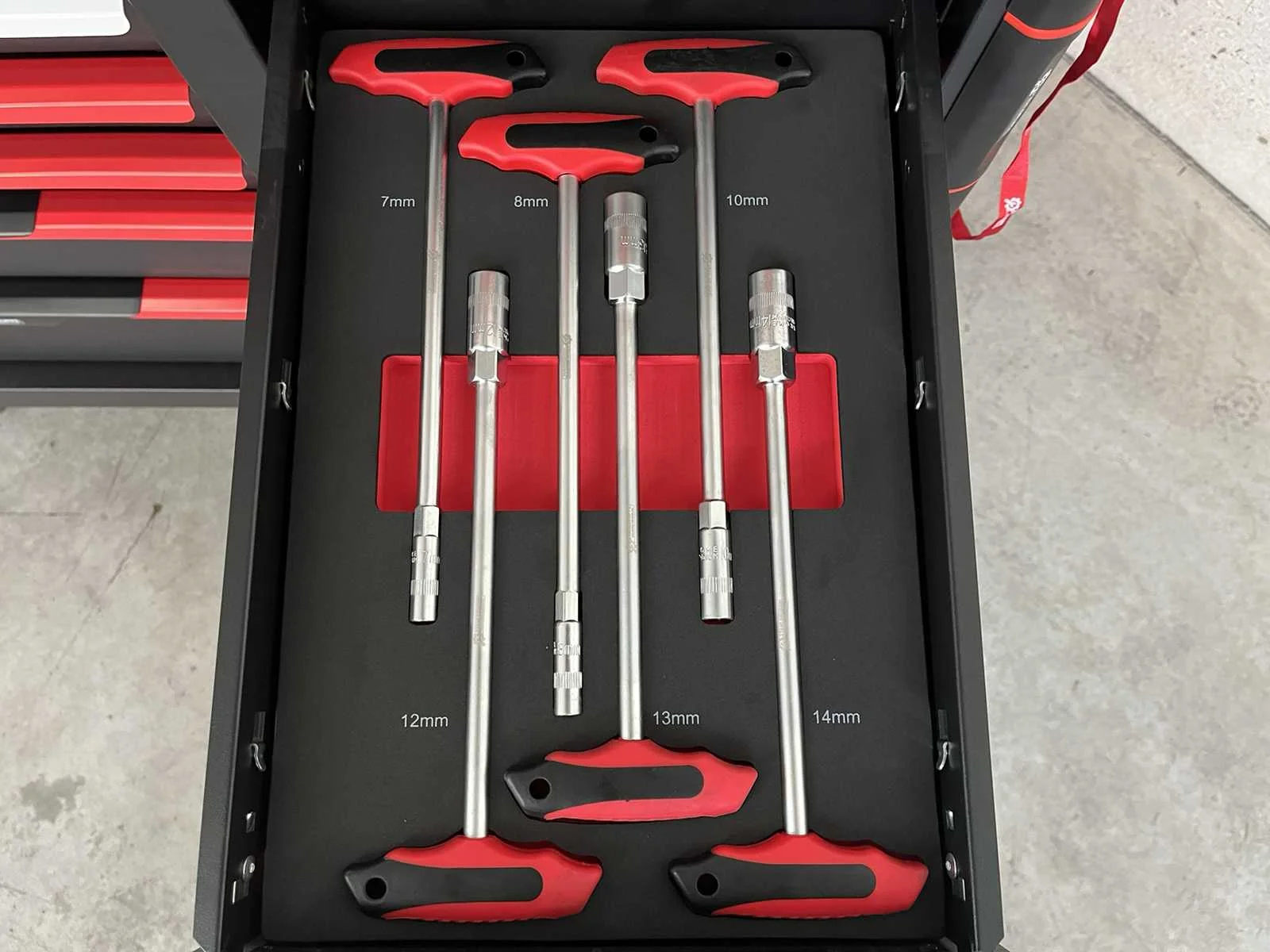 <li><strong>Aantal laden:</strong> 13 laden</li> <li><strong>Aantal gevulde laden:</strong> 11 gevulde laden</li> <li><strong>Materiaal:</strong> Chrome Vanadium</li> <li><strong>Inhoud:</strong> <ul> <li>2 dopsleutelsets (1/2” & 1/4”)</li> <li>momentsleutel (40-220 Nm)</li> <li>ring- steeksleutelset (6-32 mm)</li> <li>ringratel-steeksleutelset (8-19 mm)</li> <li>ring-ringsleutelset (6-32 mm)</li> <li>Inbussleutels (1,5-10 mm)</li> <li>Torxsleutels (T8-T70)</li> <li>schroevendraaiers (21 stuks)</li> <li>diverse tangen (9 stuks)</li> <li>schuifmaat (0-150 mm * 0,02 mm)</li> <li>beitels en pendrijvers (9 stuks)</li> <li>diverse hamers (3 stuks)</li> <li>T-greep Torxsleutels (T15-T45)</li> <li>T-greep Inbussleutels (2-10 mm)</li> <li>Chroom-Molybdeen krachtdoppen (10-24 mm)</li> <li>T-greep dopsleutels (7-14 mm)</li> <li>VDE-gereedschappen (10 stuks)</li> <li>vijlen en hakenset (8 stuks)</li> <li>enzovoort...</li> </ul> </li> <li><strong>Staat:</strong> ongebruikt, in de originele verpakking</li> Nee Merk: Stahlgruppe Type: SG24 Aantal laden: 13 Met inhoud: true Eigen gewicht: 150kg Totale afmeting L: 1120mm Totale afmeting Breedte: 550mm Totale afmeting Hoogte: 1100mm