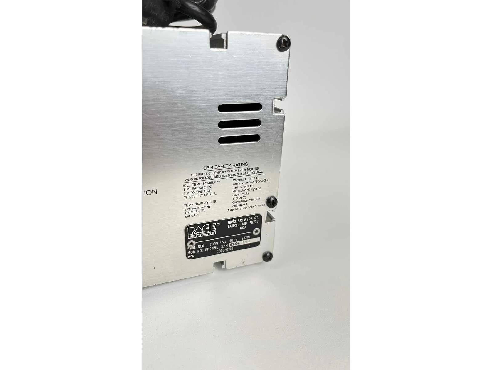 230V, 50Hz, 212W, met voedingskabel, zonder soldeerbout No Merk: Pace/MBT Type: Sensa Temp Model: PPS 85E Lengte: 23cm Breedte: 17cm Hoogte: 14cm