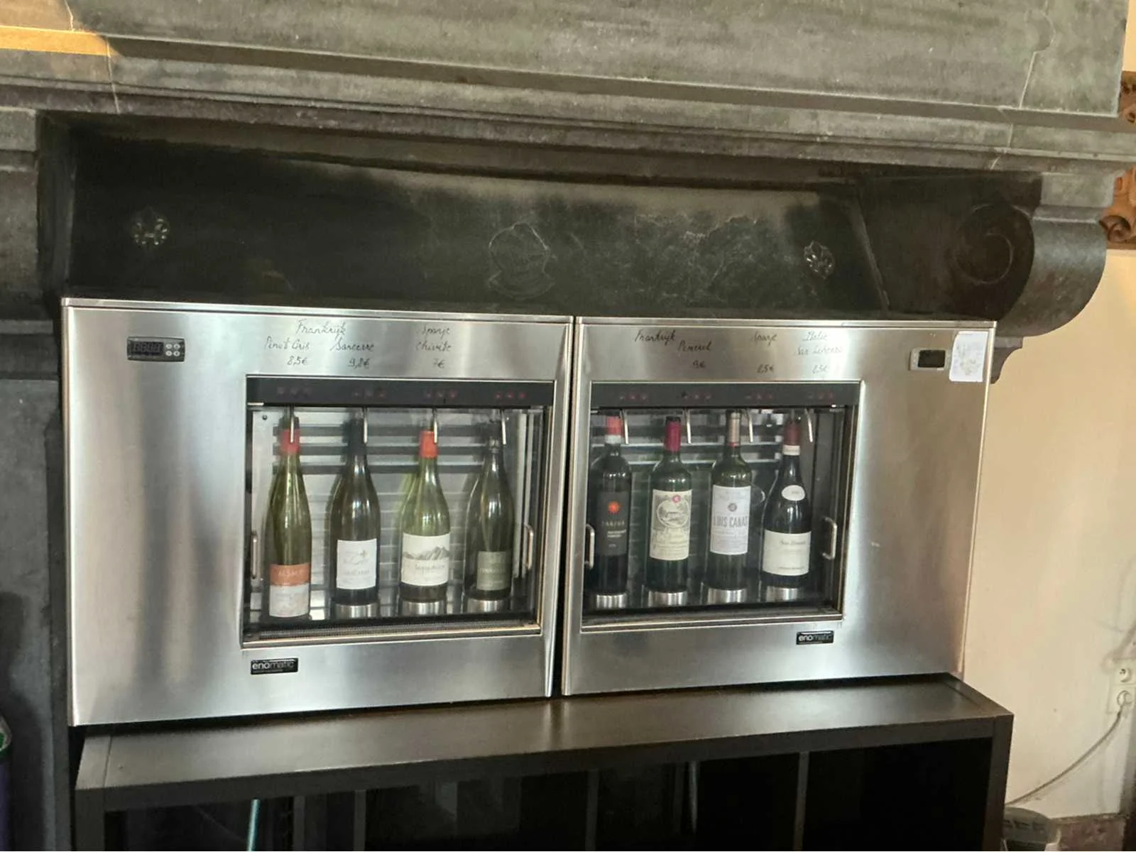 2-deurs wijnfrigo voor een totaal van 4 flessen witte wijn en 4 flessen rode wijn. In perfect werkende staat. Nee Bestaande uit: 2 deursfrigo