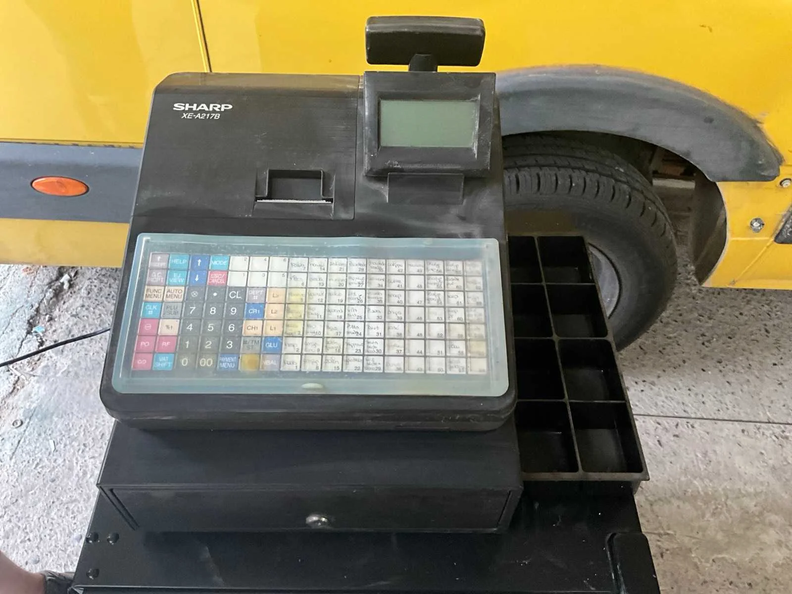 💵 Sharp XE-A217B elektronische kassa – met kassalade Omschrijving: Professionele kassa van Sharp, model XE-A217B, met geïntegreerde kassalade en programmeerbaar toetsenbord. Voorzien van een LCD-display, thermische printer voor kastickets en sleutelingang voor bediening. Veelgebruikt in horeca, retail en marktomgevingen. Nee Merk: Sharp Type: XE-A217B