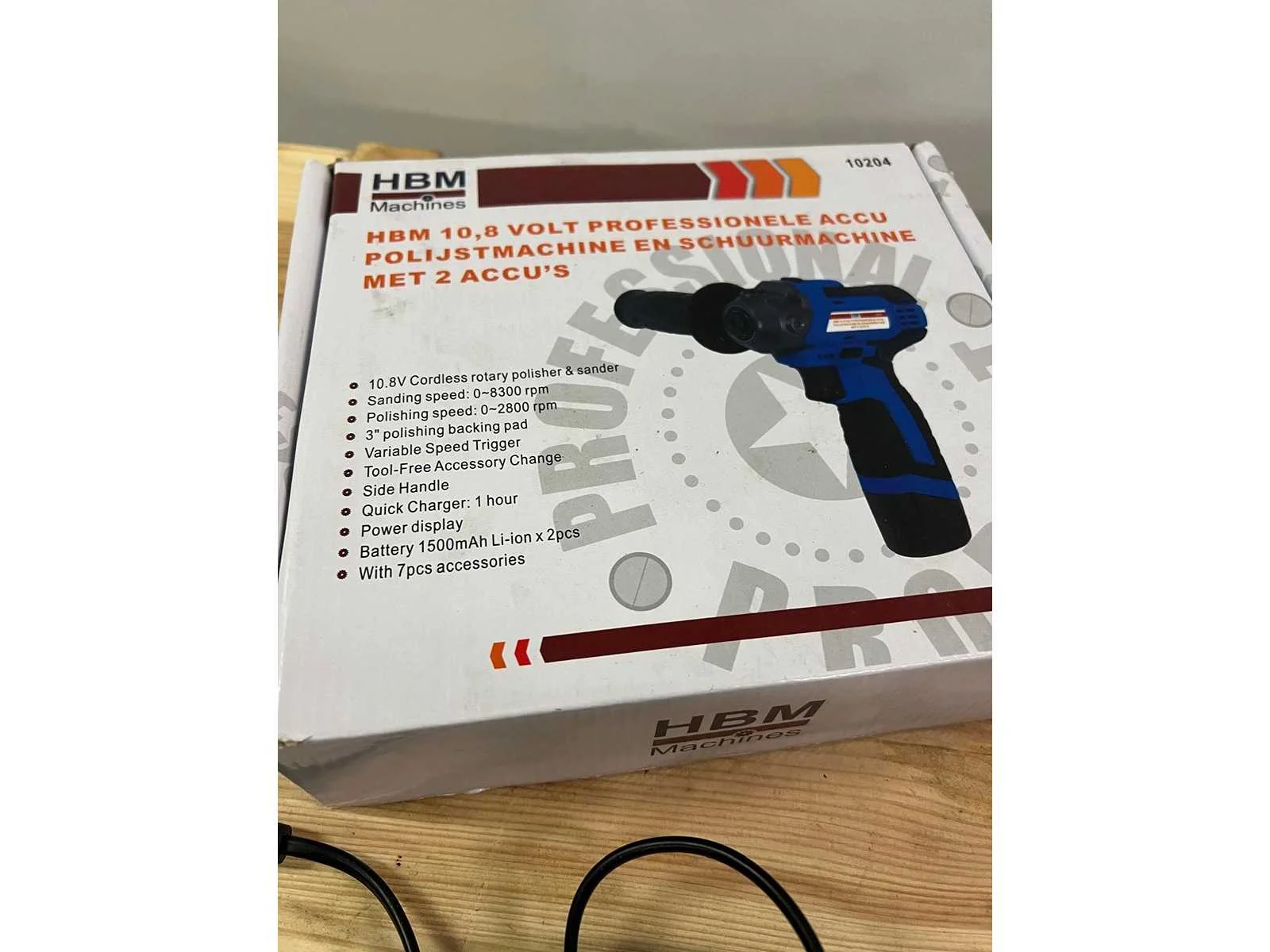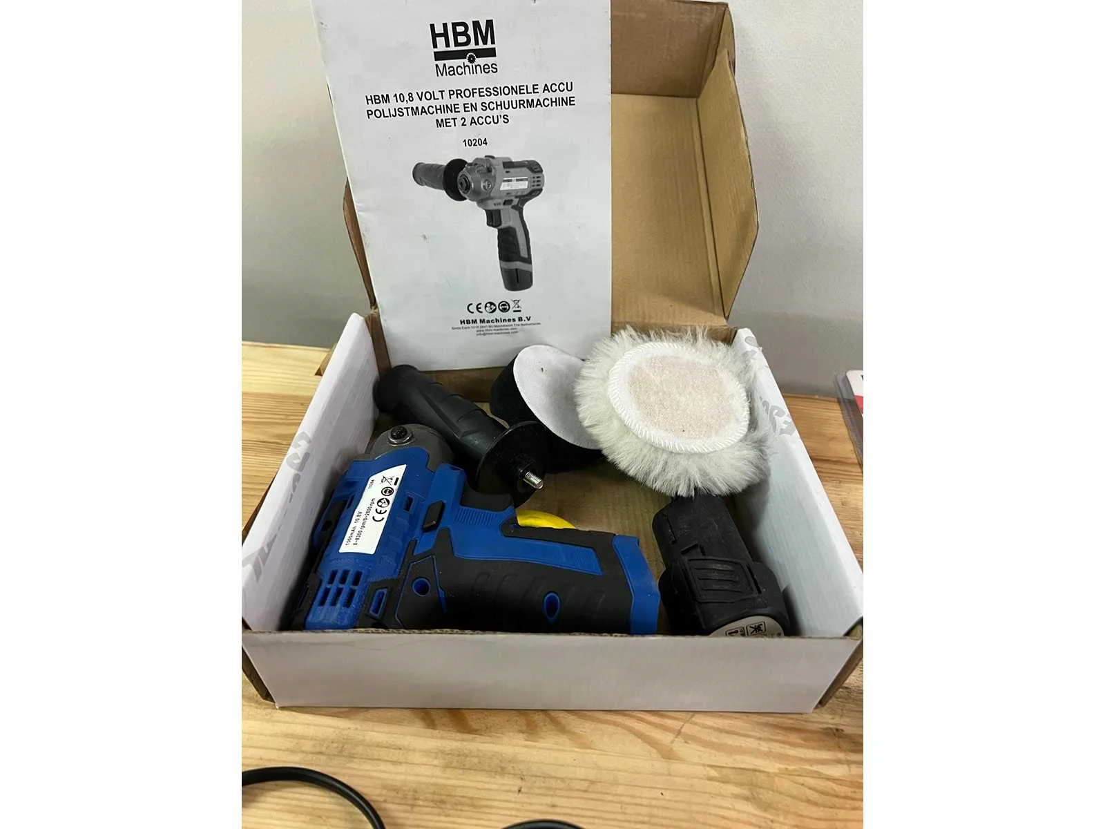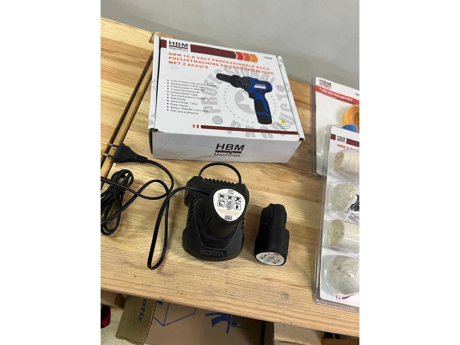 Set HBM polijst- en schuurmateriaal, compleet en in zeer goede staat. Deze set bevat: - HBM 10,8V Professionele Accu Polijst- en Schuurmachine (model 10204) Inclusief 2 Li-ion accu’s (1500mAh), snellader en opzetstukken. - HBM 7-delige Polijstset met diverse schijven en opzetstukken. - HBM Polijstpasta set (4 kleuren) – voor grof tot fijn polijsten van metaal, aluminium, RVS, kunststof of lak. - HBM Polijstschijven (diverse maten, nieuw in verpakking). - Polijstkegels en -pads voor detailwerk en moeilijk bereikbare plaatsen. Nee Merk: HBM Type: 10204 Besturing, merk, type: Handbediend