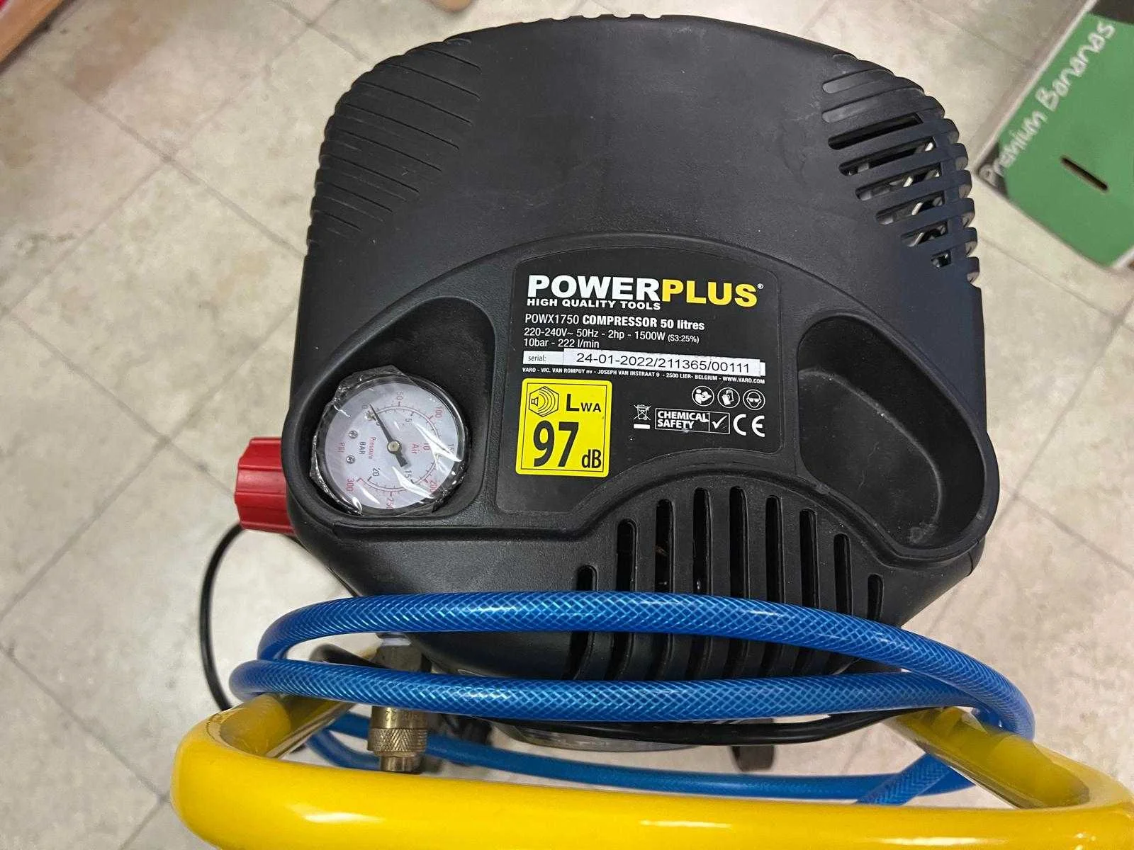 Powerplus POWX1750 verticale luchtcompressor met 50 liter tank. Compact model met geïntegreerde drukregelaar, veiligheidsventiel en manometer. Geschikt voor diverse toepassingen zoals banden oppompen, spuit- en blaaswerk. Inclusief luchtslang op haspel. Nee Merk: Powerplus Type: POWX1750 Bouwjaar: 2022 Serienummer: 2193580179 Mobiel: true Capaciteit.: 10bar Luchtstroom: 222l/min Buffertank inhoud: 50l