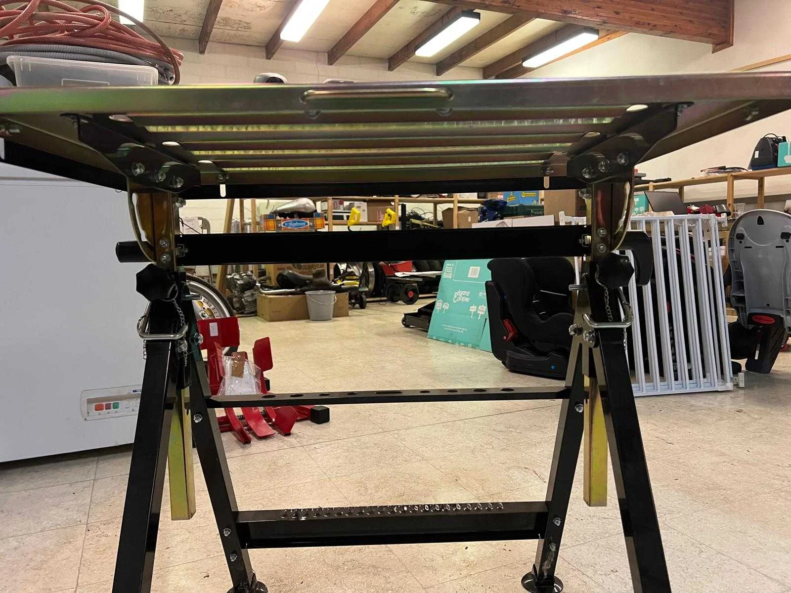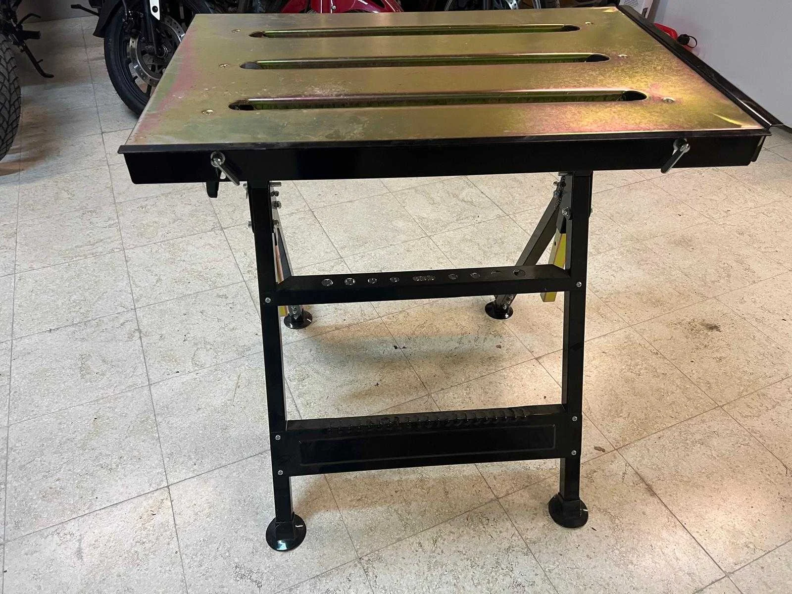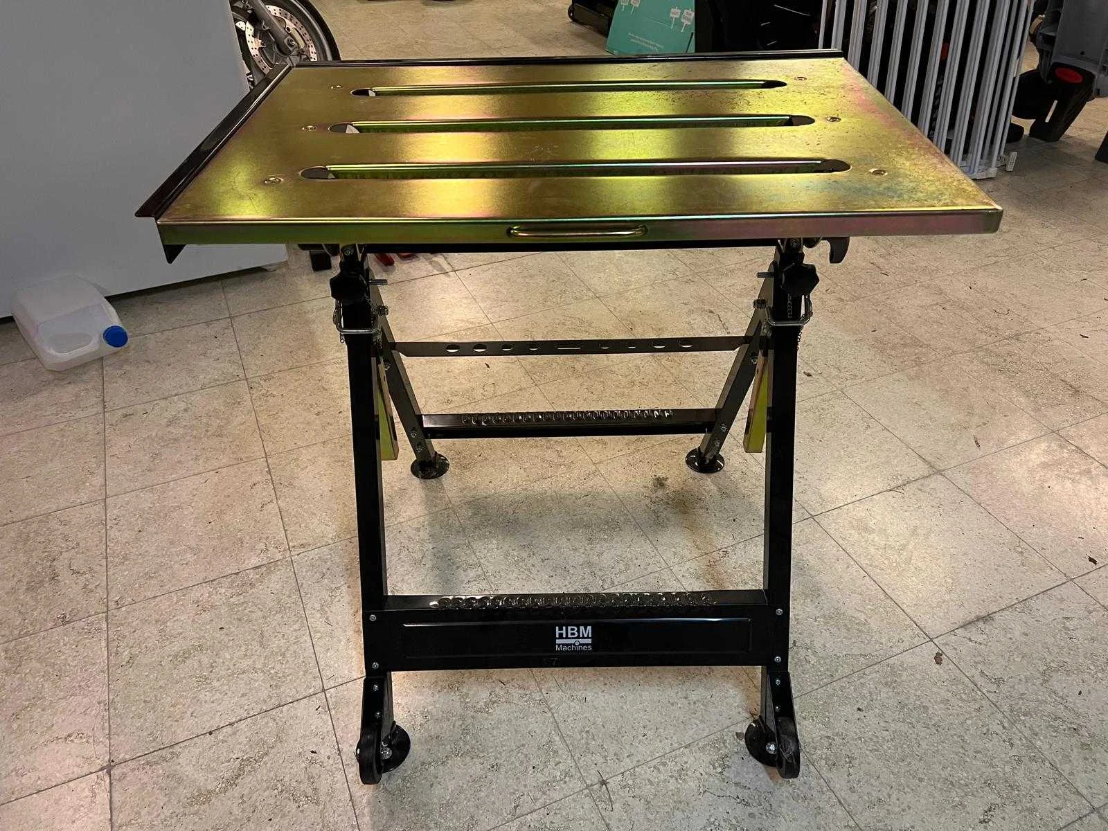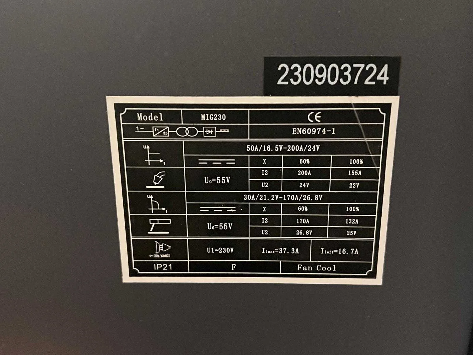 Volledige MIG lasuitrusting van HBM in zeer nette staat, inclusief veiligheidskleding, laskap, lasmagneten, handschoenen, tang en laswerktafel. Klaar voor gebruik. Deze set bevat: - HBM 230 CI MIG lasapparaat (IGBT DC Inverter, digitaal display) - MIG toorts en massakabel - Lasmagneten in originele verpakking - Laswerkhandschoenen (blauw, hittebestendig) - Stanley E-Protection 2000 E11 laskap met handleiding en extra vizierglas - Laswerktafel met verstelbaar frame op wielen - Laskleding (rode jas) - Warmtereflecterend lasdeken - Tang voor draadaanvoer (merk FIX) Nee Merk: HBM Machines Type: HBM 230 CI MIG Inschakelduur: 60% Max. lasvermogen: 230A Aansluiting: 230V Digitale uitlezing: true Draadaanvoerunit: true Machinegewicht: 12kg