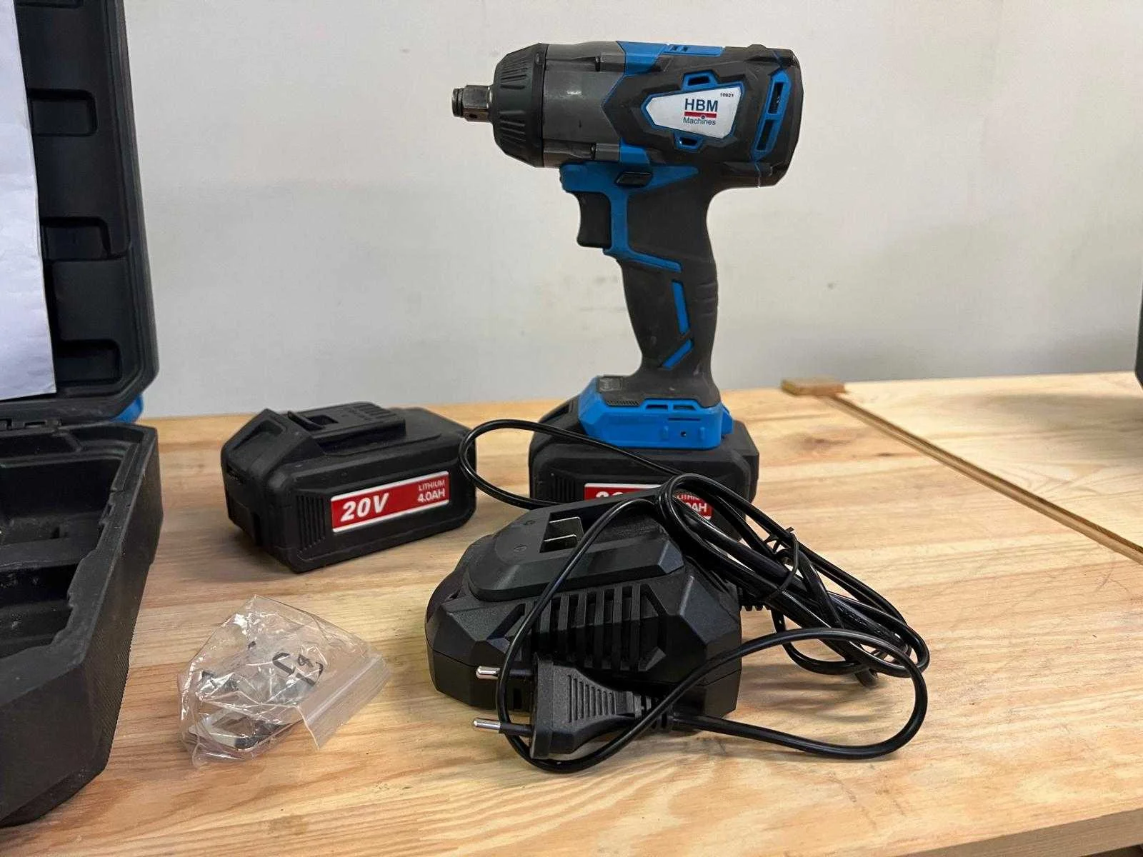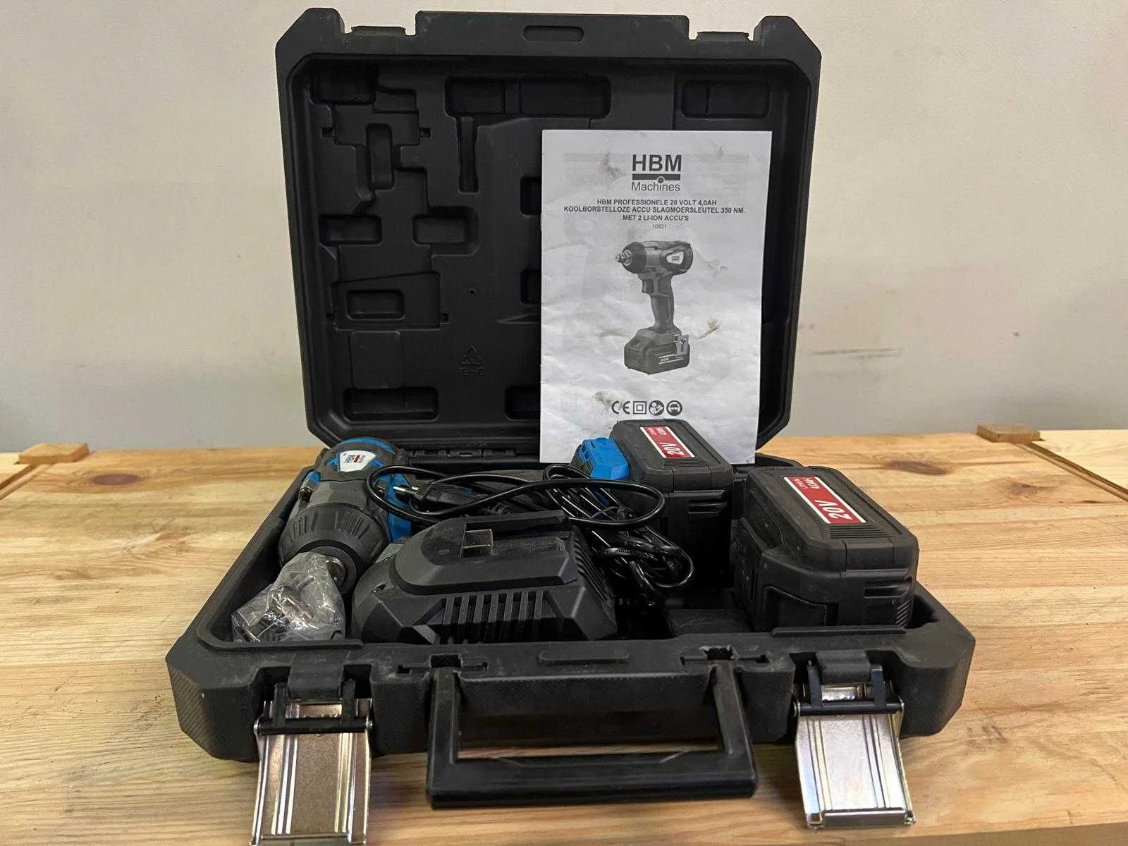 HBM Professionele koolborstelloze slagmoersleutel op accu, geleverd in stevige kunststof koffer. Inclusief: - 2 Li-Ion accu’s van 20V 4.0Ah - Snellader - Handleiding - Set bevestigingsbouten Compact, krachtig en ideaal voor garage- en werkplaatsgebruik. De koolborstelloze motor biedt langere levensduur en efficiënt energieverbruik. Getest, werkt goed. Minimale gebruikssporen op koffer. Nee Merk: HBM Machines Model: 10921 Max. koppel: 350 Spanning: 20 Kleur: Blauw/Zwart Gewicht: 3,5 Materiaal: Kunststof behuizing met metalen aandrijfkop