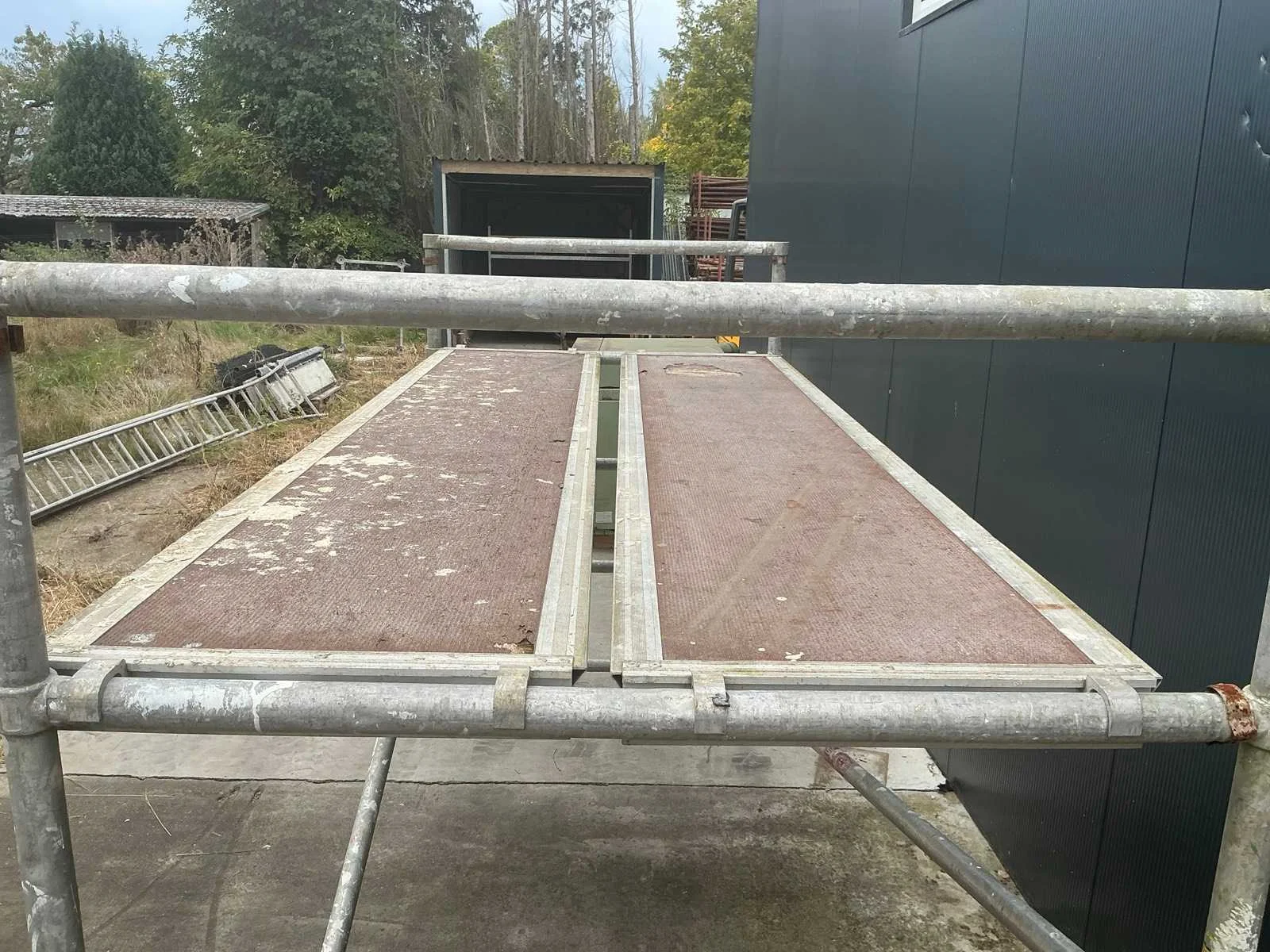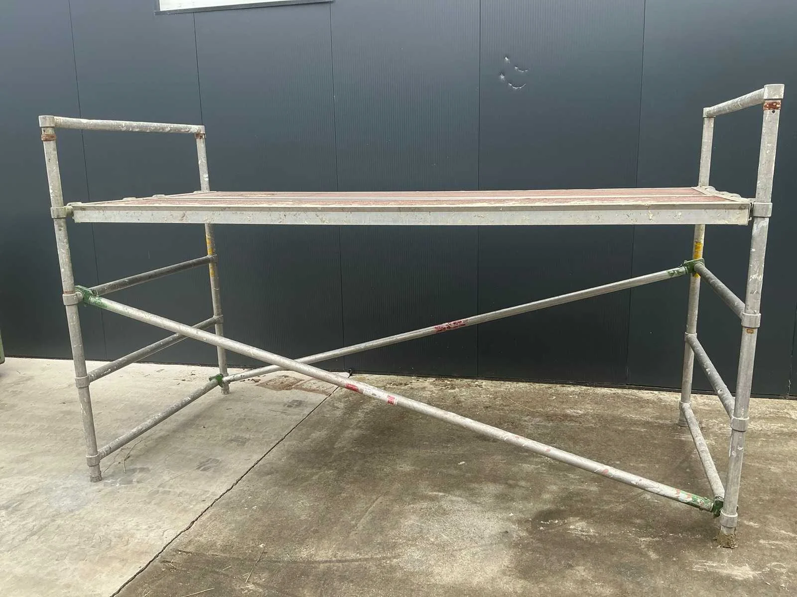 1M80 hoogte, lengte 3M05, breedte 1M35 met 2 legplanken en 2 dwarsliggers. Nee Lengte: 305cm Breedte: 135cm Hoogte: 180cm Materiaal: Staal Leveringsvoorwaarden: Heftruck aanwezig