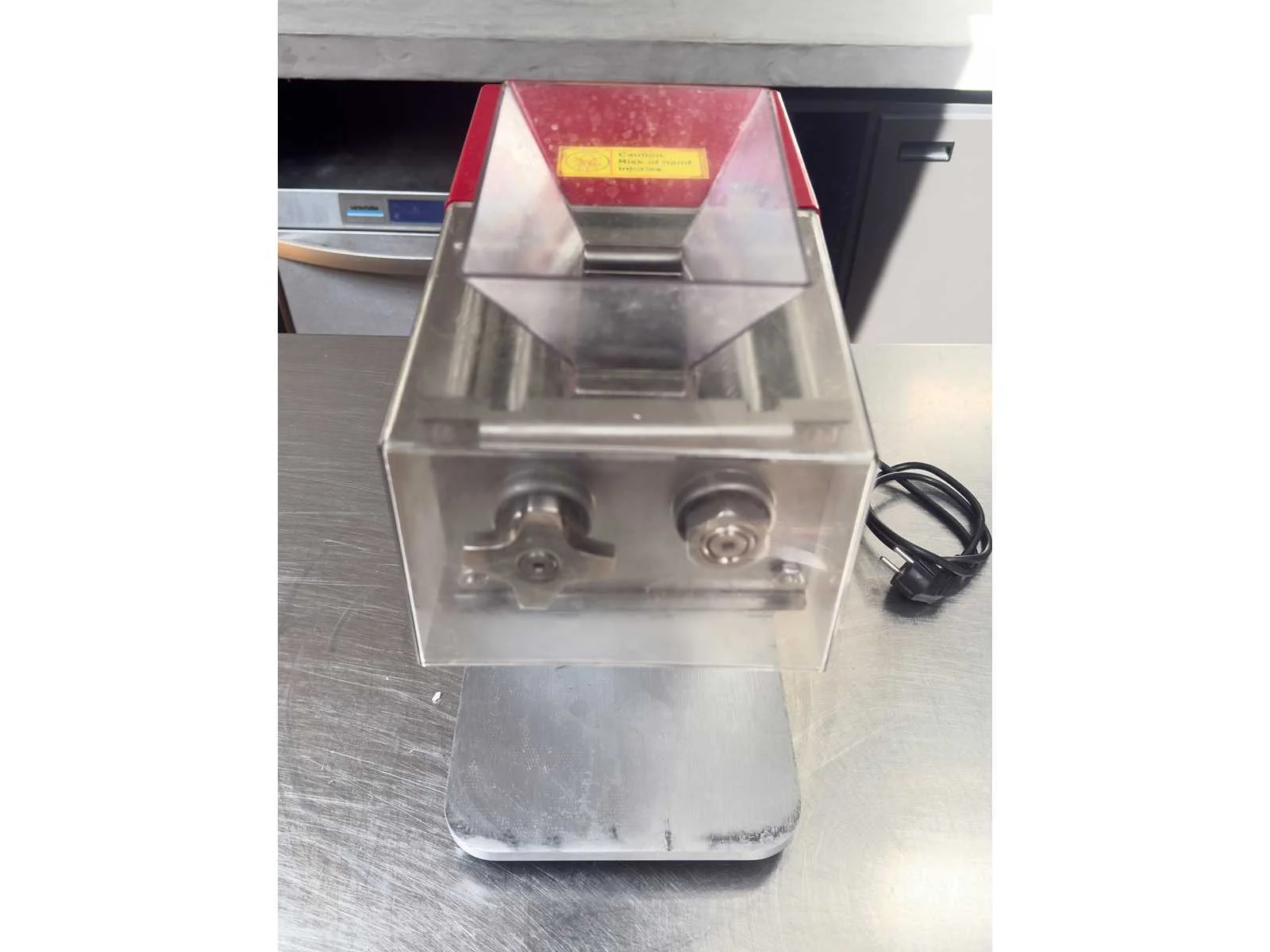 Groentesnijder Merk DZ Professionele groentesnijder – Professionele keukenmachine – Inox schijven Heavy-duty groentesnijder ontworpen voor snel en consistent snijden, versnipperen en raspen. Gebouwd voor professionele keukens, catering en voedselproductie waar efficiëntie en precisie essentieel zijn. Belangrijkste kenmerken Krachtige motor – betrouwbaar en efficiënt Inclusief RVS doorslijpschijven – robuust en hygiënisch Grote invoertrechter met aanstamper voor veilig gebruik Continue uitvoertrechter - ideaal voor het voorbereiden van grote volumes Eenvoudig te demonteren en schoon te maken Professionele vleessnijder – Inox – Heavy-Duty Robuuste vleessnijder ontworpen voor professionele keukens, slagerijen en voedselproductieomgevingen. Gebouwd met een duurzame roestvrijstalen behuizing en beschermkap voor betrouwbaar, efficiënt snijden. Belangrijkste kenmerken Heavy-duty inox constructie – sterk en hygiënisch Uiterst nauwkeurige snijmessen – consistente prestaties Beschermtrechter en beschermkap voor veilige werking Compact en stabiel ontwerp – ideaal voor continu gebruik Gemakkelijk schoon te maken en te onderhouden Volledig functioneel en getest Professionele Kruidenmolen – Inox – High-Speed Compacte en krachtige roestvrijstalen kruidenmolen ontworpen voor het met precisie malen van kruiden, granen, koffie en droge ingrediënten. Ideaal voor restaurants, catering en voedingslaboratoria die fijne en consistente resultaten nodig hebben. Belangrijkste kenmerken High-speed motor – snel en efficiënt slijpen Roestvrijstalen kamer – duurzaam en hygiënisch Veiligheidsslot deksel met klemmen voor veilige bediening Compact en stabiel ontwerp - gemakkelijk te hanteren en op te bergen Gemakkelijk schoon te maken en te onderhouden Volledig functioneel en getest No Merk: DZ