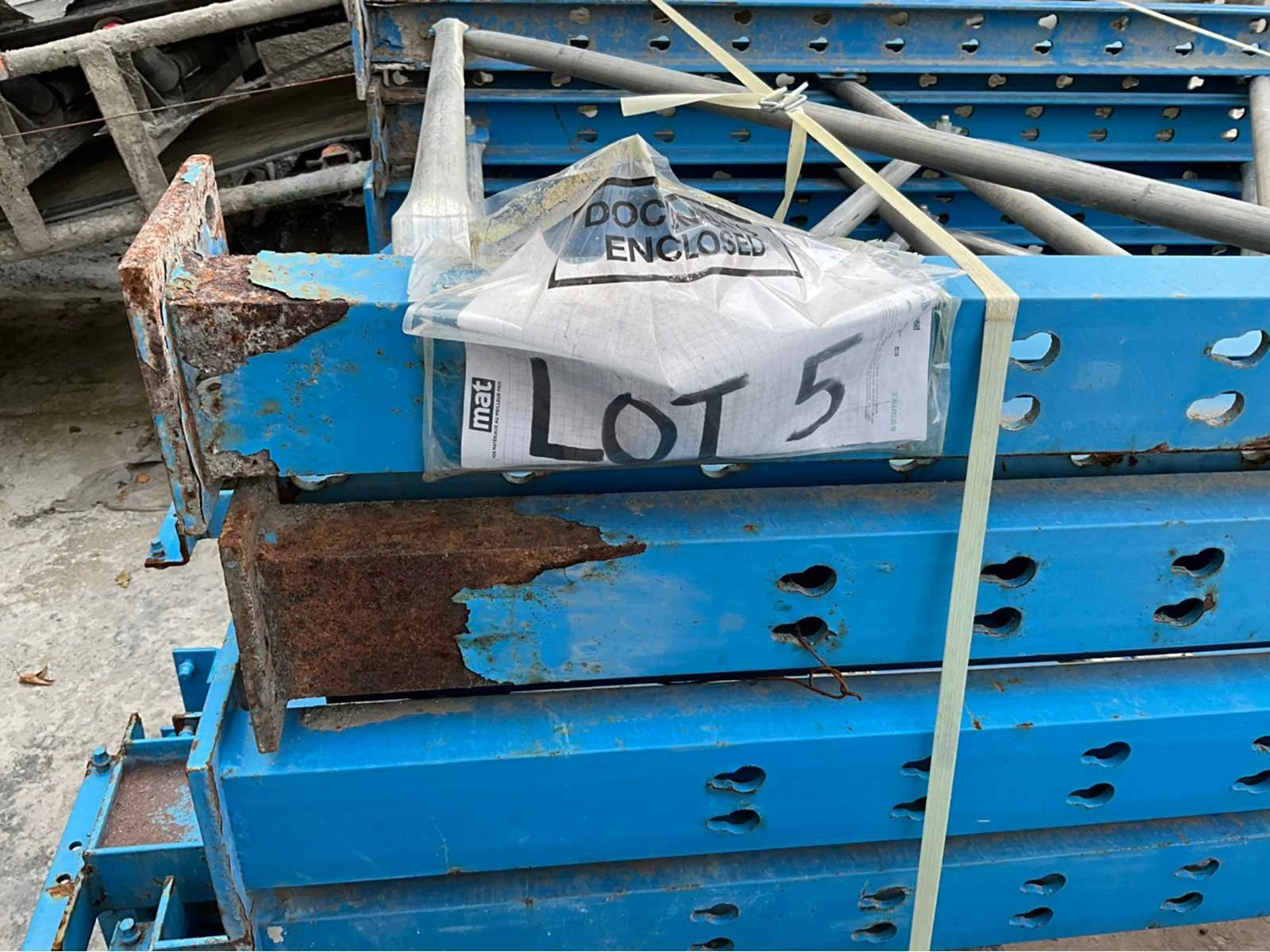 7 staanders 310cm 24 leggers 330cm 6 leggers 300cm 6 leggers 270cm Volledig gedemonteerd en klaar gezet op pallets No Aantal staanders: 7 Aantal liggers: 36 Totale afmeting L: 1900cm Totale afmeting Hoogte: 310cm