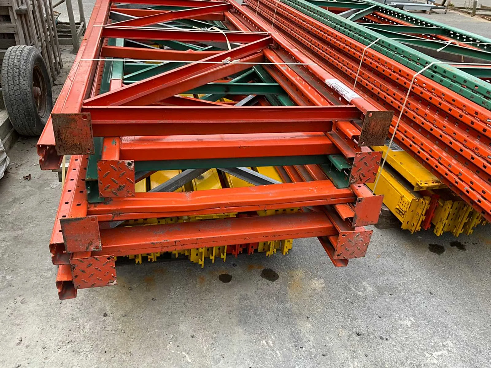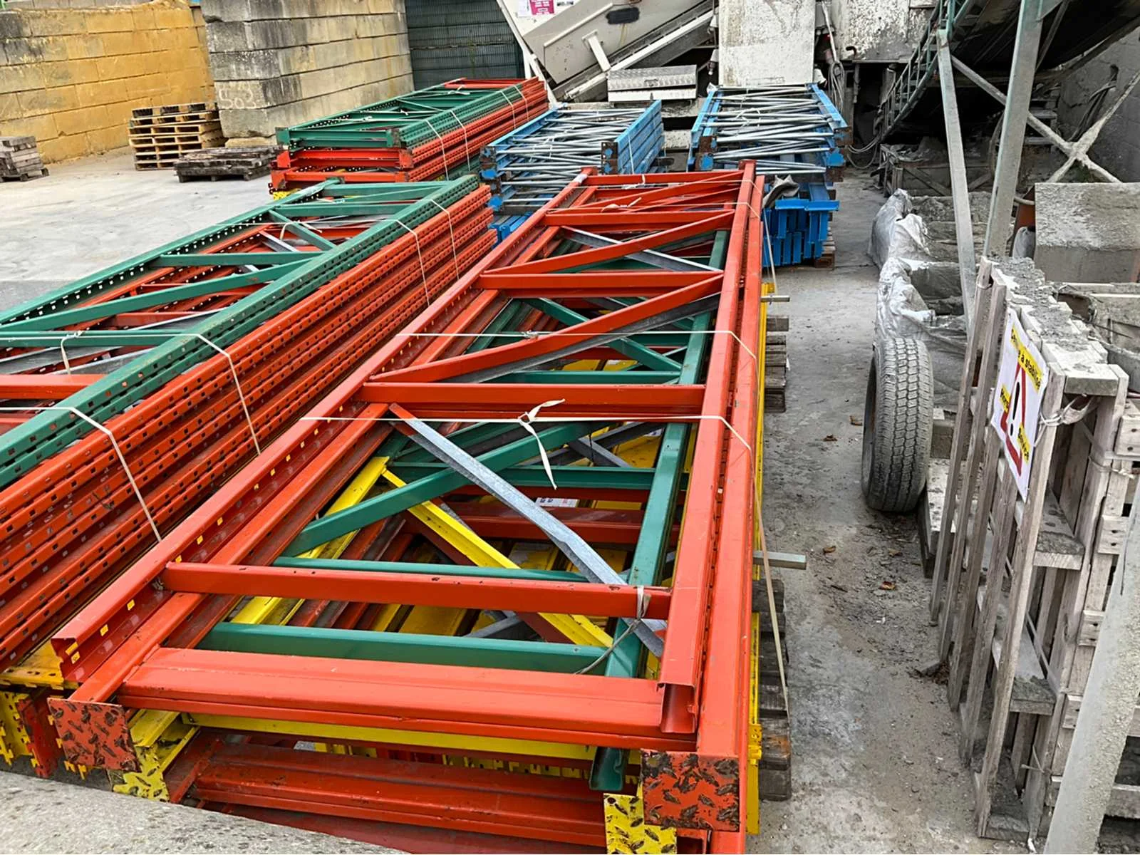 24 leggers van 360cm 6 staanders van 460cmx100cm 2 staanders van 460cmx90cm Volledig gedemonteerd en klaar gezet op pallets No Aantal staanders: 8 Aantal legborden: 24