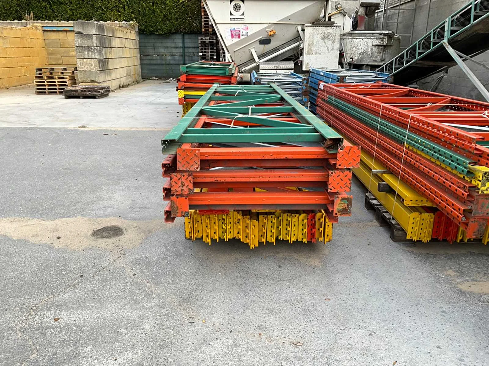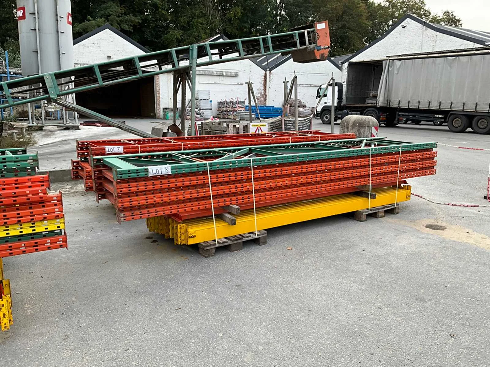 23 leggers van 355cm 7 staanders van 460x90cm Volledig gedemonteerd en klaar gezet op pallets No Sectie diepte: 900mm Sectie afm. h: 4600mm Aantal staanders: 7 Aantal legborden: 23