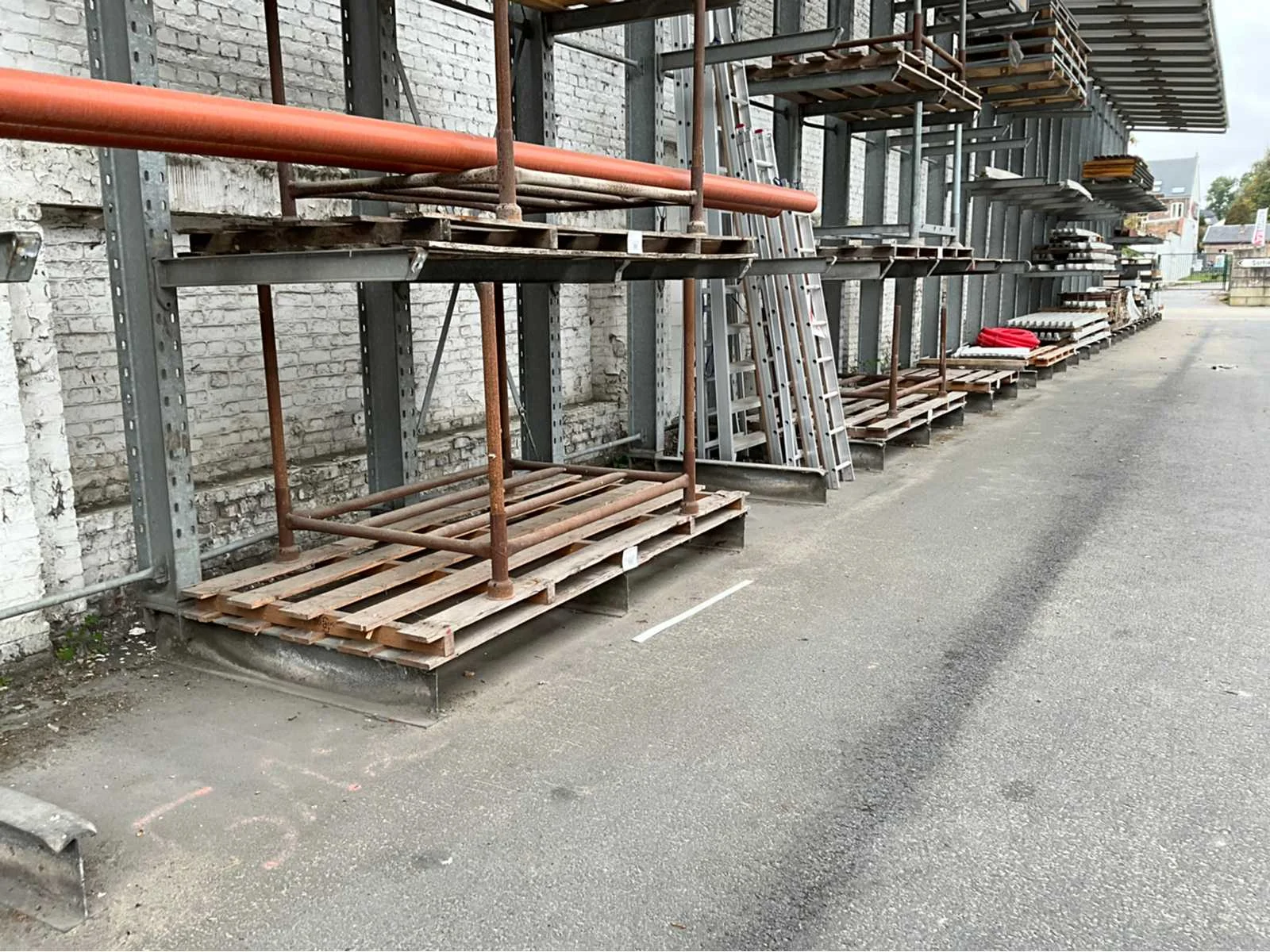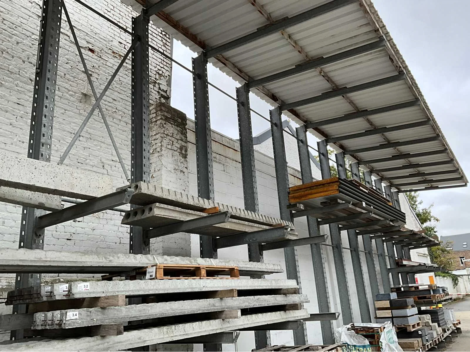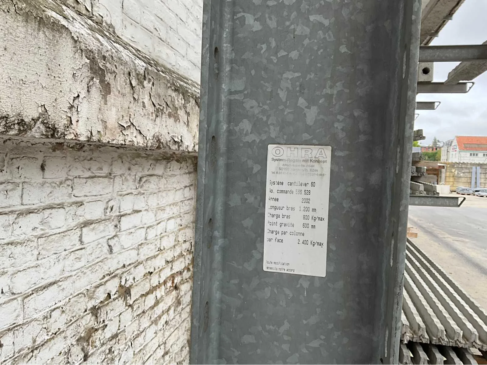 38 staanders van 555cm 94 draagarmen van 120cm met dak Belasting draagarm: 800kg (max) Belasting per kolomzijde: 2400kg Exclusief inhoud No Merk: OHRA Type: 60 Bouwjaar: 2002 Aantal staanders: 38 Aantal liggers: 94 Max. sectiebelasting: 2400kg Materiaal: galvanised Totale afmeting L: 4700cm Totale afmeting Breedte: 120cm Totale afmeting Hoogte: 555cm