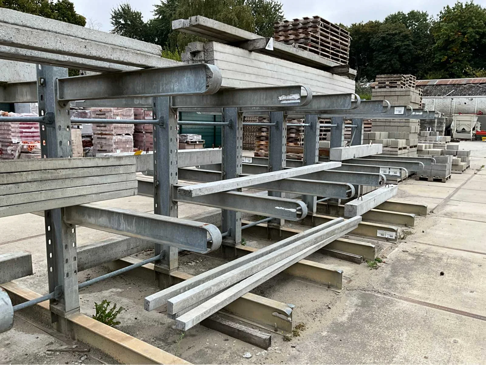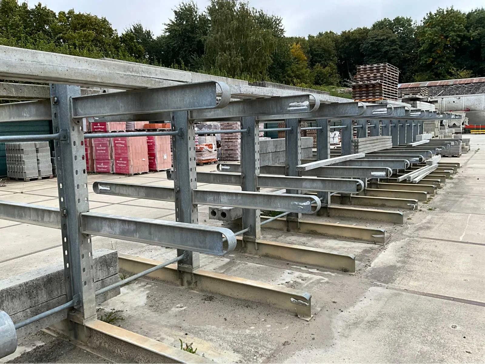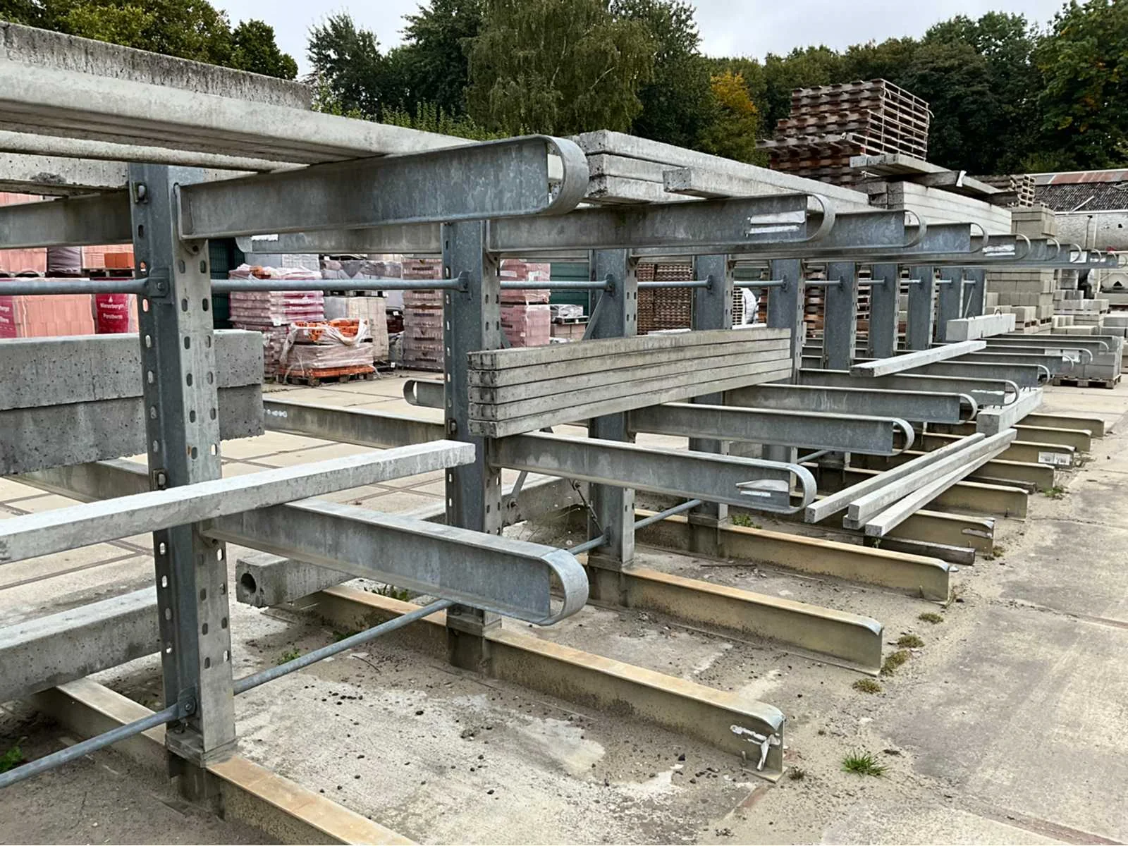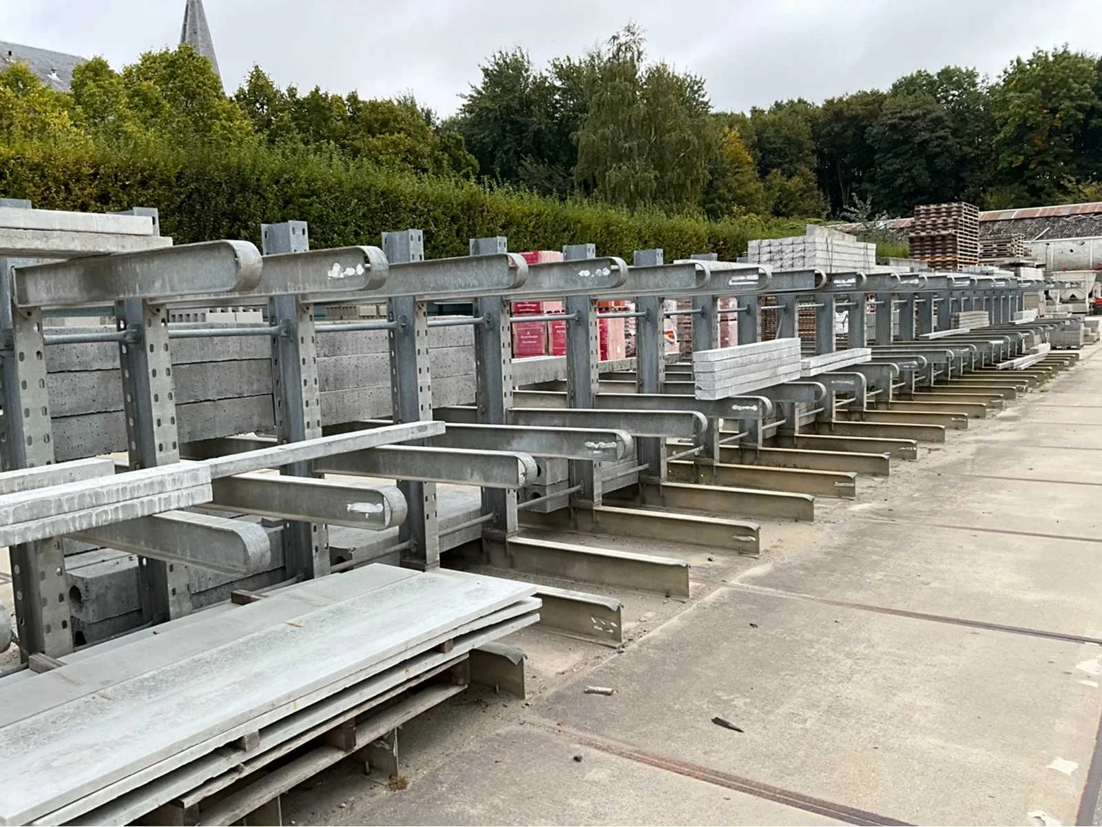 25 staanders van 205cm 100 draagarmen van 126cm No Aantal staanders: 25 Aantal liggers: 100 Materiaal: Galvaniseerd Totale afmeting L: 2400cm Totale afmeting Hoogte: 205cm
