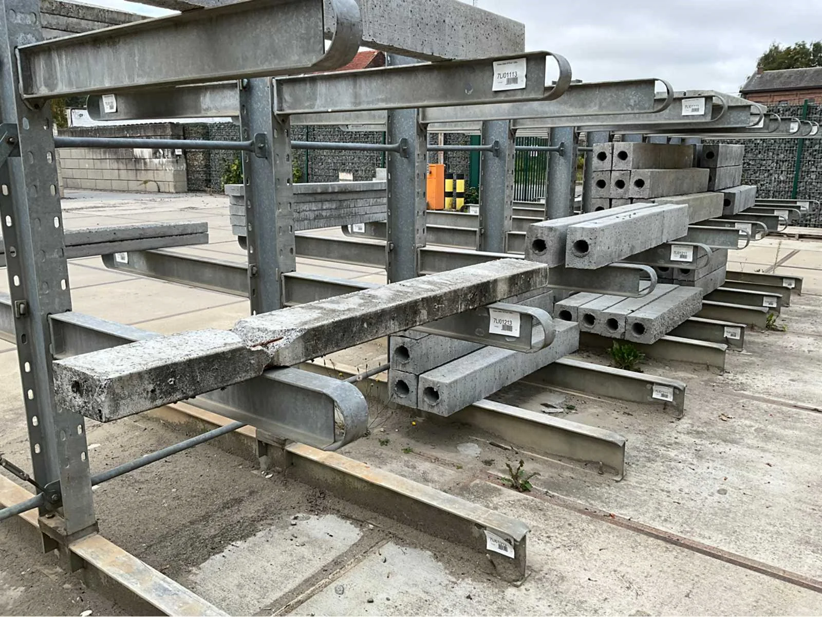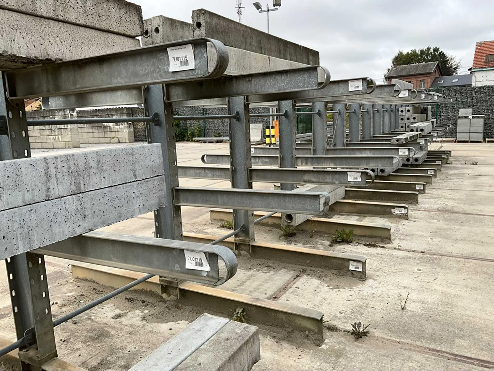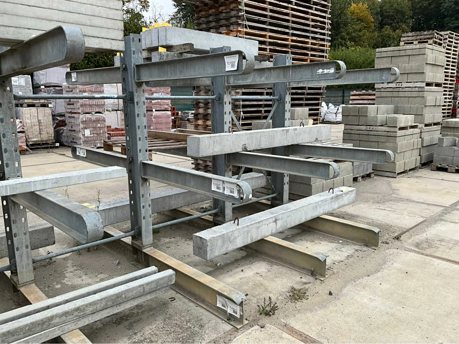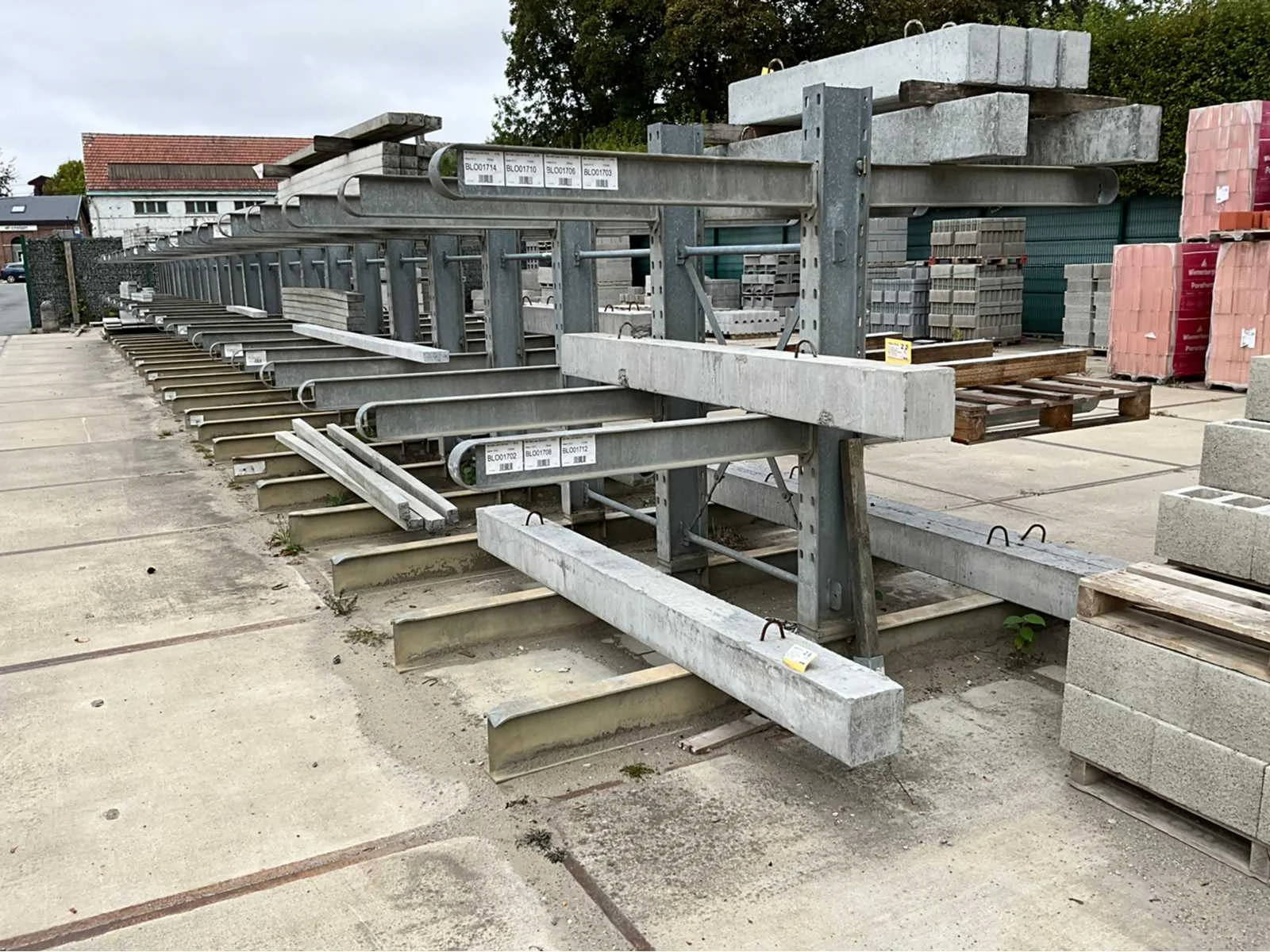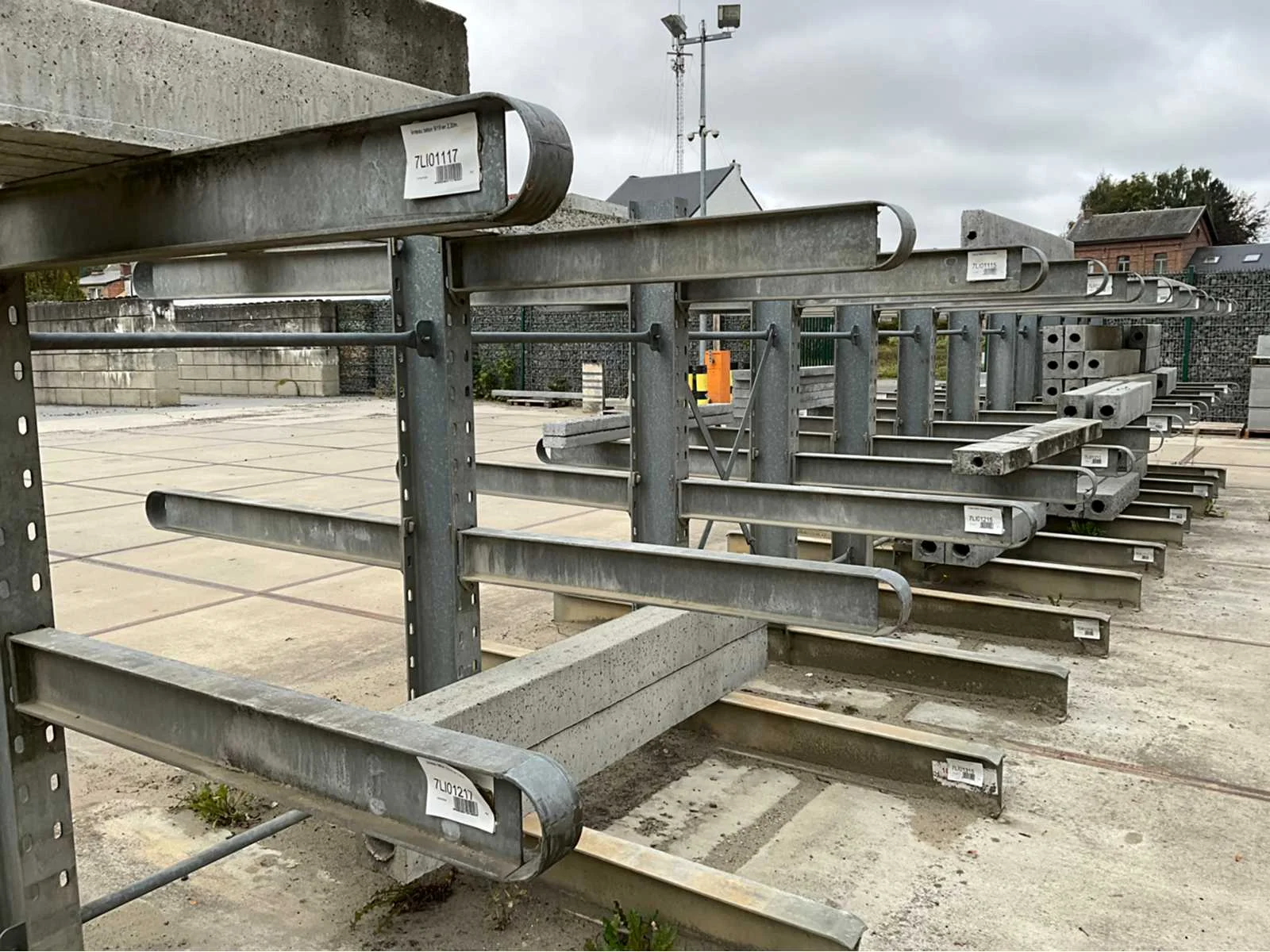 25 staanders van 205cm 100 draagarmen van 126cm No Aantal staanders: 25 Aantal liggers: 100 Materiaal: Galvaniseerd Totale afmeting L: 2400cm Totale afmeting Hoogte: 205cm