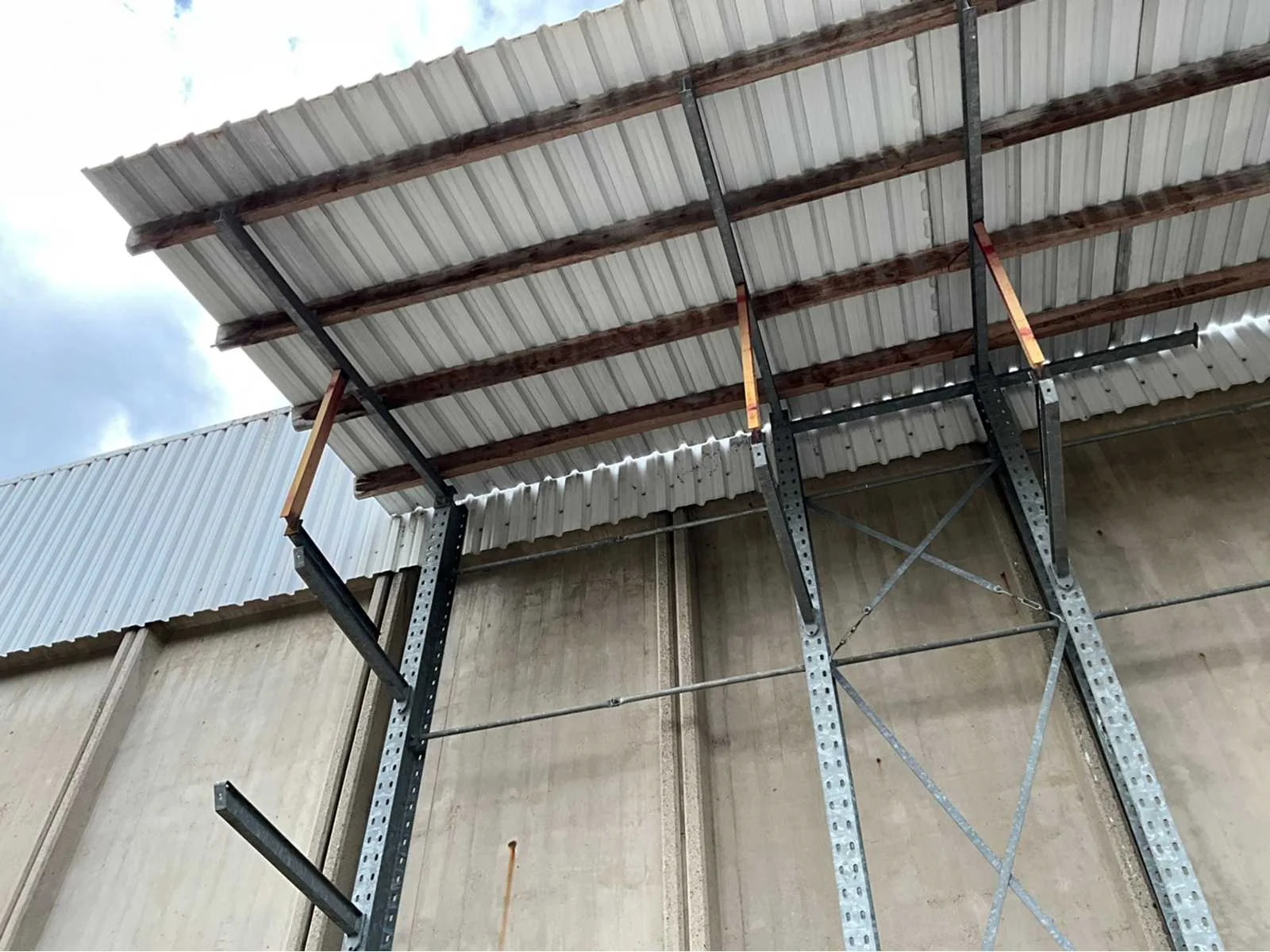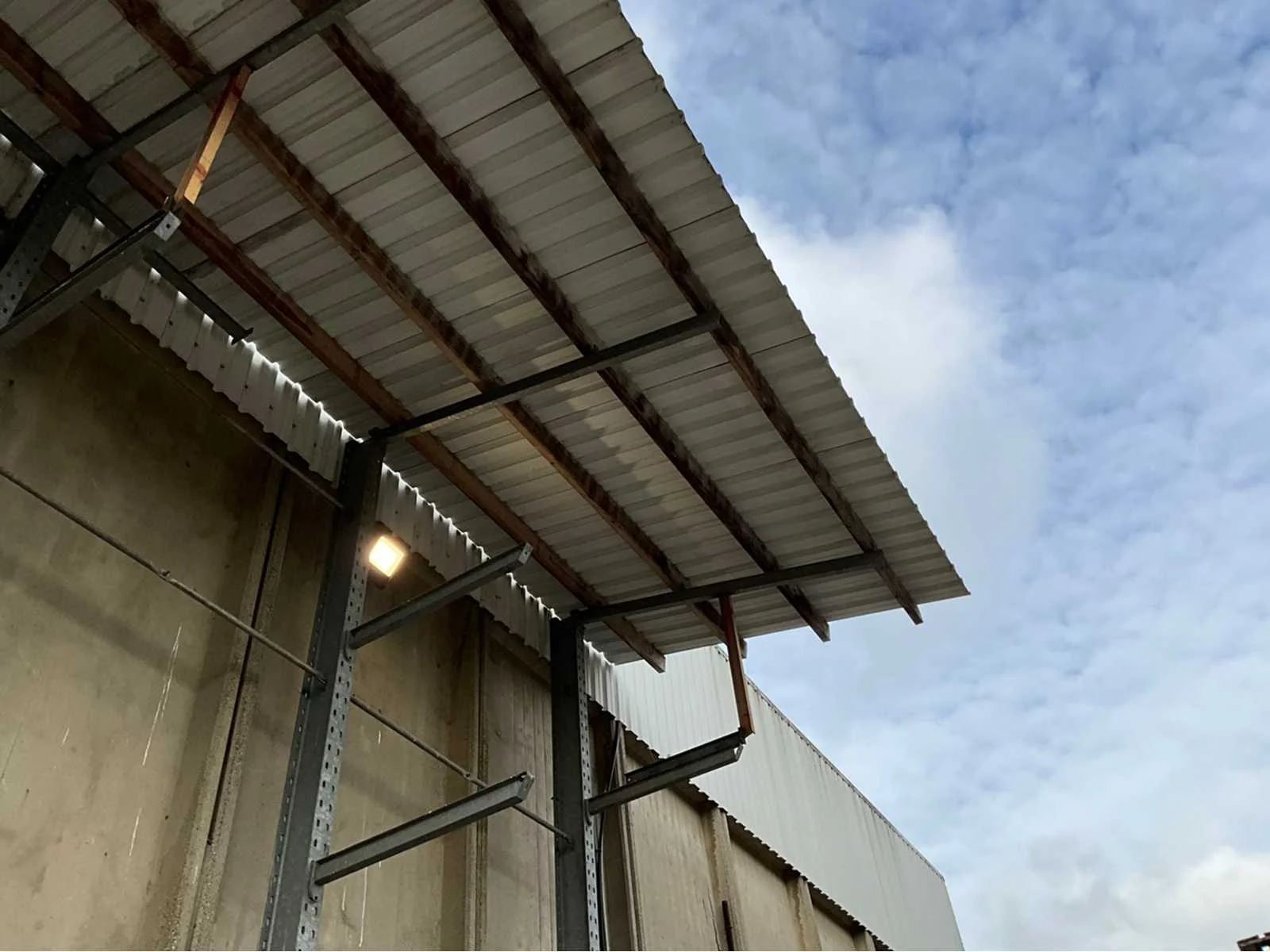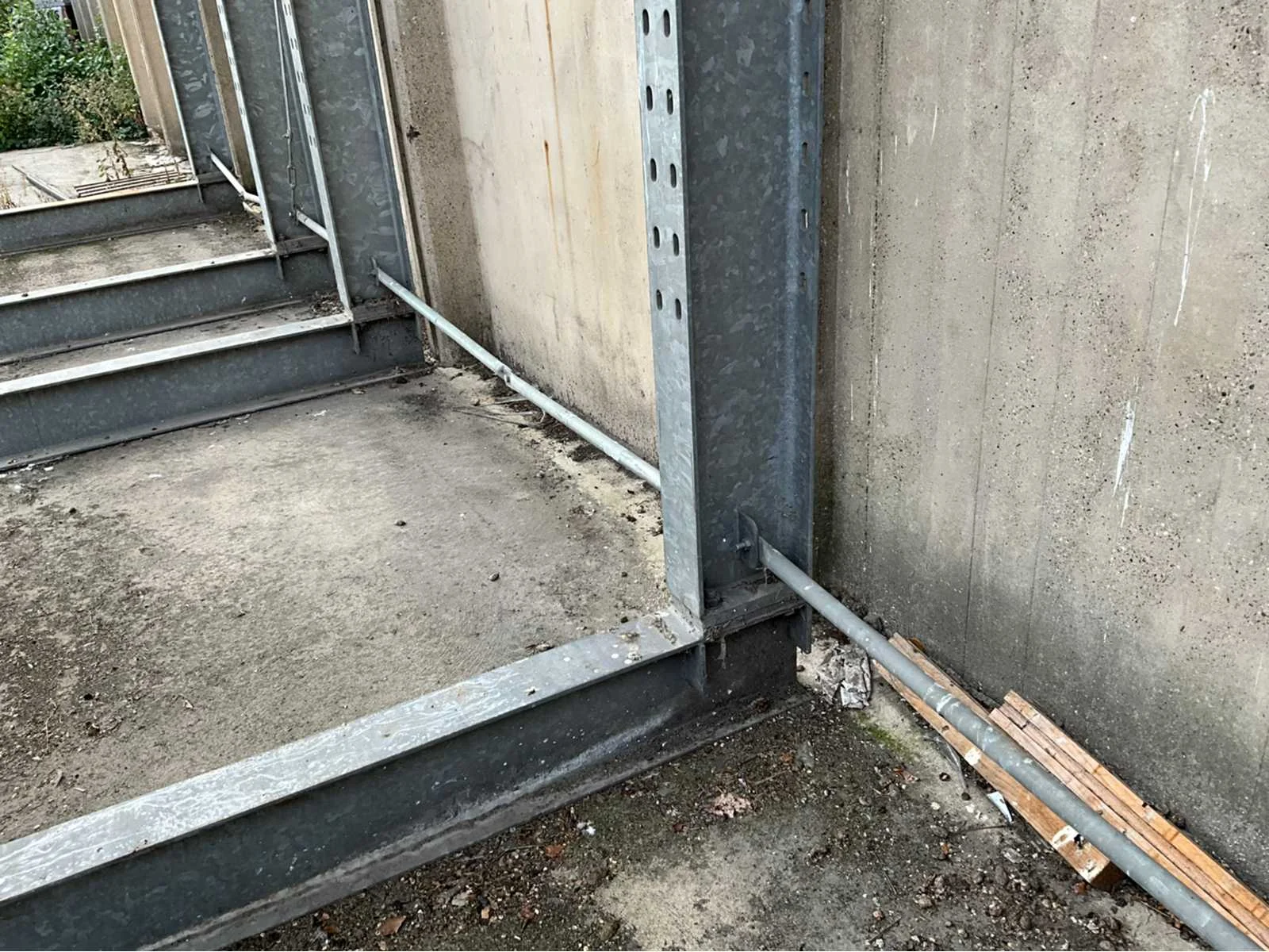 5 staanders van 700cm 7 draagarmen van 120cm dak inclusief No Aantal secties: 3 Aantal staanders: 5 Aantal liggers: 7 Materiaal: gegalvaniseerd Totale afmeting L: 800cm Totale afmeting Breedte: 120cm Totale afmeting Hoogte: 700cm