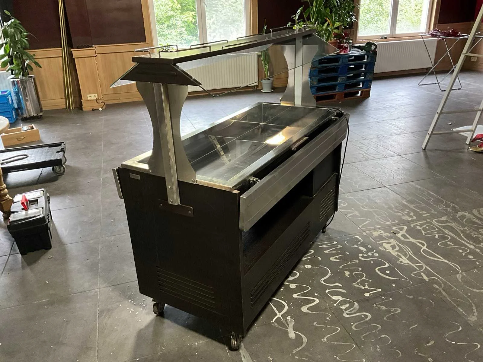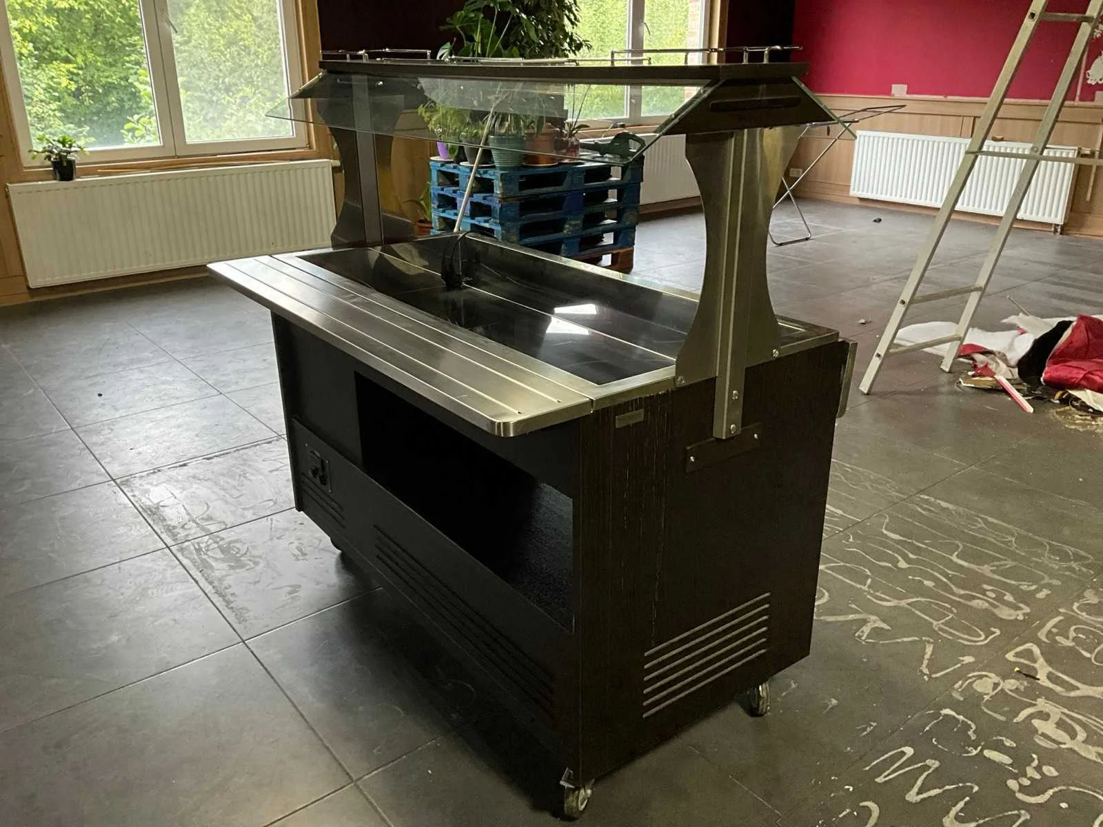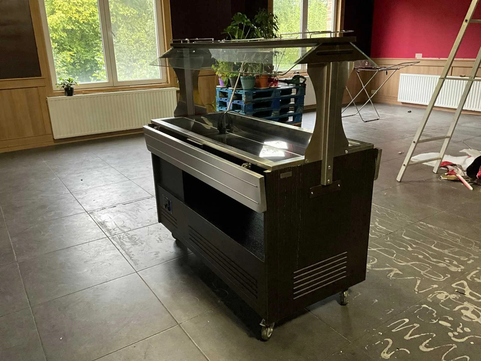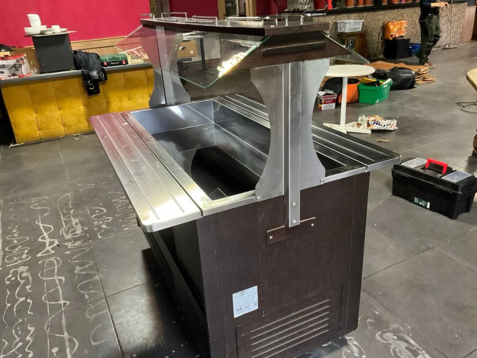Restaurant display type koelkast/vriezer MERK: Ernest Menard MODEL: Setustu ocak BOUWJAAR: 06.12.2021 Presentatie: - Display type koelkast - je kunt er vers voedsel in doen (in een RVS bakje, ....) - Zeer weinig gebruikt, zeer goede staat - armleuning aan de zijkant - zie foto's voor specificiteit Een paar stoten en krassen, zichtbaar op foto's Verkocht zoals het is - zie foto's Non Merk: Ernest menard Model: Setustu ocak Kleur: Gris métal inox