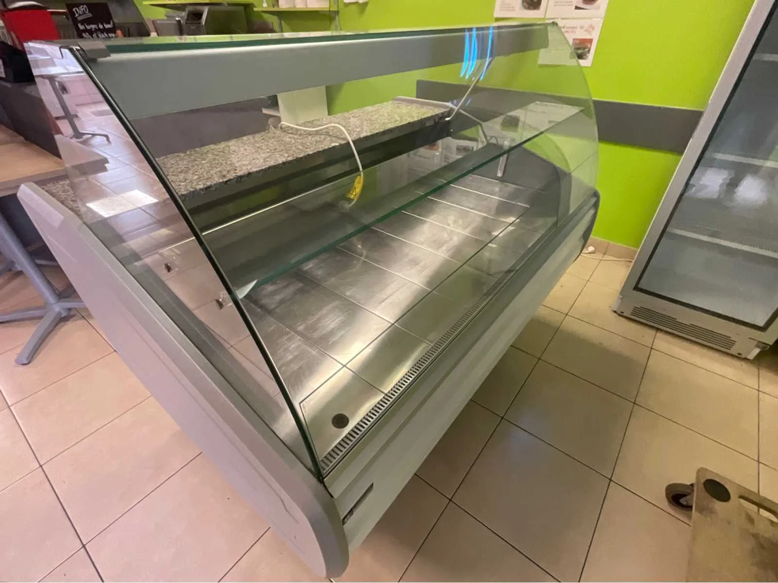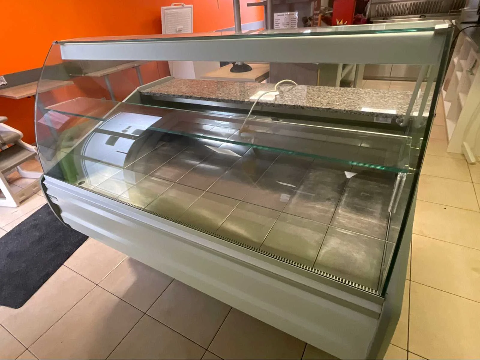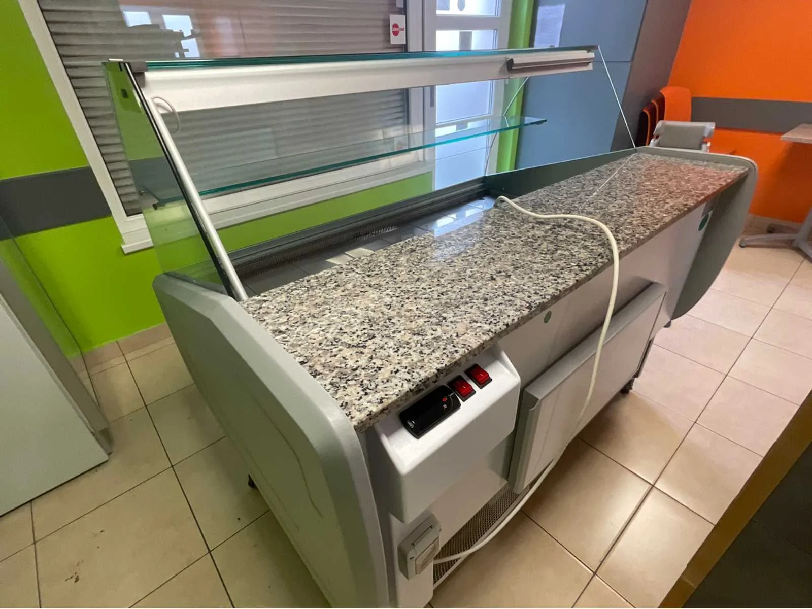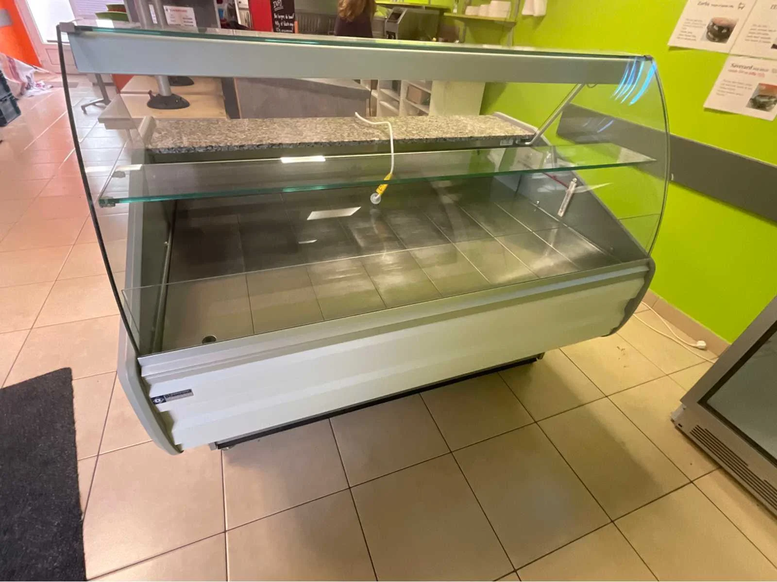 Gekoelde vitrine Zoin Mythos 150 HC Merk: Zoin Refrigerazione Srl Model: Mythos 150 HC Bouwjaar: 2016 Serienummer: 4504/2016 Herkomst: Italië Type: Geventileerde gekoelde vitrine Koelgas: R404A (0,520 kg) Stroomvoorziening: 230 V / 50 Hz Stroomverbruik: 814 W Netto inhoud: 159 L Bedrijfstemperatuur: tussen +2 °C en +8 °C (afhankelijk van de instelling) Klimaatklasse: 3 Afmetingen bij benadering: 150 cm (B) × 120 cm (H) × 110 cm (D) Afwerking: granieten werkblad, gebogen glas aan de voorkant, glazen tussenplank, metalen frame met wielen. Non Merk: Zoin Type: Mythos 150 HC Bouwjaar: 2016 Materiaal: Inox Mobiel: true Ingebouwde koelcompressor: true Serienummer: 4504/2016 Temperatuurbereik max.: 8°c Aansluiting: 230V Temperatuurbereik min.: 2°c Capaciteit.: 159l Rvs: true