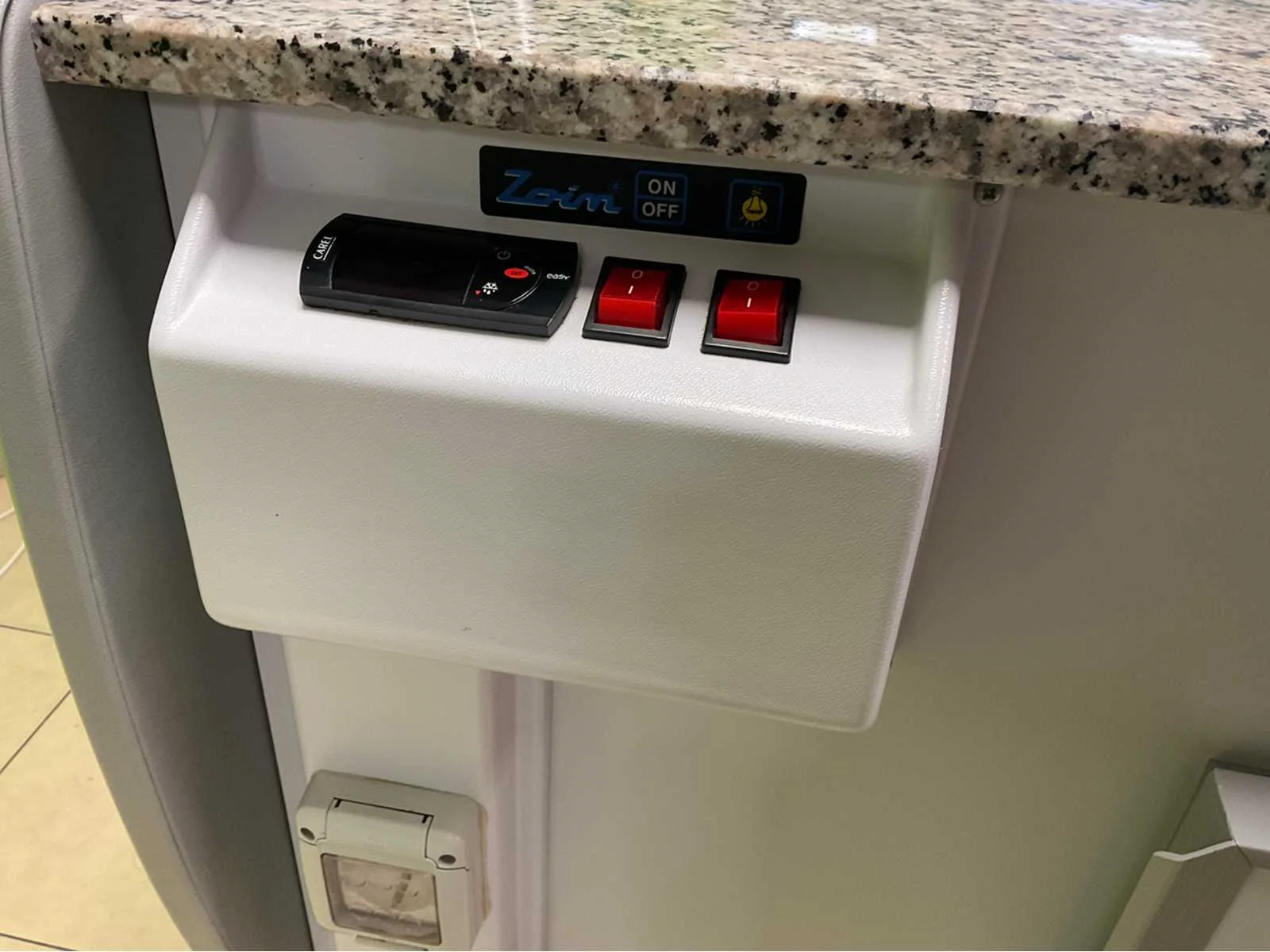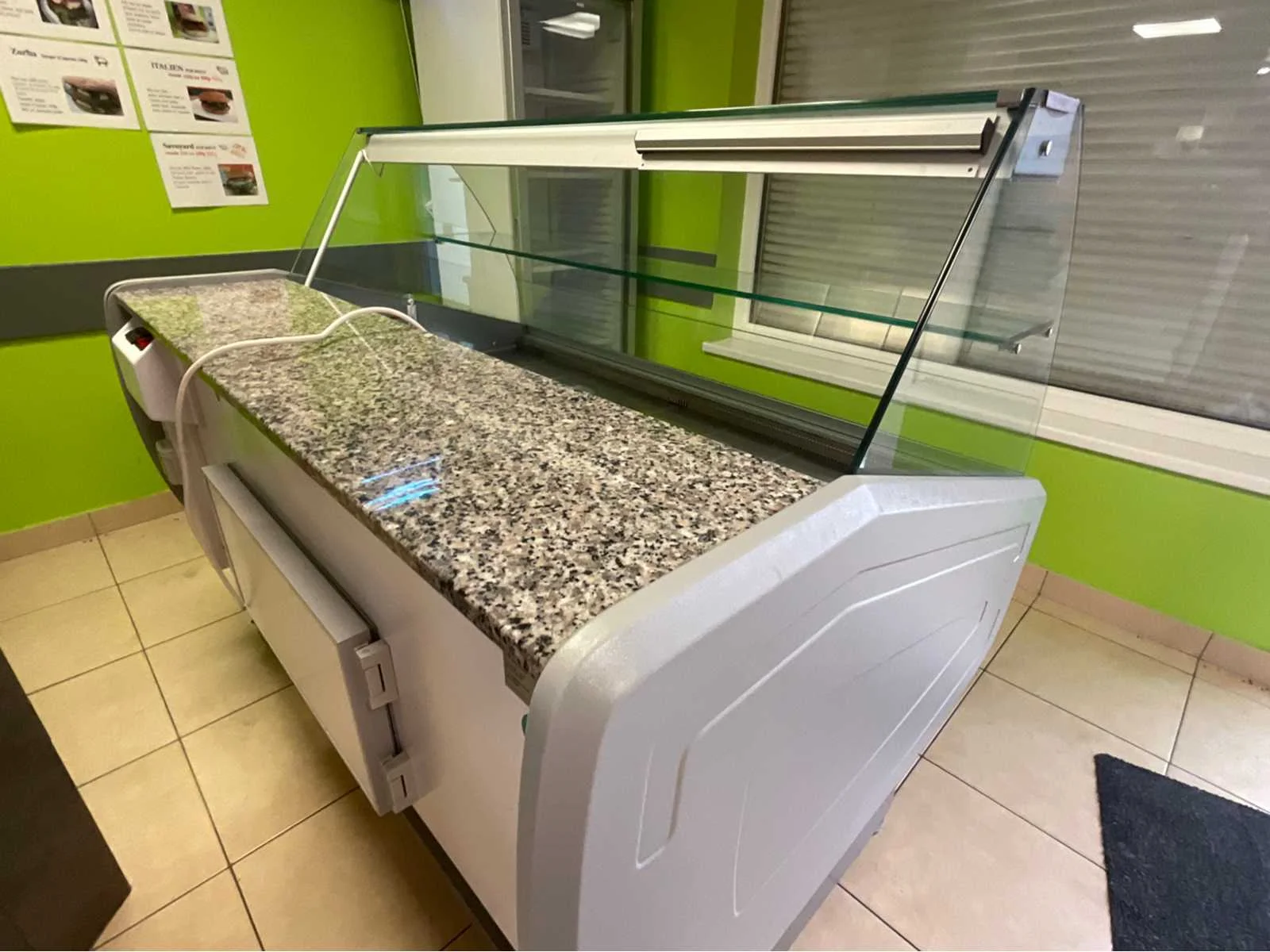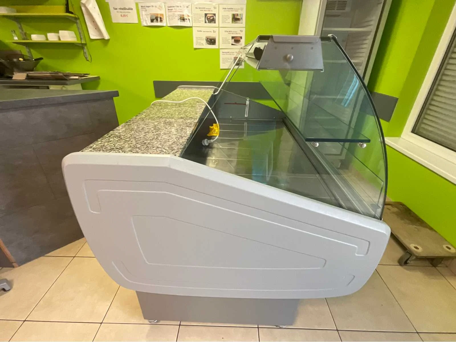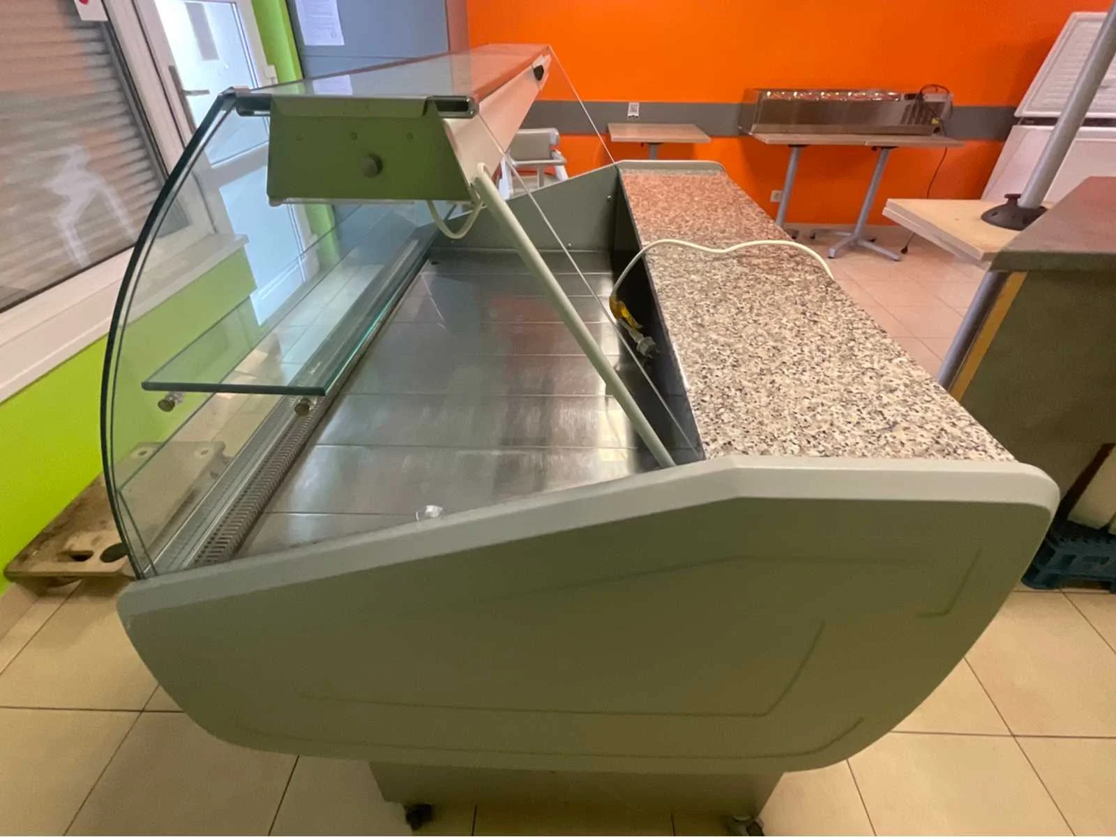 Gekoelde vitrine Zoin Mythos 150 HC Merk: Zoin Refrigerazione Srl Model: Mythos 150 HC Bouwjaar: 2016 Serienummer: 4504/2016 Herkomst: Italië Type: Geventileerde gekoelde vitrine Koelgas: R404A (0,520 kg) Stroomvoorziening: 230 V / 50 Hz Stroomverbruik: 814 W Netto inhoud: 159 L Bedrijfstemperatuur: tussen +2 °C en +8 °C (afhankelijk van de instelling) Klimaatklasse: 3 Afmetingen bij benadering: 150 cm (B) × 120 cm (H) × 110 cm (D) Afwerking: granieten werkblad, gebogen glas aan de voorkant, glazen tussenplank, metalen frame met wielen. Non Merk: Zoin Type: Mythos 150 HC Bouwjaar: 2016 Materiaal: Inox Mobiel: true Ingebouwde koelcompressor: true Serienummer: 4504/2016 Temperatuurbereik max.: 8°c Aansluiting: 230V Temperatuurbereik min.: 2°c Capaciteit.: 159l Rvs: true