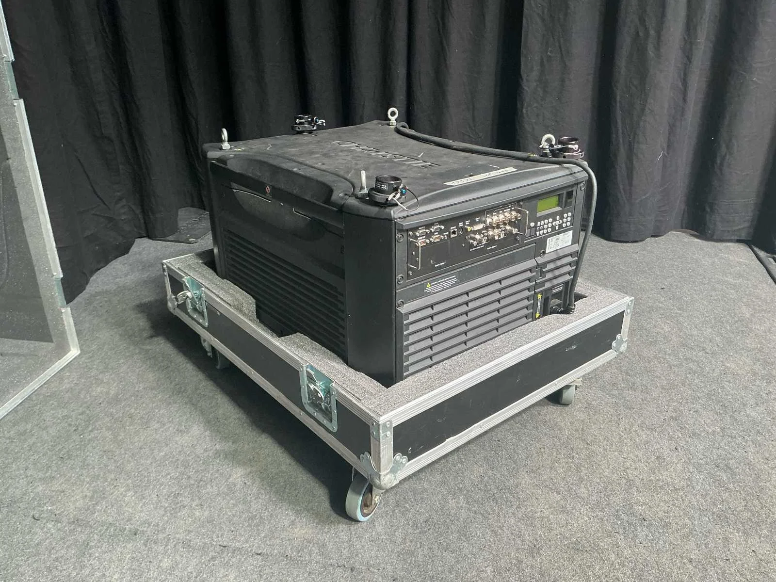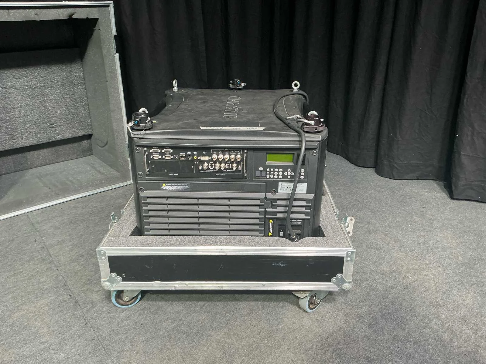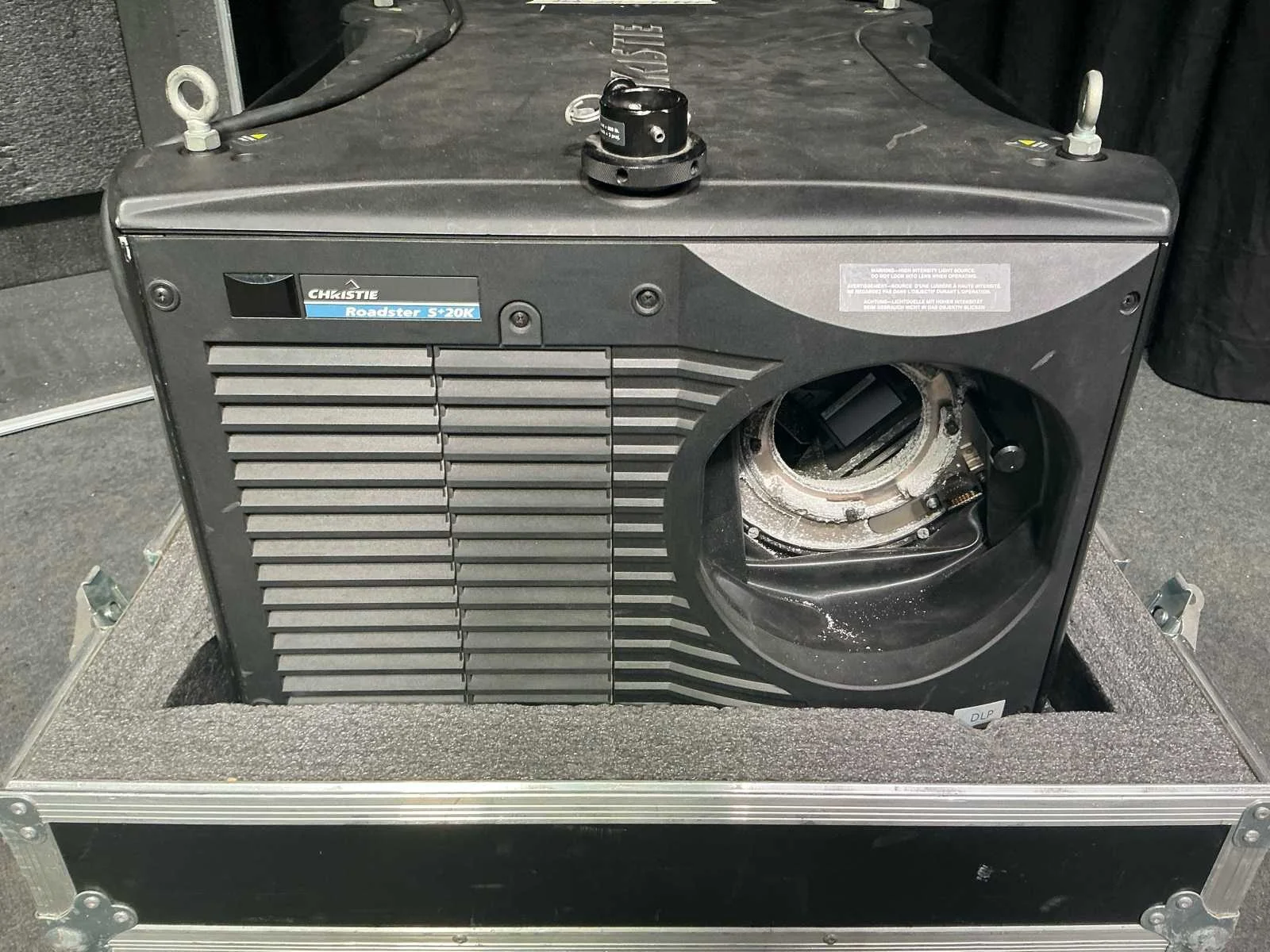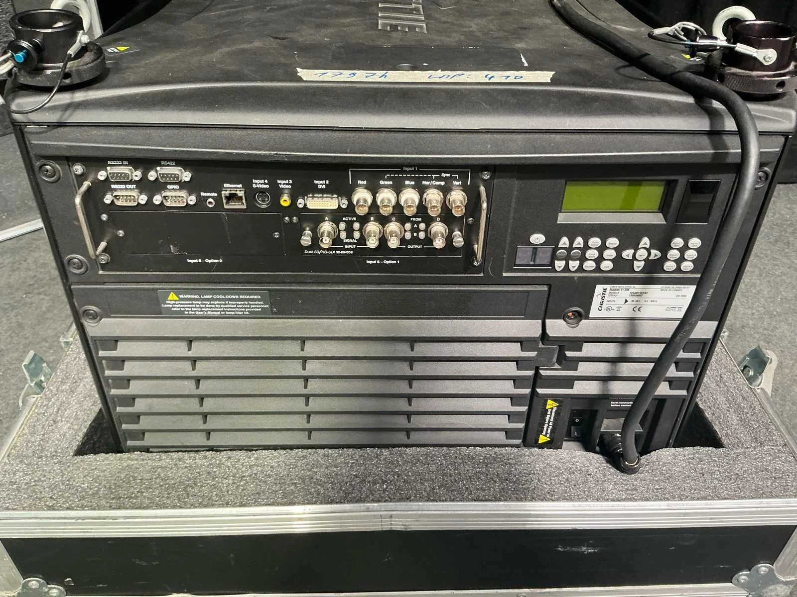 Belangrijkste specificaties: • Helderheid: 20.000 ANSI lumen • Resolutie: SXGA+ (1400 × 1050 pixels, 4:3 beeldverhouding) • Contrastverhouding: ca. 1.600:1 • Projectietechnologie: 3-chip DLP • Lichtbron: Xenonlamp 3,0 kW (levensduur ± 750–1000 uur) • Kleurondersteuning: 10-bit verwerking, 1 miljard kleuren • Lensopties: Verwisselbare lenzen (kort, standaard en long-throw) • Lens shift: Verticaal en horizontaal, motorgestuurd • Functies: • Keystone correctie • Stacking & rigging (voor meerdere projectoren samen) • Netwerkbeheer via ChristieNET (Ethernet) • Programmeerbare instellingen voor evenementen en shows • Aansluitingen: • 2× analoge RGB/HV • 2× DVI-I • Video (Composite, S-Video, Component) • 5× BNC (RGBHV/YPbPr) • Optionele inputkaarten (o.a. SDI, Dual Link DVI) • Afmetingen (zonder lens): ca. 61 × 62 × 81 cm (H × B × D) • Gewicht: ± 67–70 kg (afhankelijk van configuratie) • Vermogen: ~ 4.800 W (bij max. belasting) No Merk: Christie Type: Roadster S+20K 2006 Serienummer: 130836007 Output: 20000lm Met flightcase: true Aansluiting: 220V