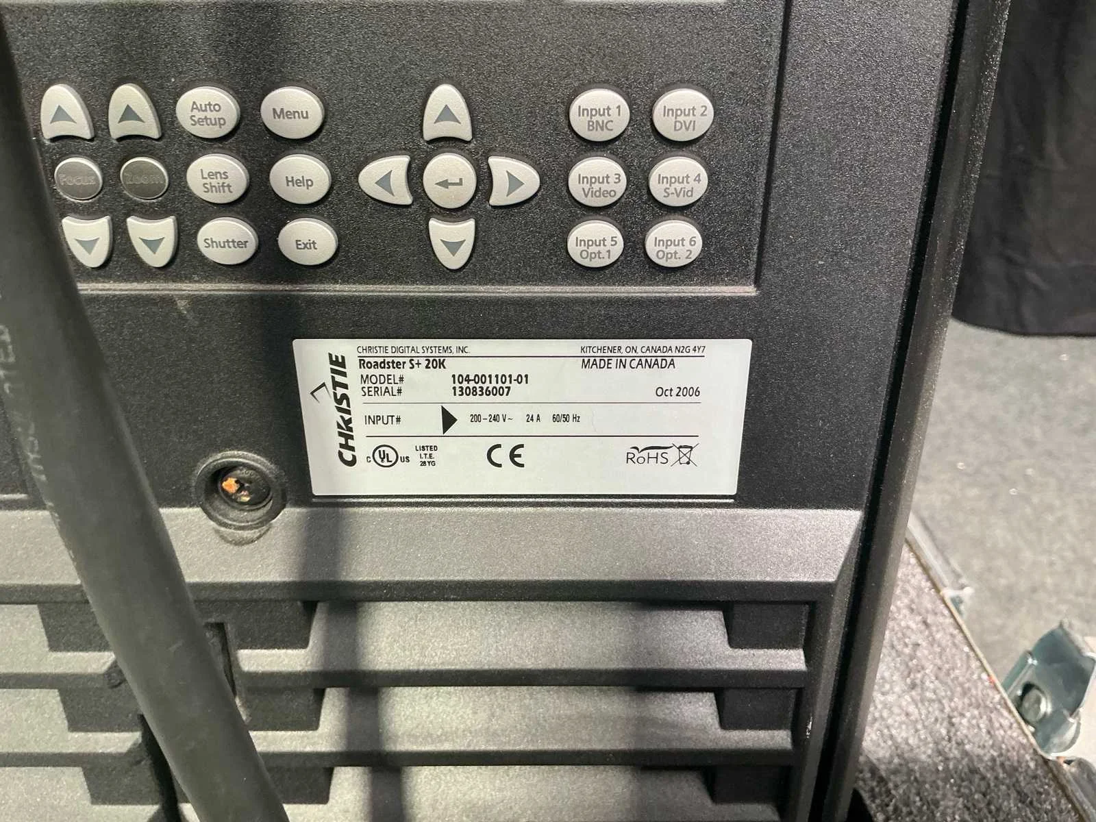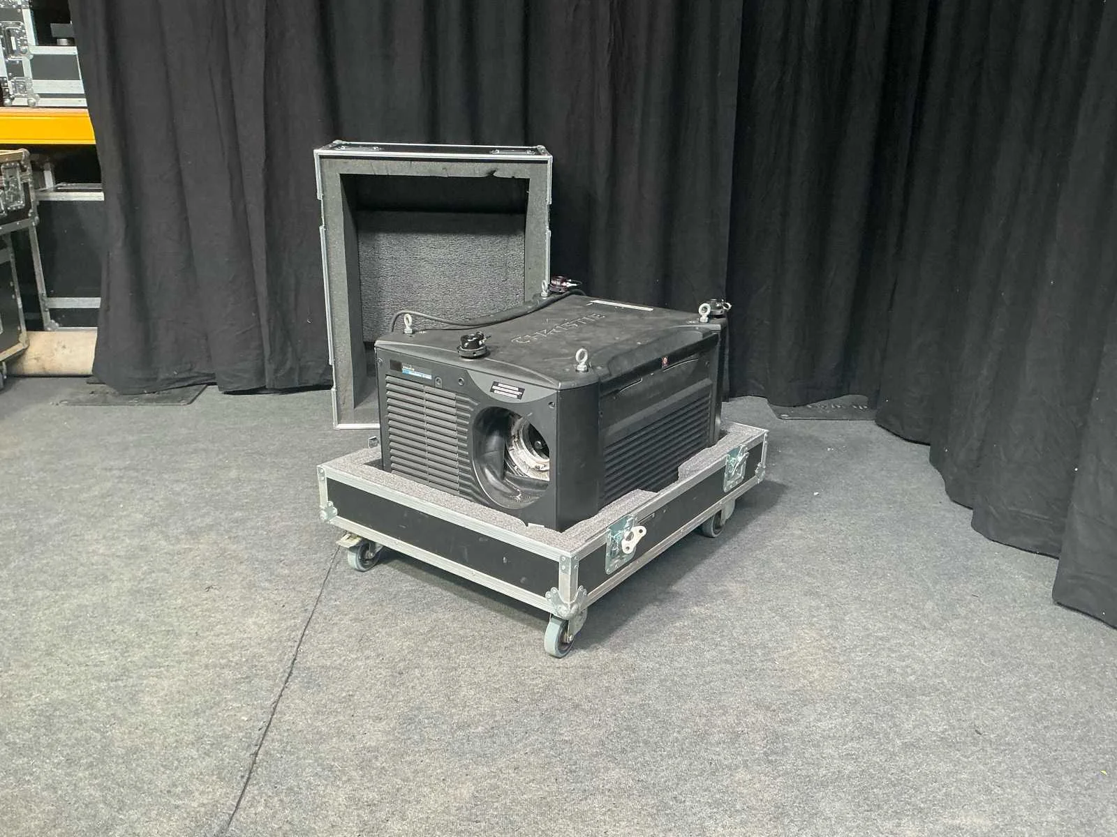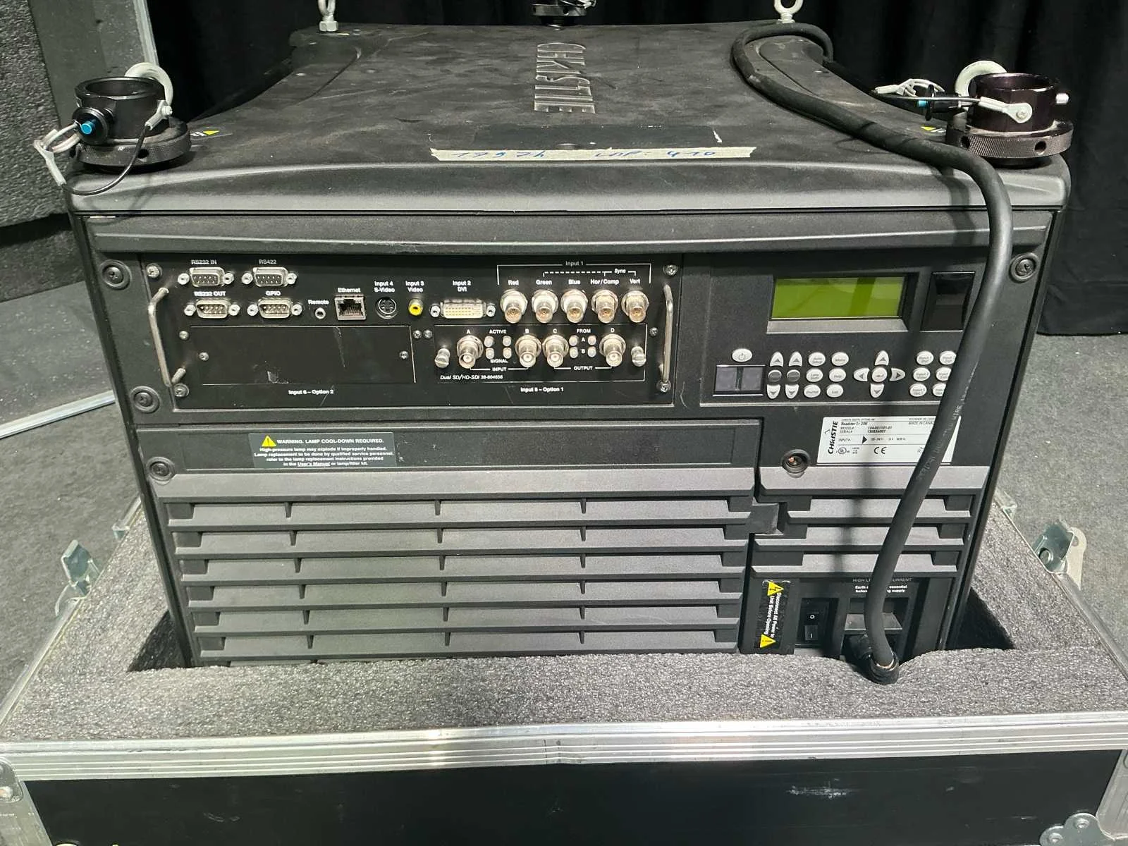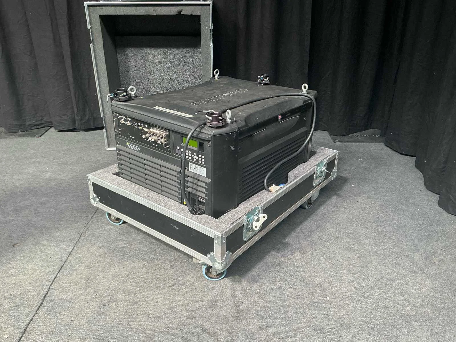 Belangrijkste specificaties: • Helderheid: 20.000 ANSI lumen • Resolutie: SXGA+ (1400 × 1050 pixels, 4:3 beeldverhouding) • Contrastverhouding: ca. 1.600:1 • Projectietechnologie: 3-chip DLP • Lichtbron: Xenonlamp 3,0 kW (levensduur ± 750–1000 uur) • Kleurondersteuning: 10-bit verwerking, 1 miljard kleuren • Lensopties: Verwisselbare lenzen (kort, standaard en long-throw) • Lens shift: Verticaal en horizontaal, motorgestuurd • Functies: • Keystone correctie • Stacking & rigging (voor meerdere projectoren samen) • Netwerkbeheer via ChristieNET (Ethernet) • Programmeerbare instellingen voor evenementen en shows • Aansluitingen: • 2× analoge RGB/HV • 2× DVI-I • Video (Composite, S-Video, Component) • 5× BNC (RGBHV/YPbPr) • Optionele inputkaarten (o.a. SDI, Dual Link DVI) • Afmetingen (zonder lens): ca. 61 × 62 × 81 cm (H × B × D) • Gewicht: ± 67–70 kg (afhankelijk van configuratie) • Vermogen: ~ 4.800 W (bij max. belasting) No Merk: Christie Type: Roadster S+20K 2006 Serienummer: 130836007 Output: 20000lm Met flightcase: true Aansluiting: 220V