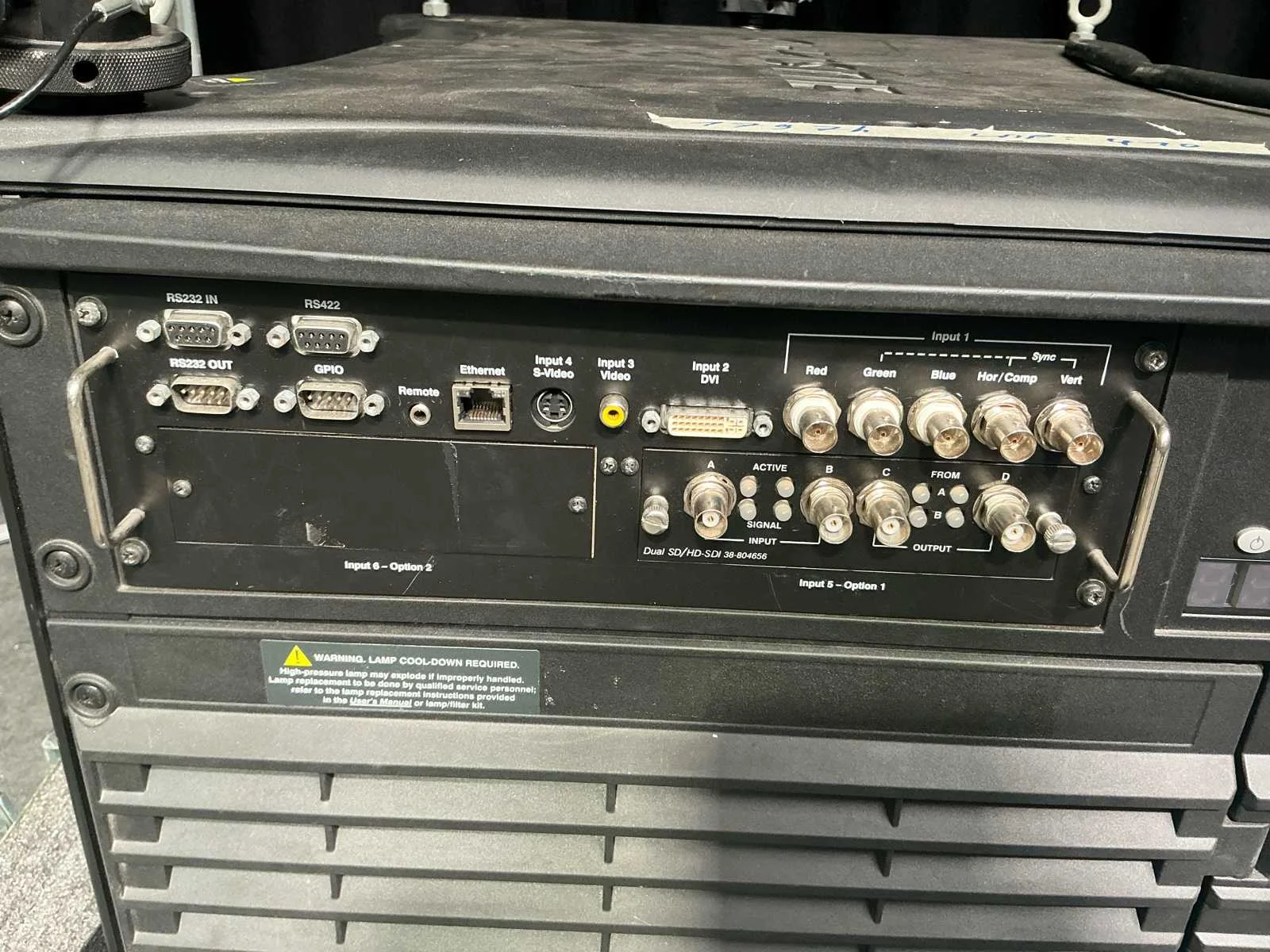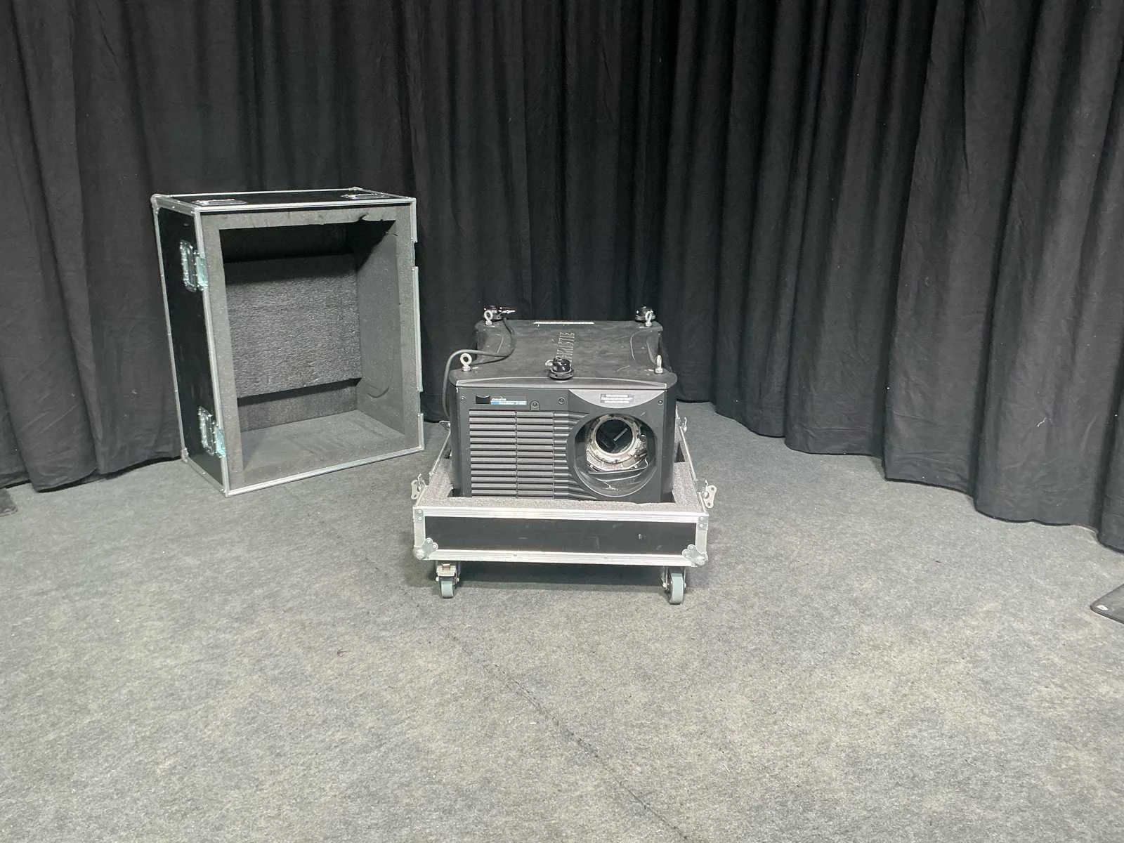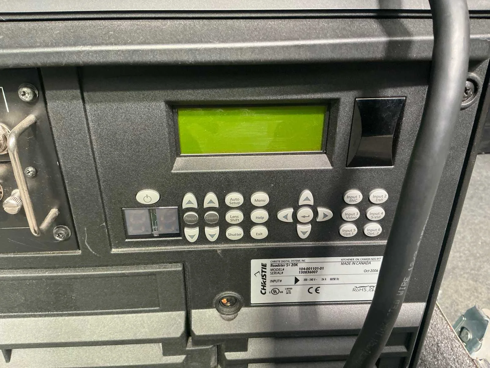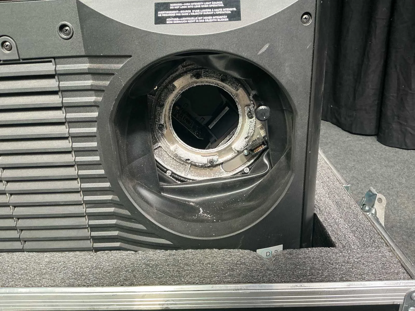 Belangrijkste specificaties: • Helderheid: 20.000 ANSI lumen • Resolutie: SXGA+ (1400 × 1050 pixels, 4:3 beeldverhouding) • Contrastverhouding: ca. 1.600:1 • Projectietechnologie: 3-chip DLP • Lichtbron: Xenonlamp 3,0 kW (levensduur ± 750–1000 uur) • Kleurondersteuning: 10-bit verwerking, 1 miljard kleuren • Lensopties: Verwisselbare lenzen (kort, standaard en long-throw) • Lens shift: Verticaal en horizontaal, motorgestuurd • Functies: • Keystone correctie • Stacking & rigging (voor meerdere projectoren samen) • Netwerkbeheer via ChristieNET (Ethernet) • Programmeerbare instellingen voor evenementen en shows • Aansluitingen: • 2× analoge RGB/HV • 2× DVI-I • Video (Composite, S-Video, Component) • 5× BNC (RGBHV/YPbPr) • Optionele inputkaarten (o.a. SDI, Dual Link DVI) • Afmetingen (zonder lens): ca. 61 × 62 × 81 cm (H × B × D) • Gewicht: ± 67–70 kg (afhankelijk van configuratie) • Vermogen: ~ 4.800 W (bij max. belasting) No Merk: Christie Type: Roadster S+20K 2006 Serienummer: 130836007 Output: 20000lm Met flightcase: true Aansluiting: 220V