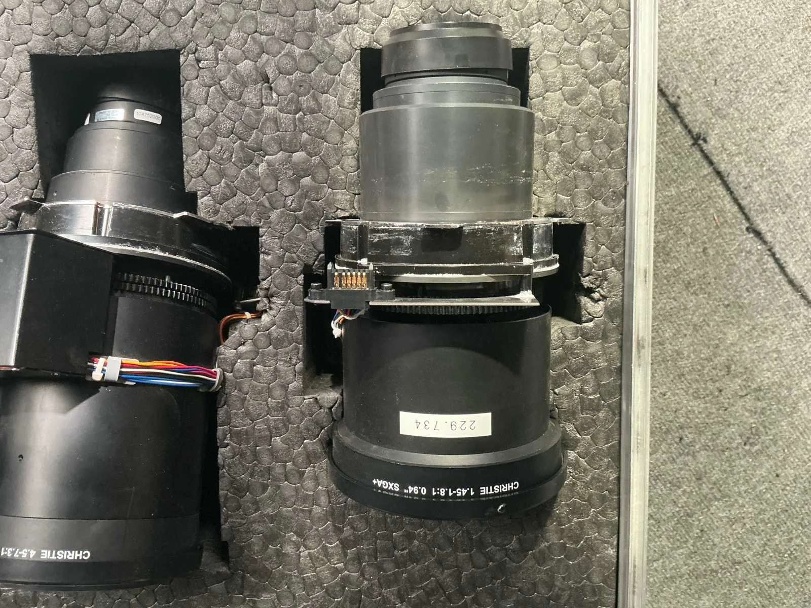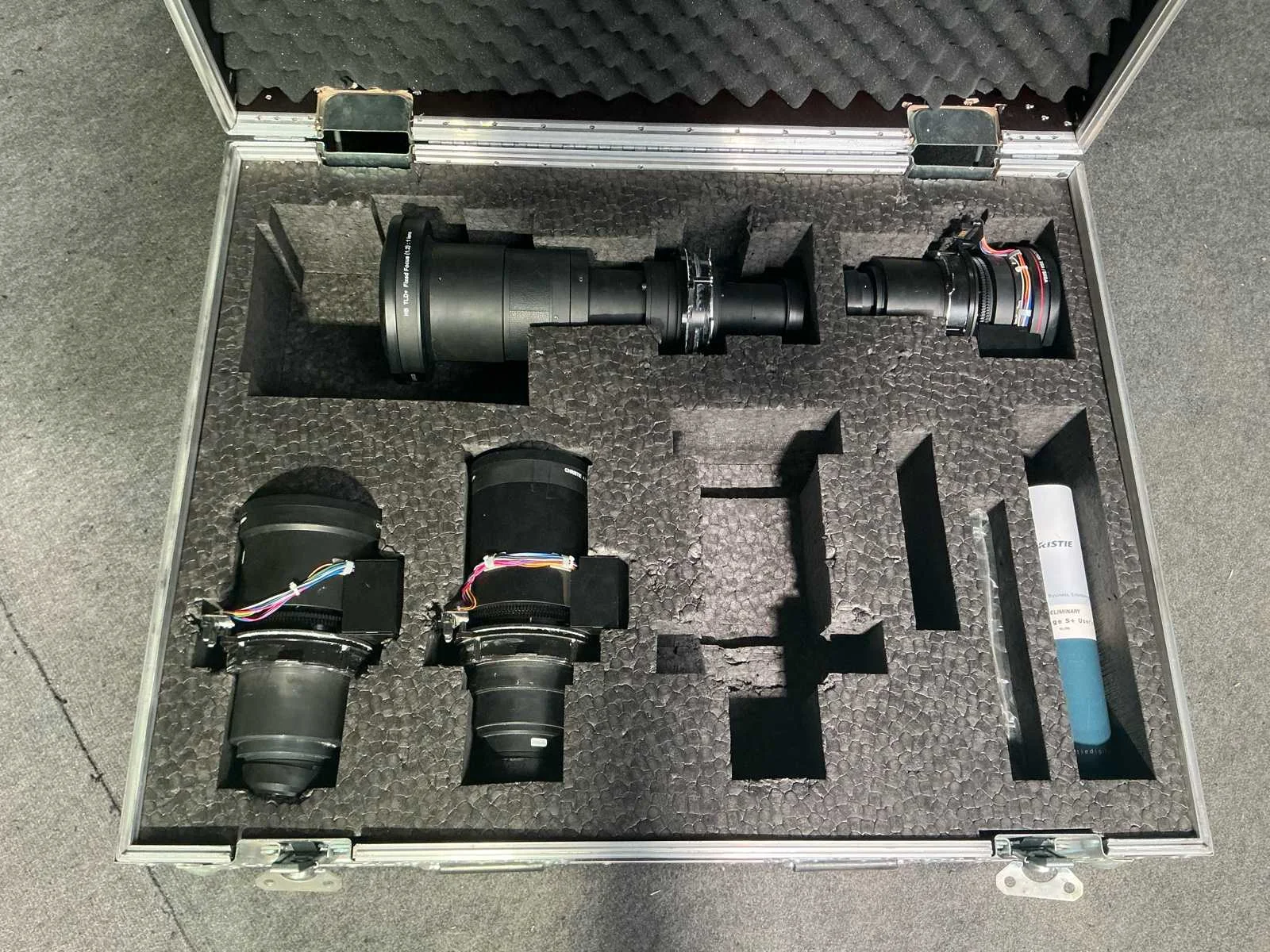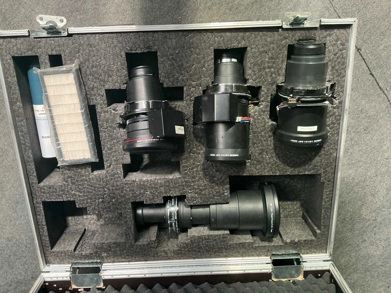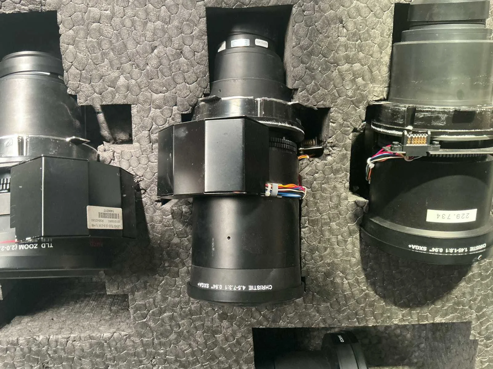 Partij Lenzen van het merk Christie. Verschillende maten. Werking dient gecontroleerd te worden. No Merk: Christie Type: Mirage S+ Met flightcase: true