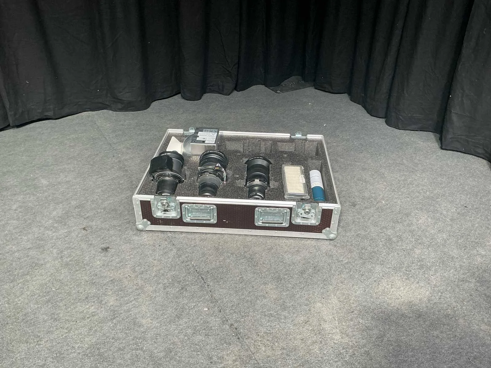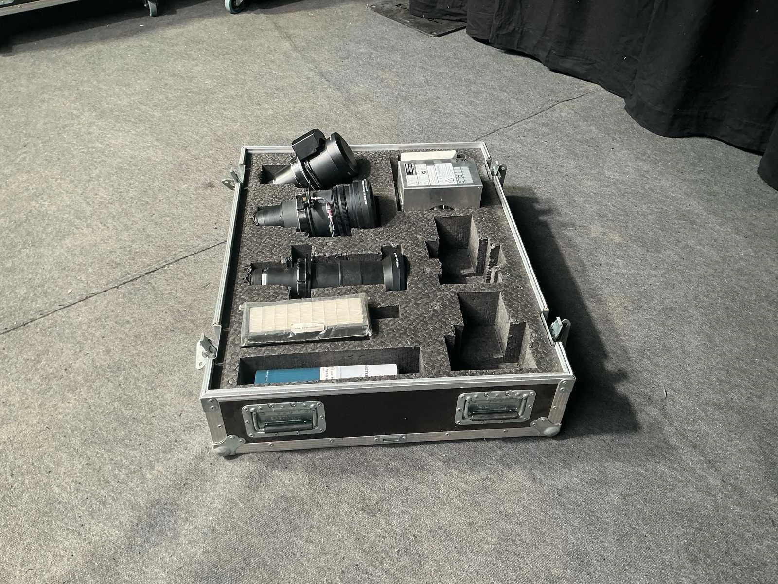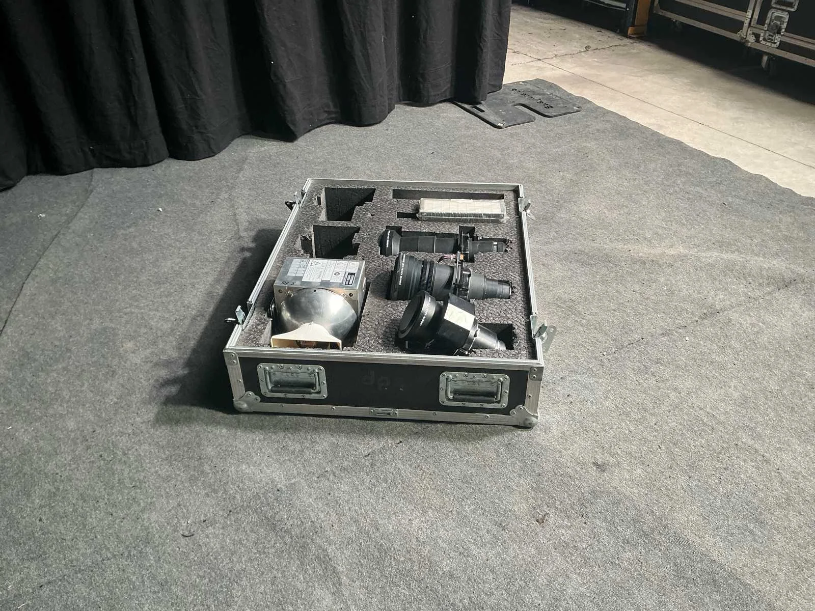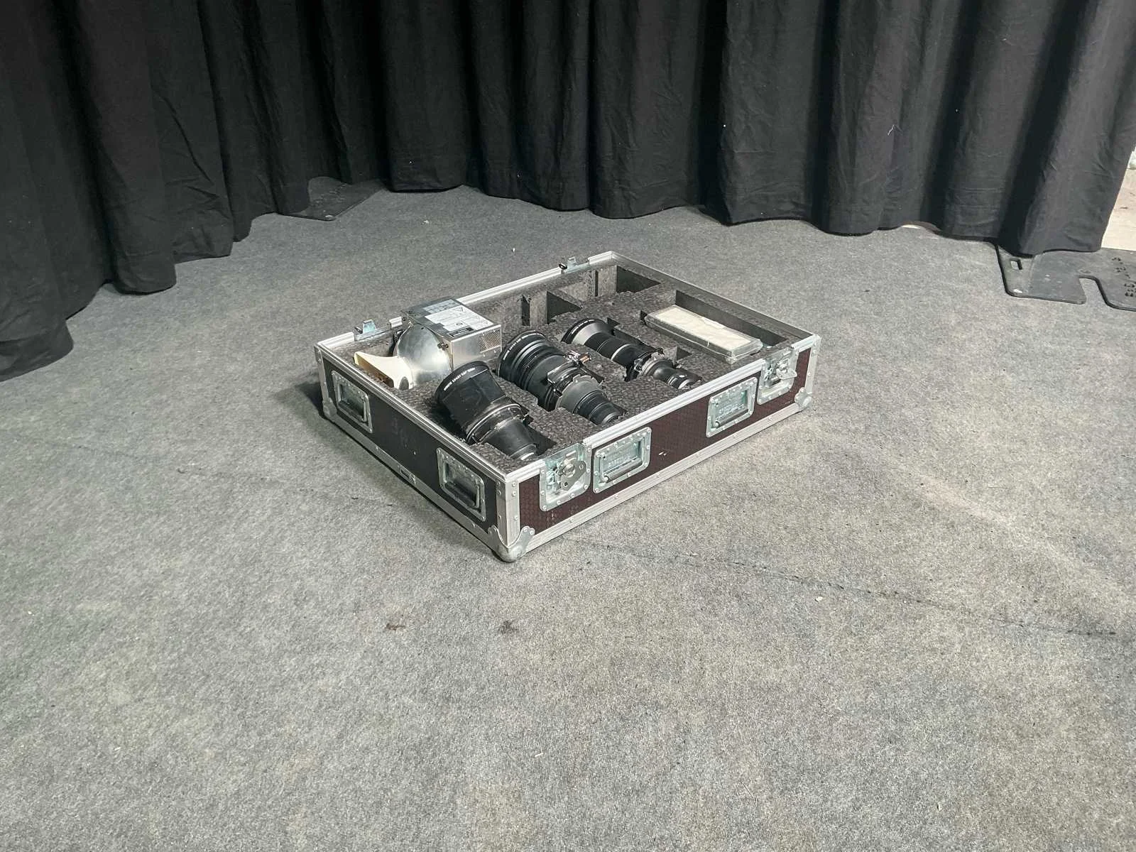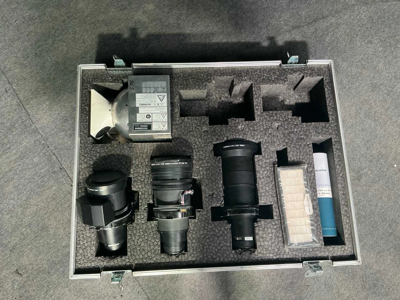 Partij van diverse lenzen van het merk Christie Met lamp. Verschillende maten beschikbaar. No Merk: Christie Type: Mirage S+ Met flightcase: true
