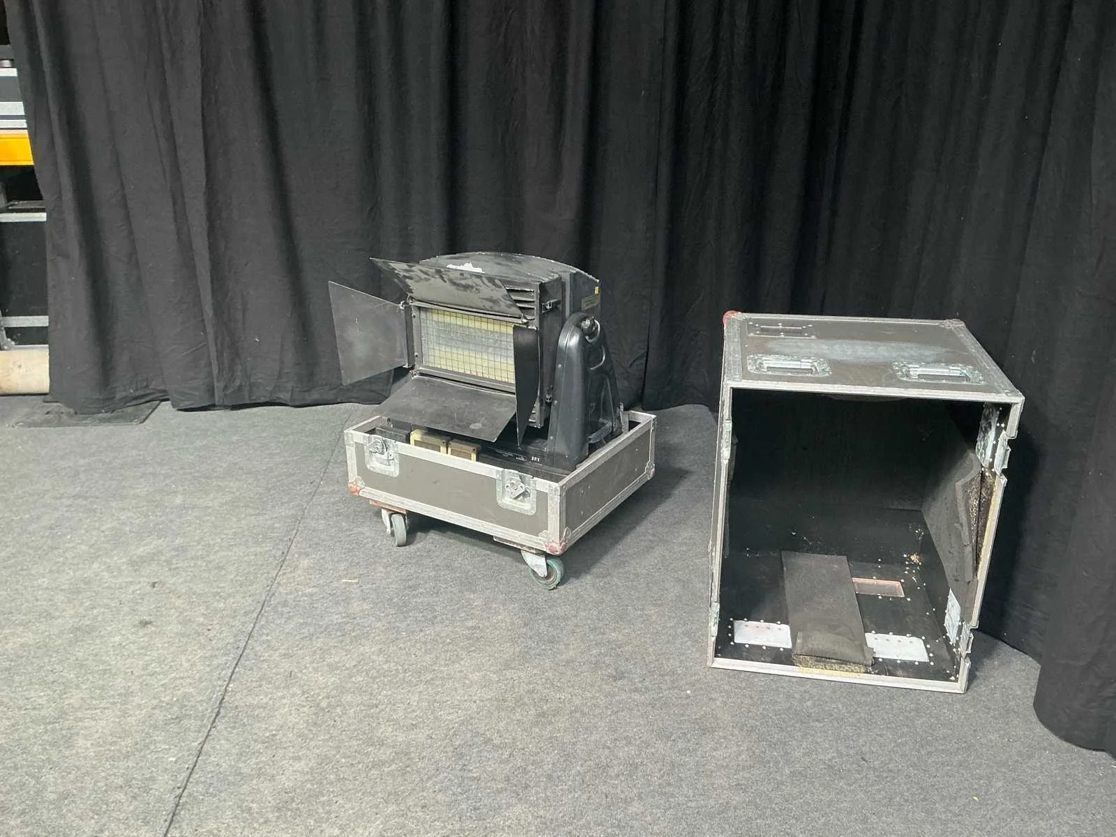 De flightcase zit bij in het lot. De Studio Due CityColor 1800 HMI is een krachtige outdoor floodlight van 1800 W, Geschikt voor het uitlichten van gebouwen en grote oppervlakken. Het toestel biedt CMY-kleurenmenging, DMX-aansturing en een lichtopbrengst van ca. 80.000 lumen. Ideaal voor evenementen en architecturale toepassingen. No Merk: Studio Due Type: City color 1800 HMI Capaciteit: 2000W Aansluiting: 230V Totale afmeting L: 650mm Totale afmeting Breedte: 780mm Totale afmeting Hoogte: 830mm Eigen gewicht: 90kg