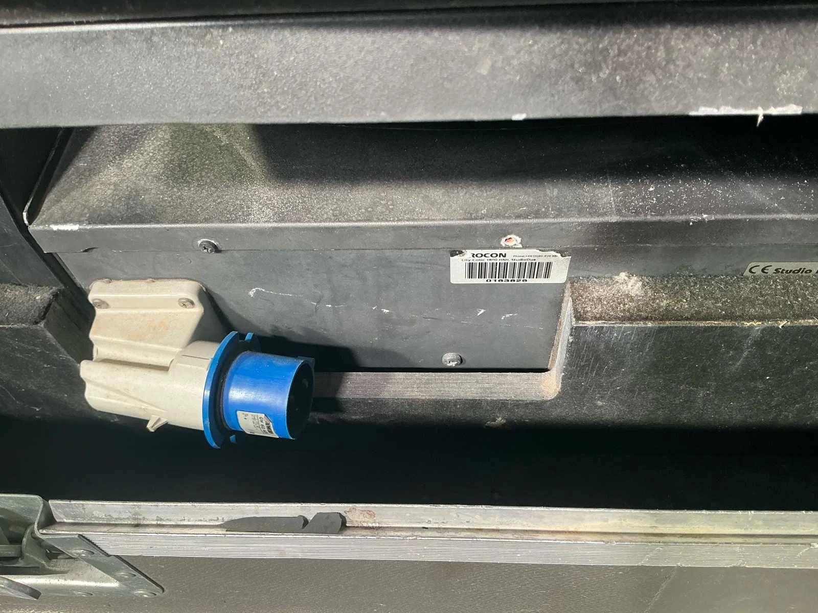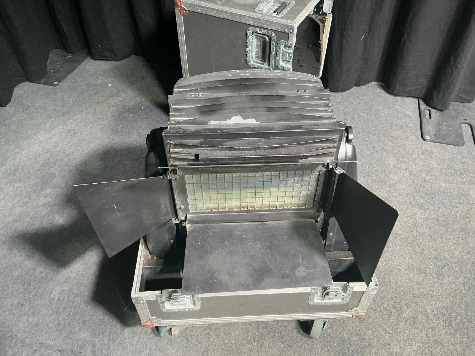 De flightcase zit bij in het lot. De Studio Due CityColor 1800 HMI is een krachtige outdoor floodlight van 1800 W, Geschikt voor het uitlichten van gebouwen en grote oppervlakken. Het toestel biedt CMY-kleurenmenging, DMX-aansturing en een lichtopbrengst van ca. 80.000 lumen. Ideaal voor evenementen en architecturale toepassingen. No Merk: Studio Due Type: City color 1800 HMI Capaciteit: 2000W Aansluiting: 230V Totale afmeting L: 650mm Totale afmeting Breedte: 780mm Totale afmeting Hoogte: 830mm