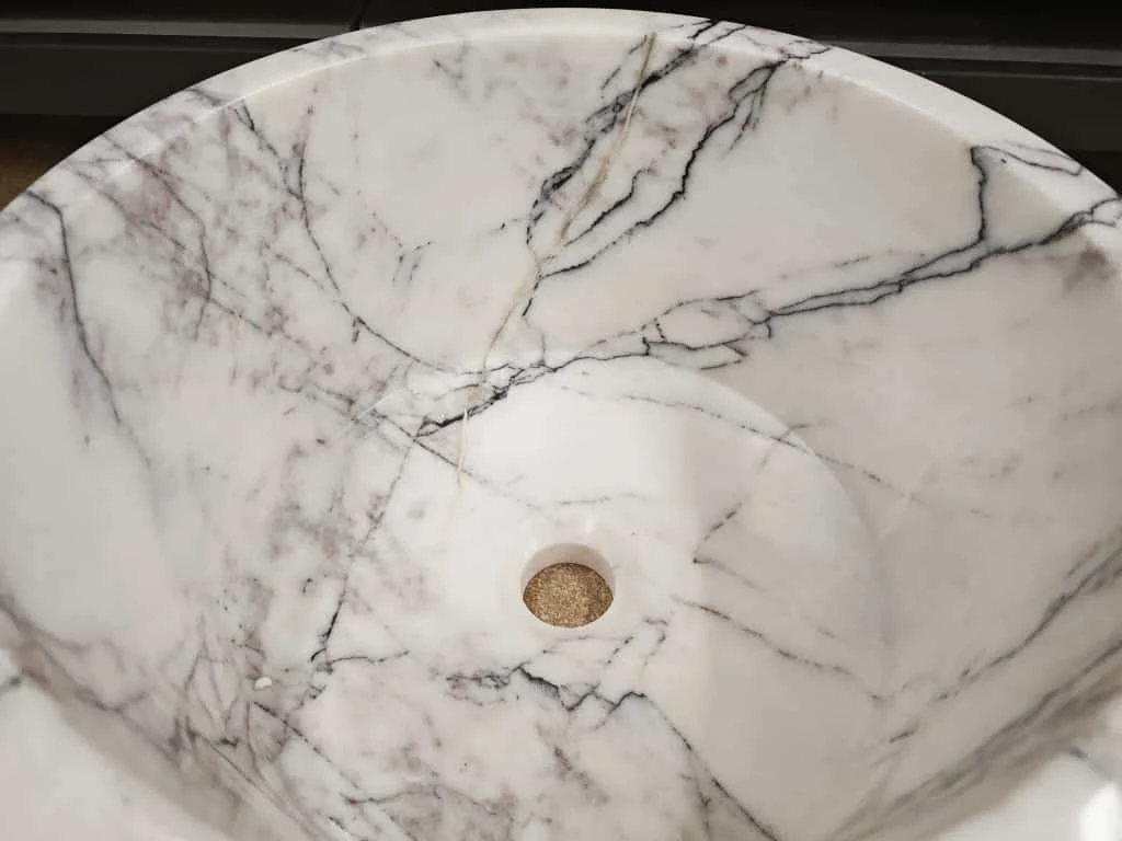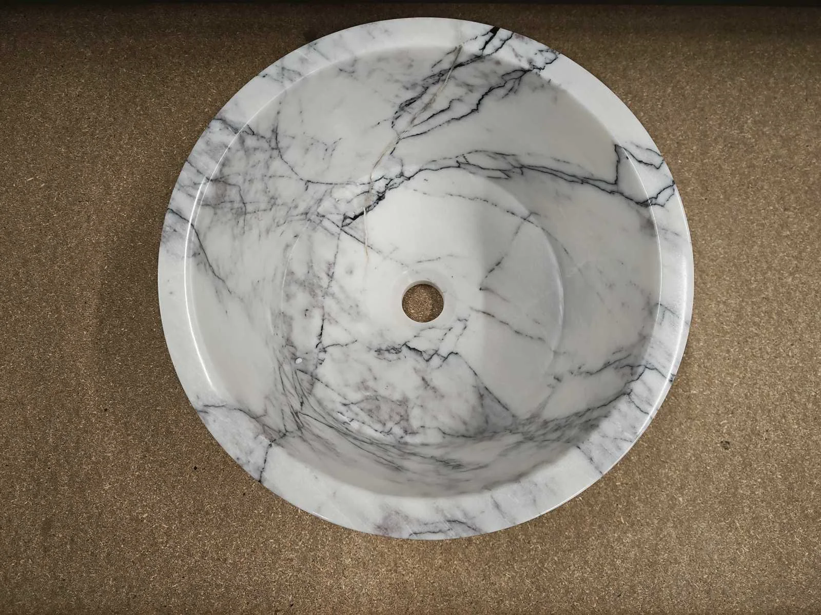 Natuursteen marmer wit/antraciet waskom 40x21 cm