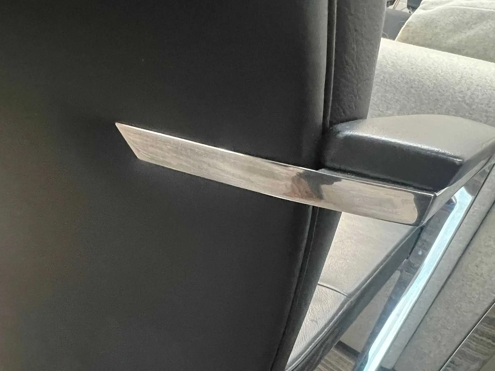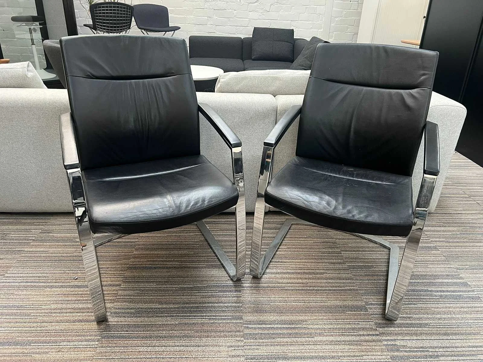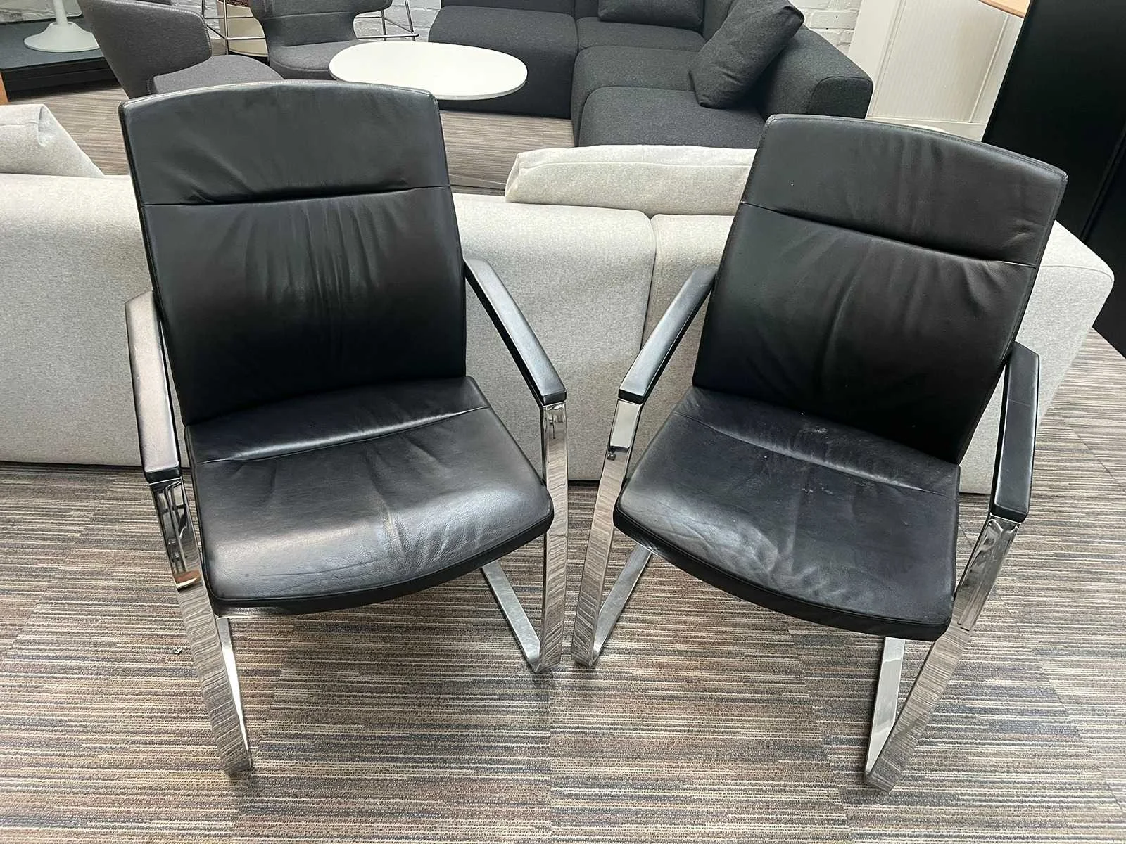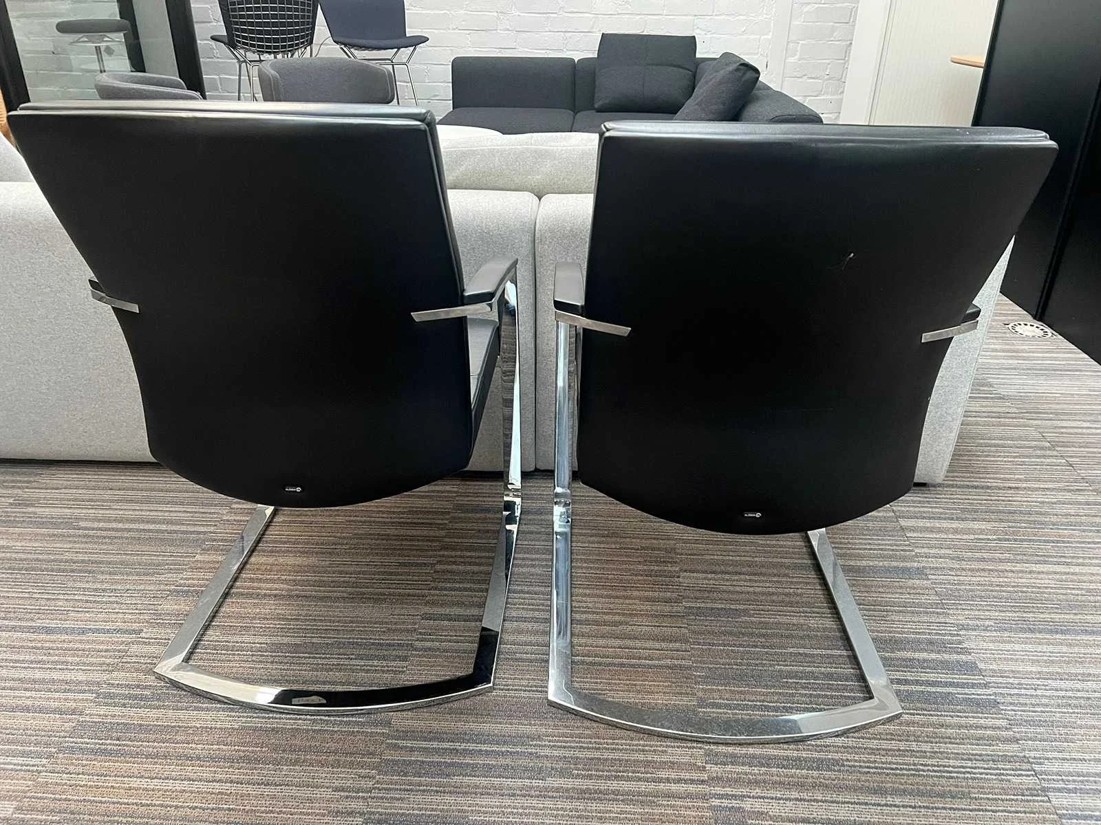4 X luxe vergaderstoelen KLÖBER , leer met chrome slede onderstel lichte gebruiksporen Nee Merk: KLÖBER Kleur: zwart Materiaal: leder Gewicht: 20kg